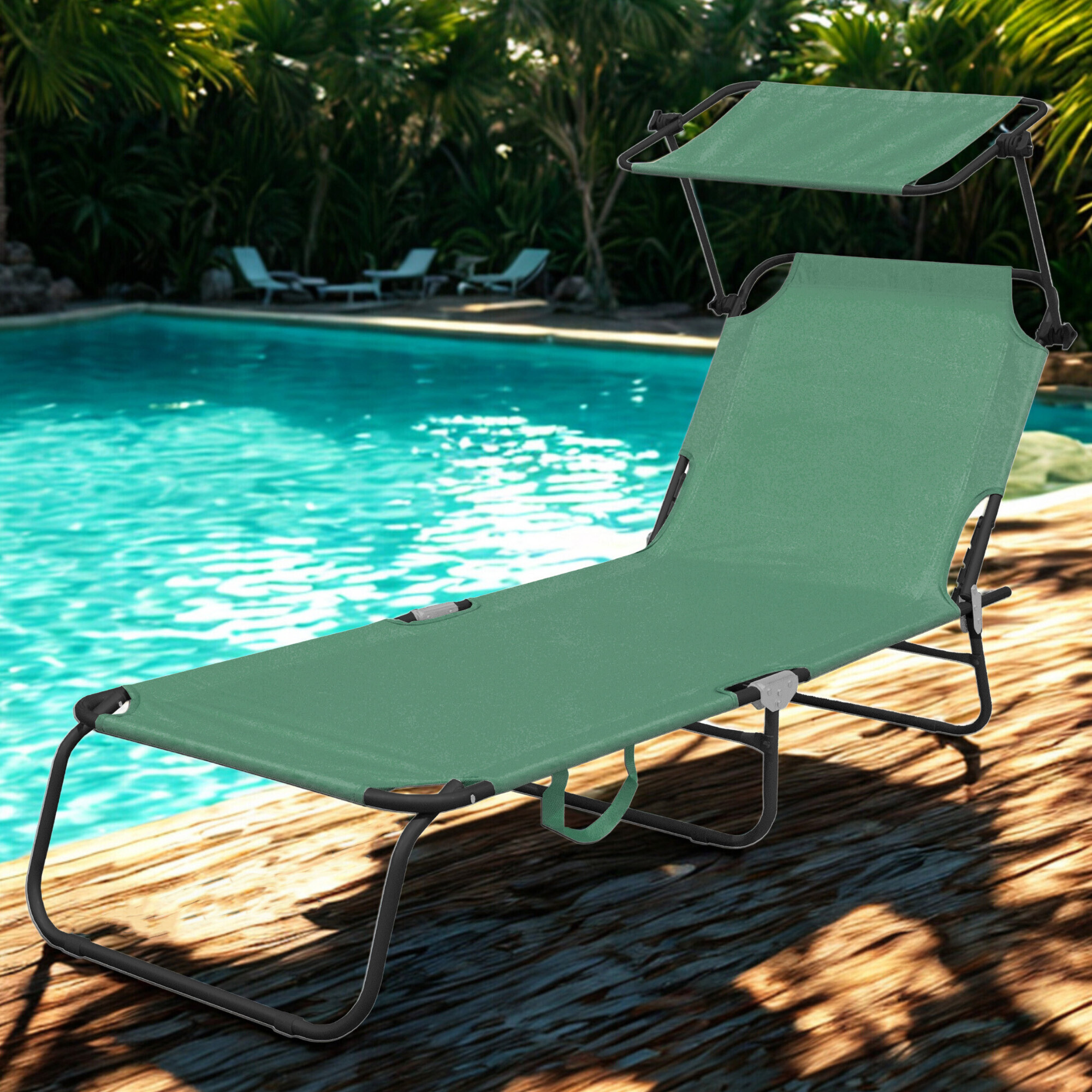 Dio ležaljke je odvojivi krović koji se može slobodno podesiti i zaštititi lice od jakog sunca.Naslon za ležaljku može se podesiti u 4 različita položaja.