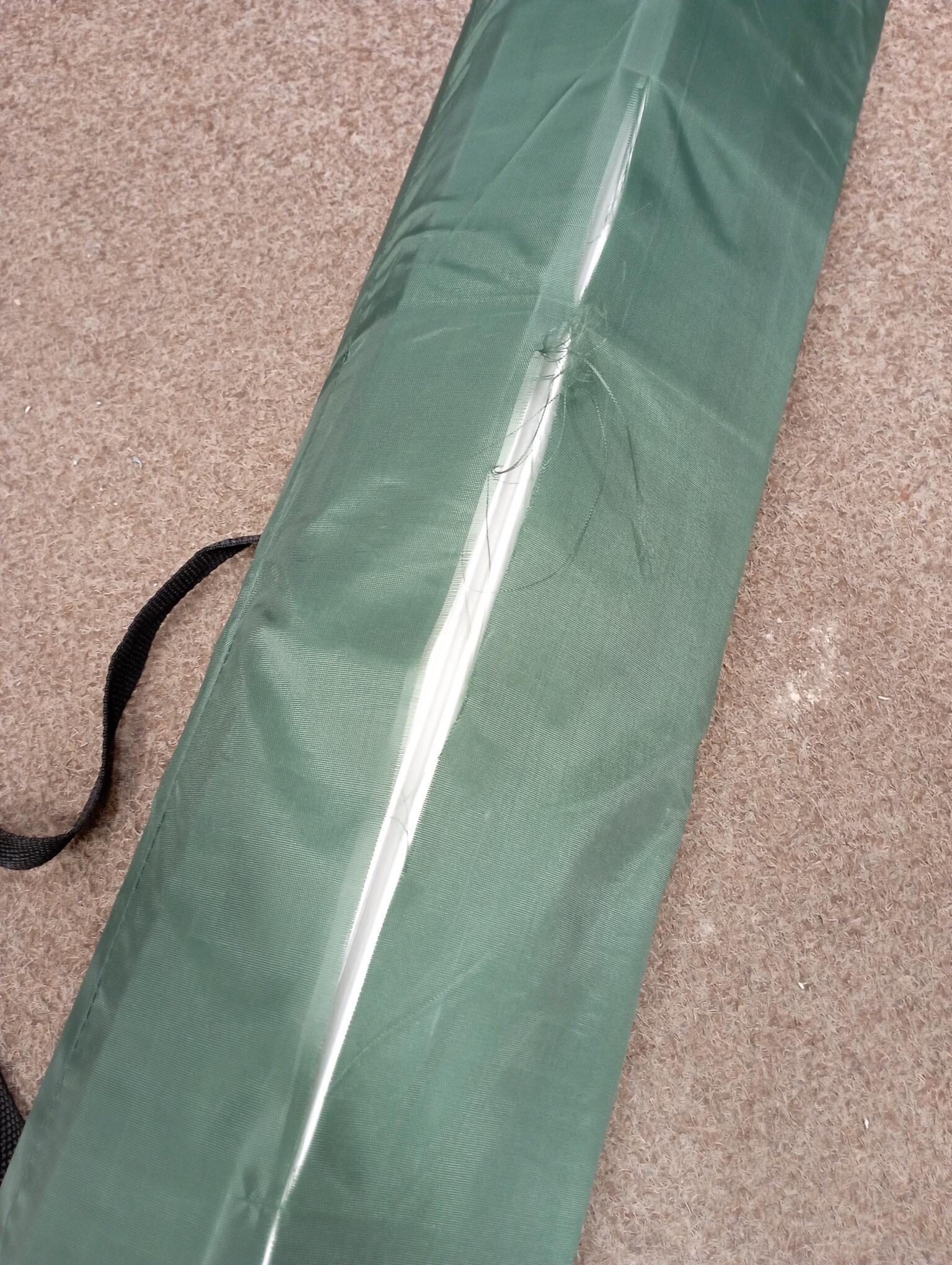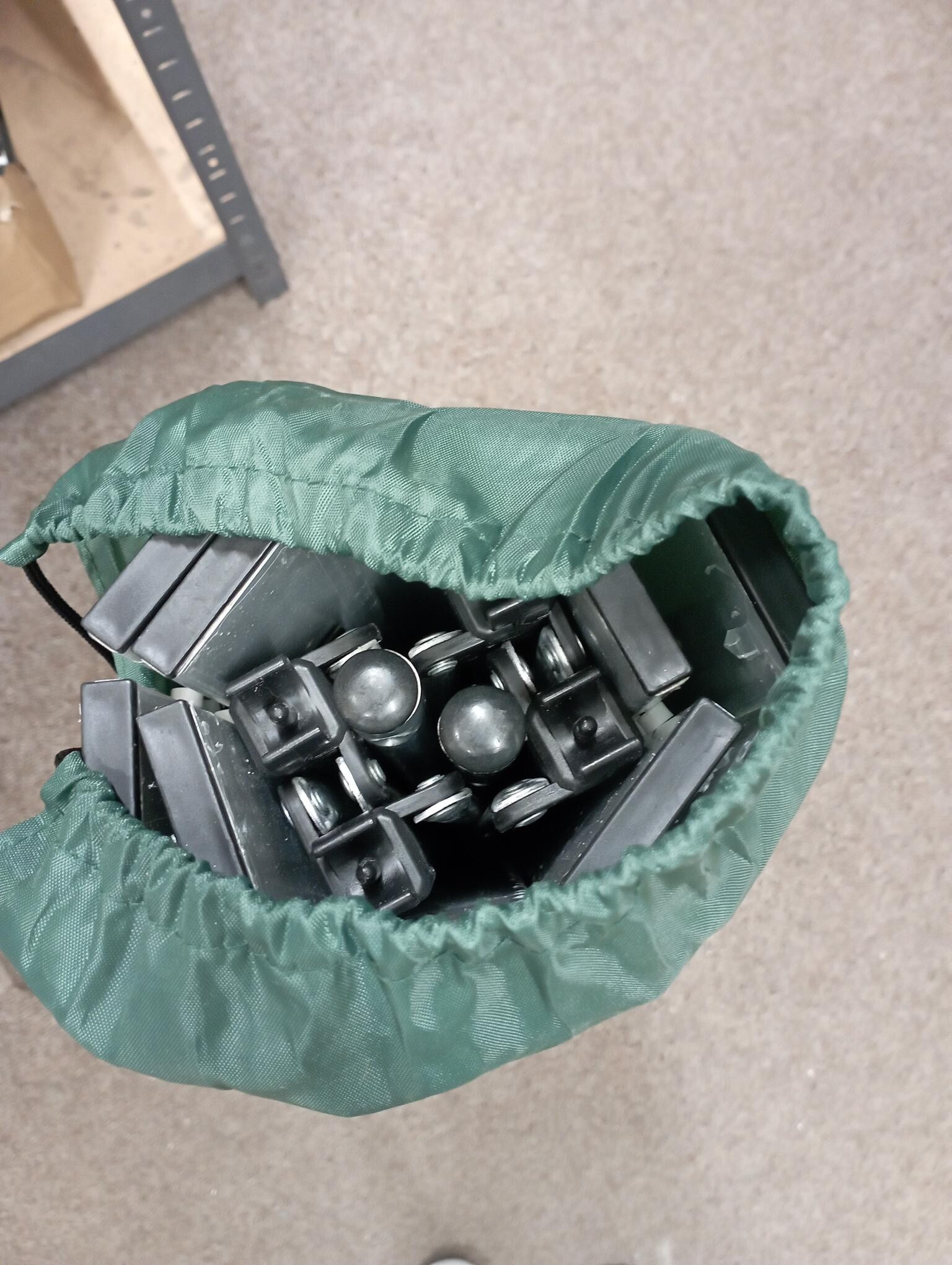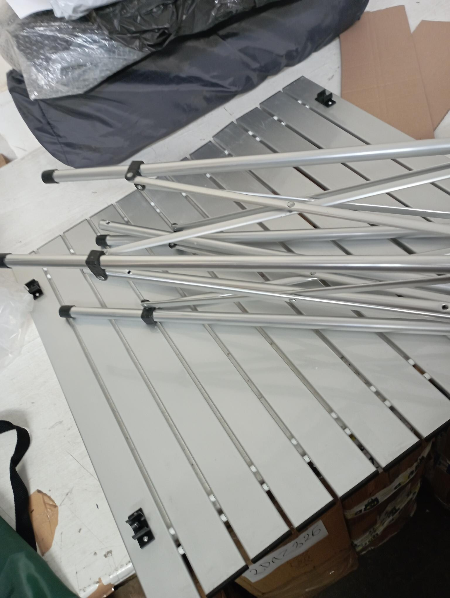 Ovaj komad ima razrezanu transportnu torbu. Stol je još uvijek u zaštitnoj foliji, blago je izgreban, inače je kompletan i potpuno funkcionalan.