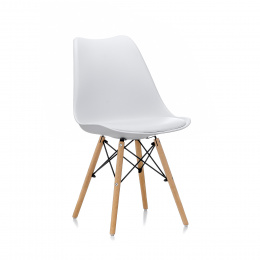 Stolica je izrađena od kvalitetnog i izdržljivog polipropilena s jastukom presvučenim umjetnom kožom u kombinaciji s nogama od bukovog drveta.