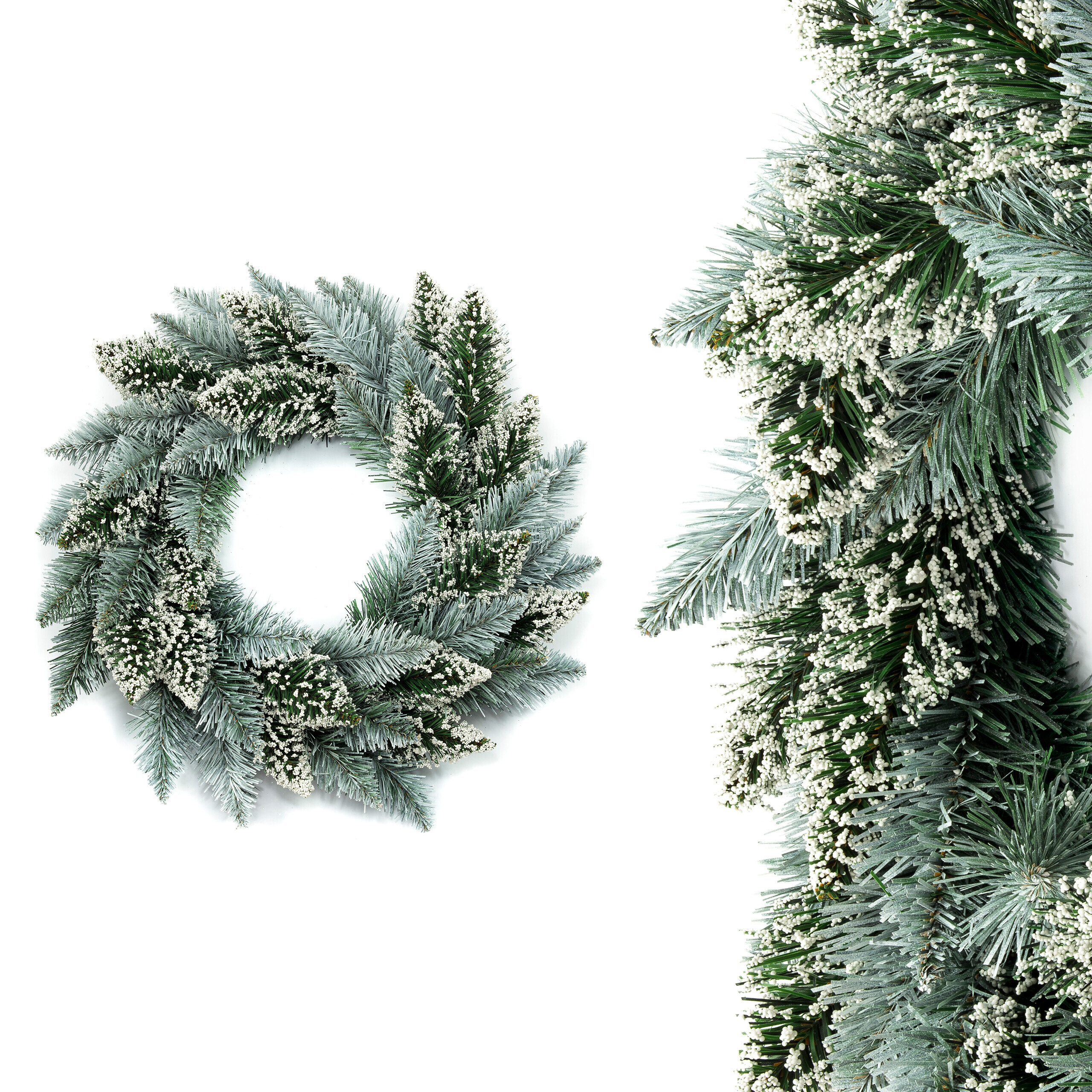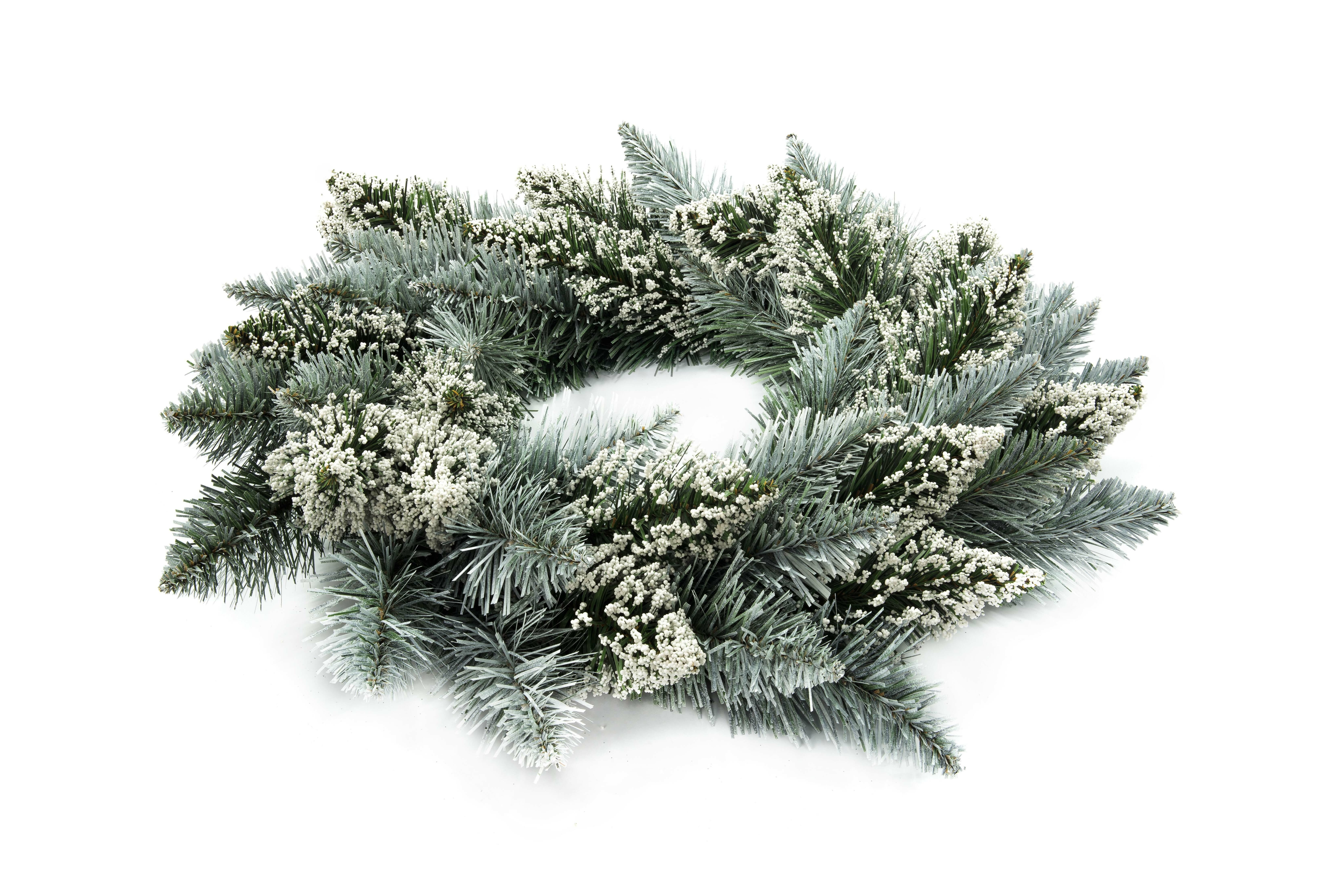Prekrasan božićni vijenac ukrašen sitnim ukrasima univerzalni je i stilski ukras za božićno vrijeme.