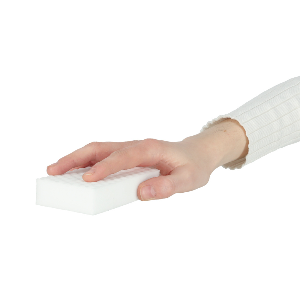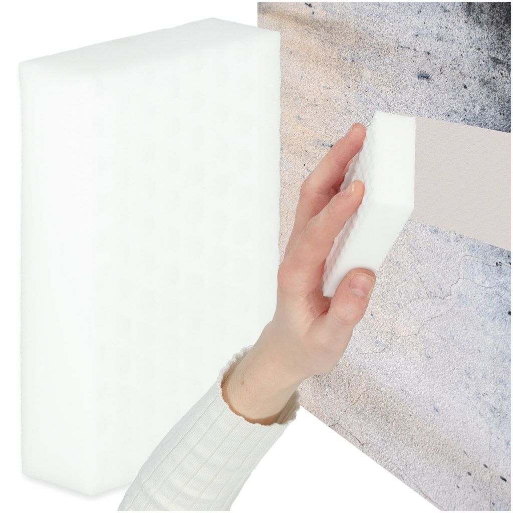 Čisti tvrdokorne nečistoće bez upotrebe sredstava za čišćenje, dovoljno ga je navlažiti s malo vode. Nositi se s mrljama na ormarićima, tragovima od olovke, pa čak i s mrljama na presvlakama.