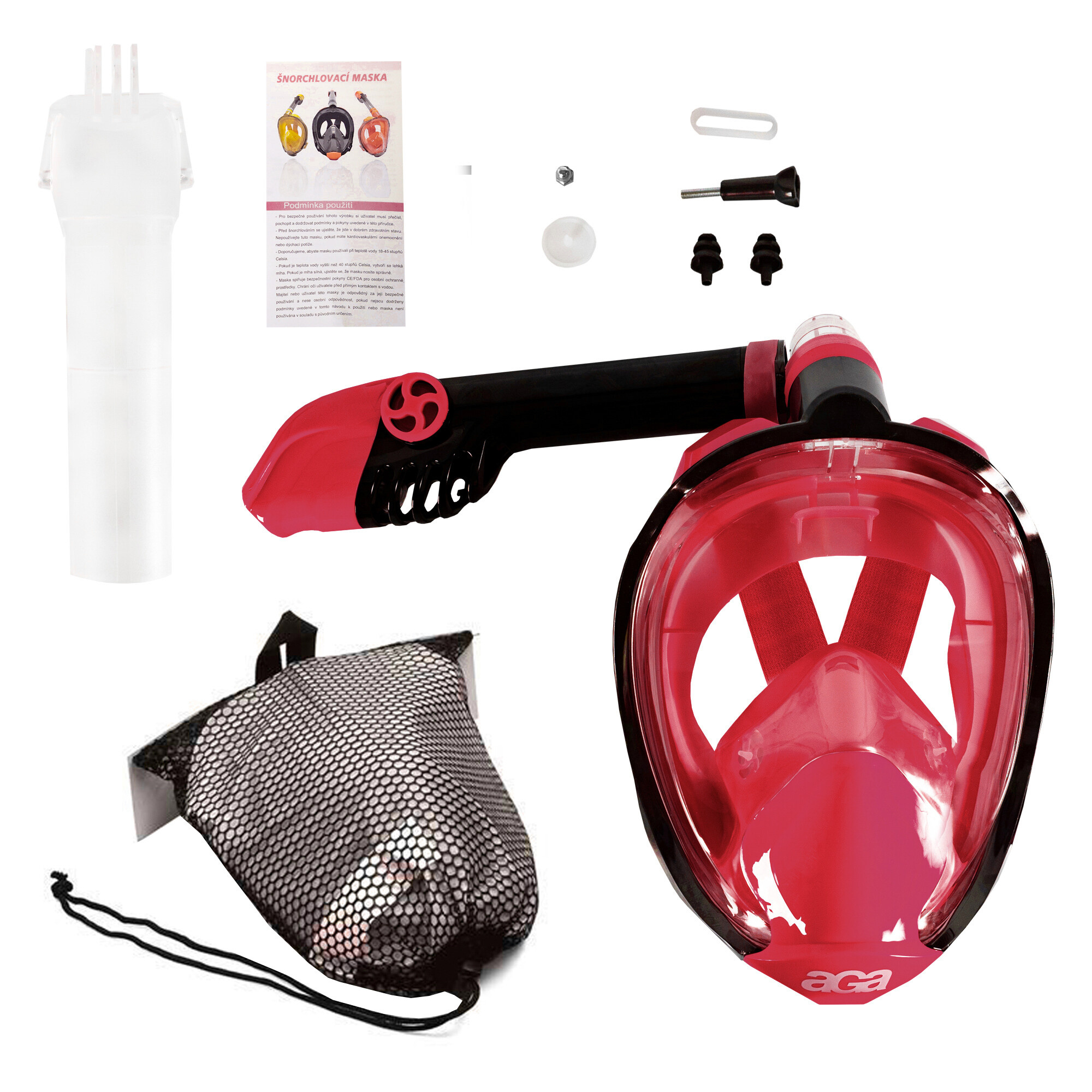 Ronilačka maska Aga izrađena je od polikarbonata i nudi ogromnu zaštitu protiv prodora vode, kao i udobno nošenje. Pruža kut gledanja od 180° s cirkulacijskim dišnim sustavom. Svježi zrak udišete kroz nos i usta, a zatim izlazi kroz jednosmjerne otvore u maski.