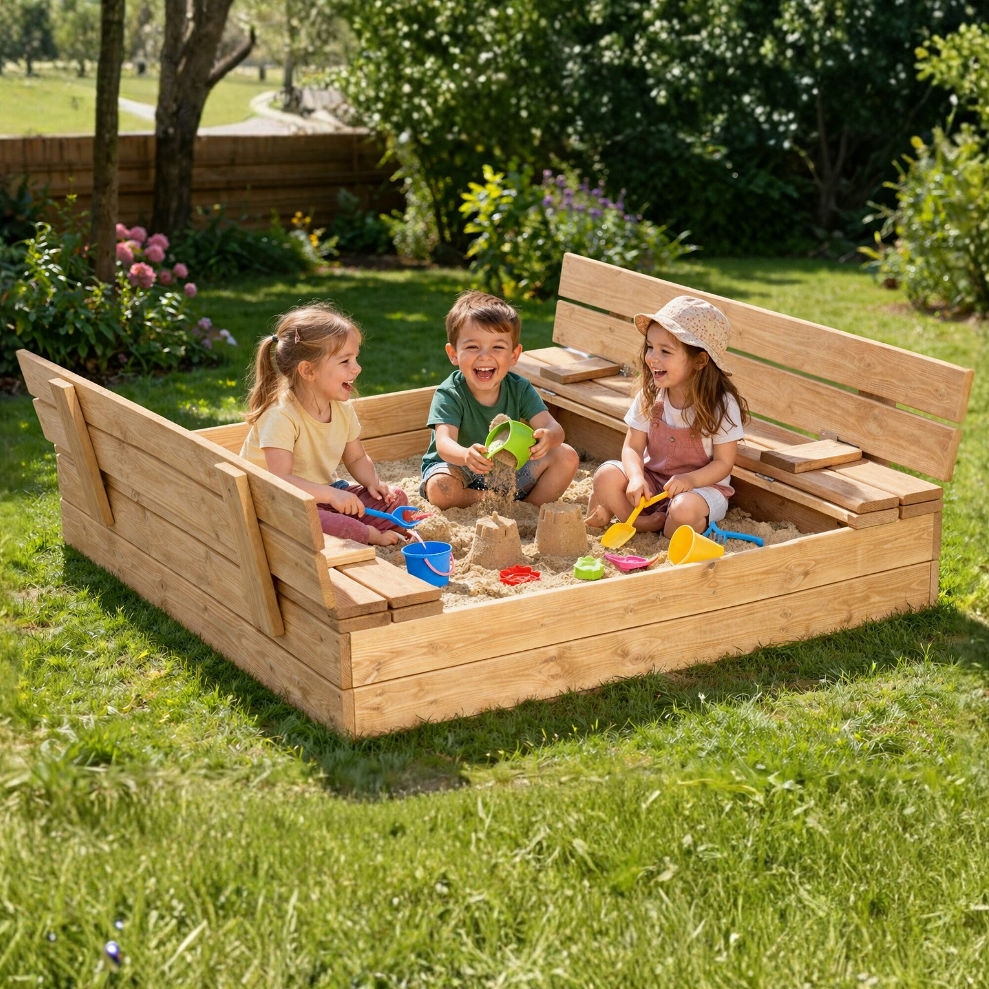 Ovo kvalitetno vrtno pješčano igralište izrađeno je od izdržljivog smrekovog drva debljine 20 mm, što osigurava čvrstoću i dugotrajnost. Prirodna izvedba bez površinske impregnacije omogućuje individualnu prilagodbu prema vašim zamislima, možete ga obojiti ili tretirati prema stilu vašeg vrta.