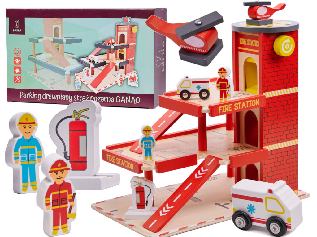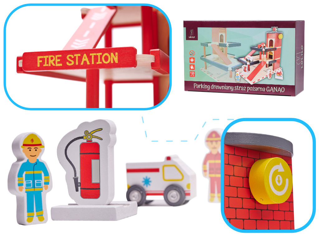Aga Dječja drvena garaža GANAO - Vatrogasna postrojba