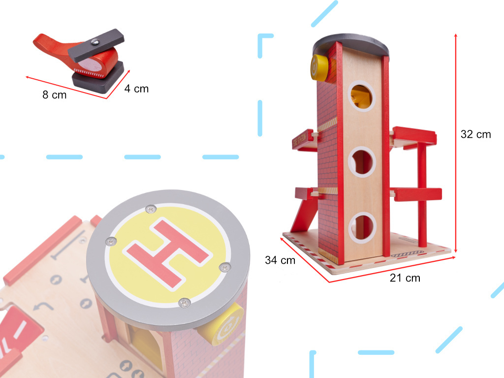 Super parkiralište s hrpama automobila. Razveselit će malog obožavatelja vatrogasne postrojbe. Sastoji se od 4 razine koje pružaju beskrajnu zabavu. Igračka potiče maštu i razvija manualne vještine djeteta. Materijal: drvo. Dimenzije. garaža: 34x21x32cm.Cijeli opis