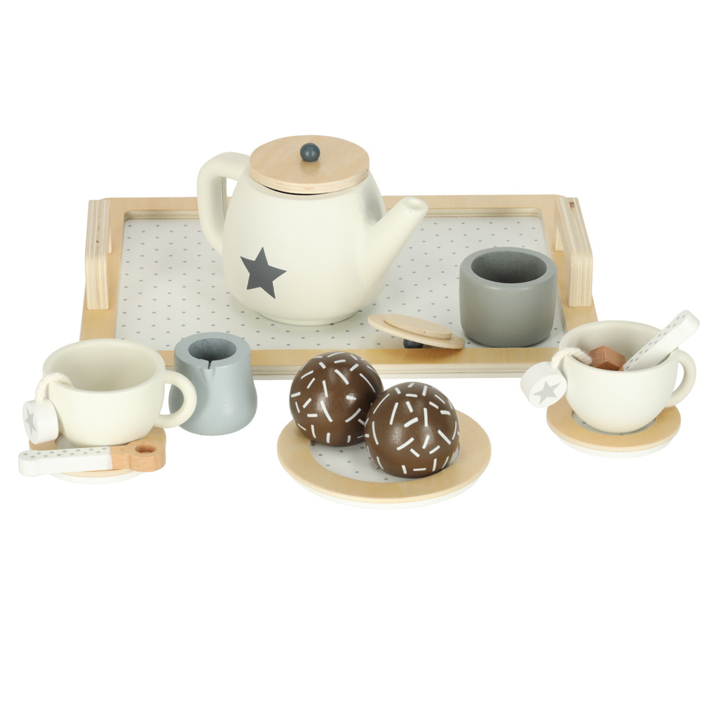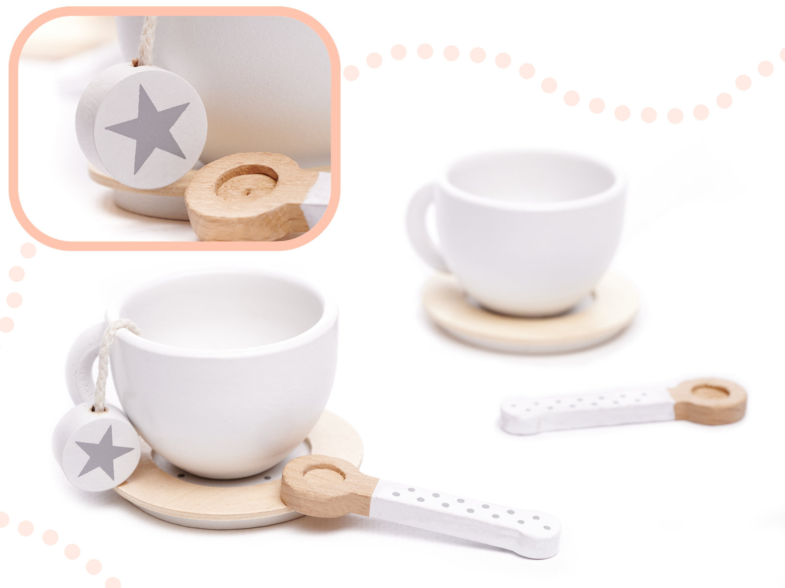 Senzacionalni čajni set je praktičan dodatak svakom kućanstvu. Nakon što ispuniš svoje obaveze, možeš sjesti s prijateljicama ili sa svojom lutkom uz šalicu dobrog čaja i razgovarati o tome što je svaka danas doživjela. Set je izrađen od drva i doista imitira pravi čajni set.