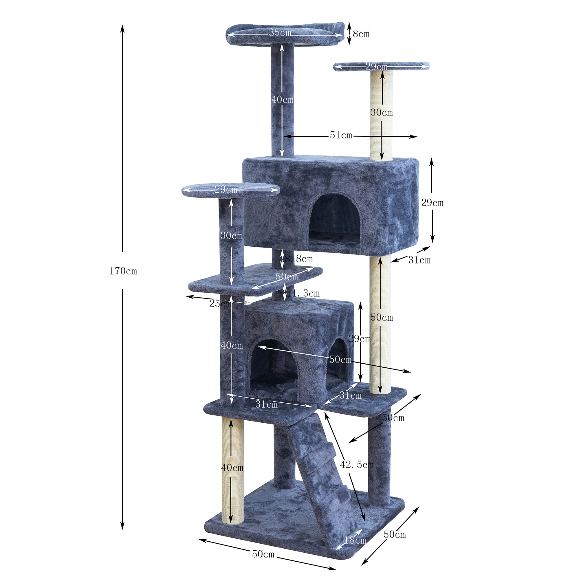 - Grebalica sadrži: 2 kućice za skrivanje, 3 odmorišta, ljestve i stupove djelomično prekrivene sisalom