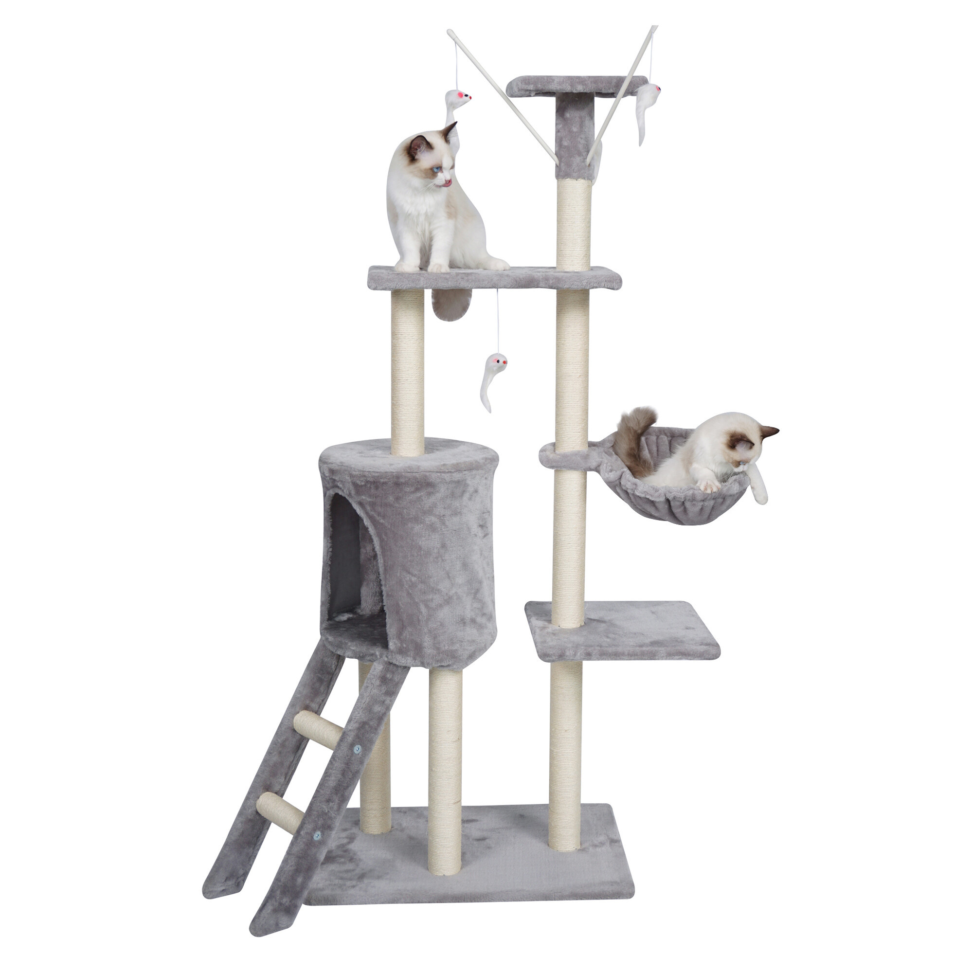 - Grebalica sadrži: 1 kućicu za skrivanje, 4 odmorišta, ljestve, 4 igračke miševe pričvršćene na elastičnim užadima i stupove djelomično prekrivene sisalom