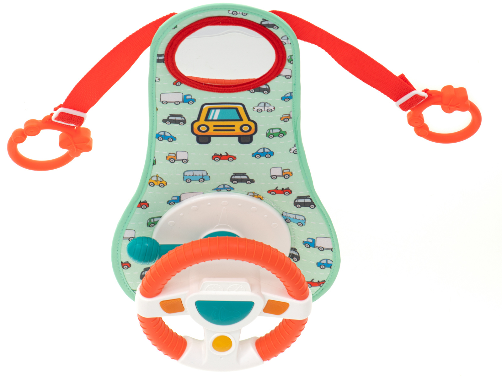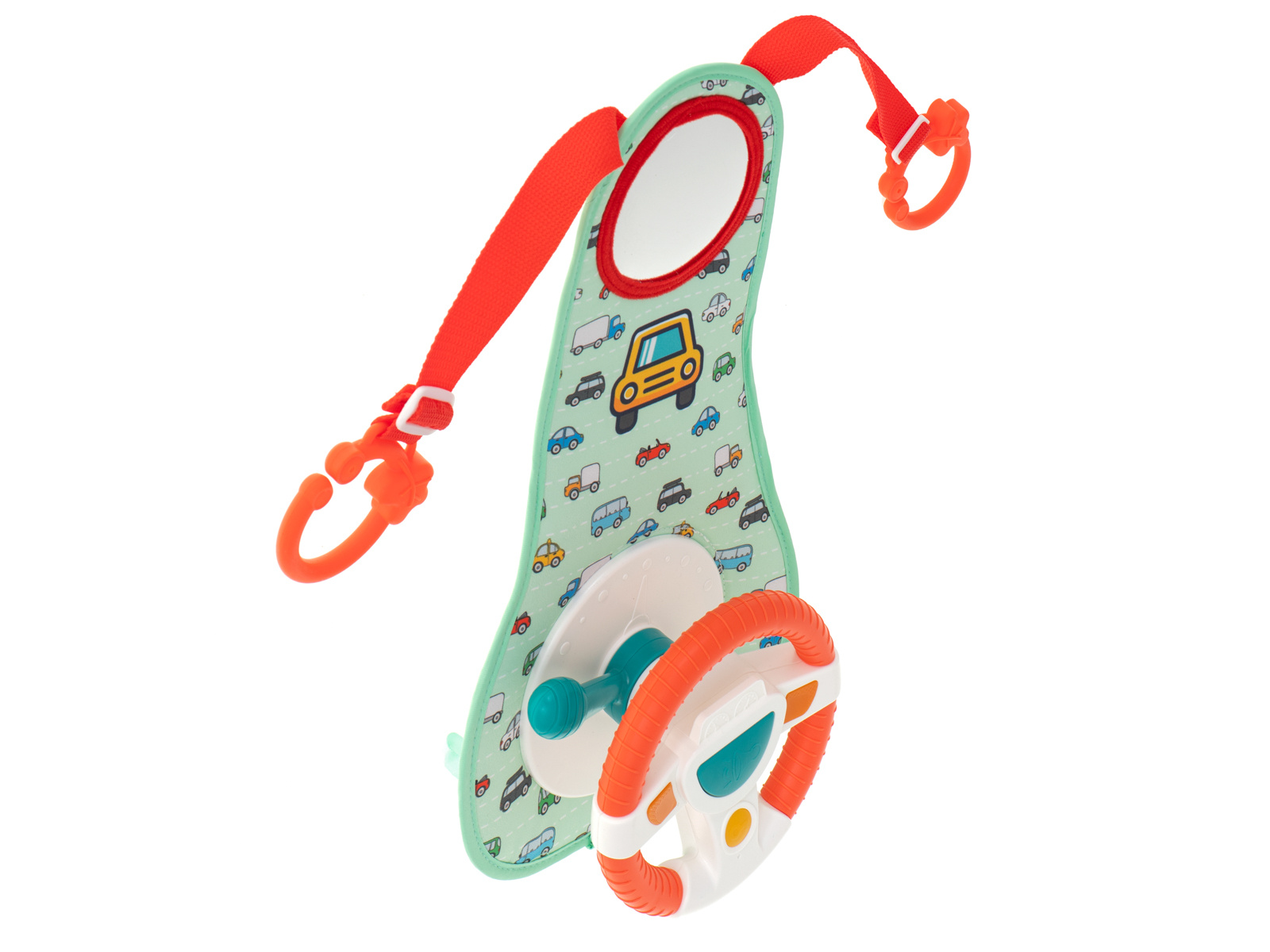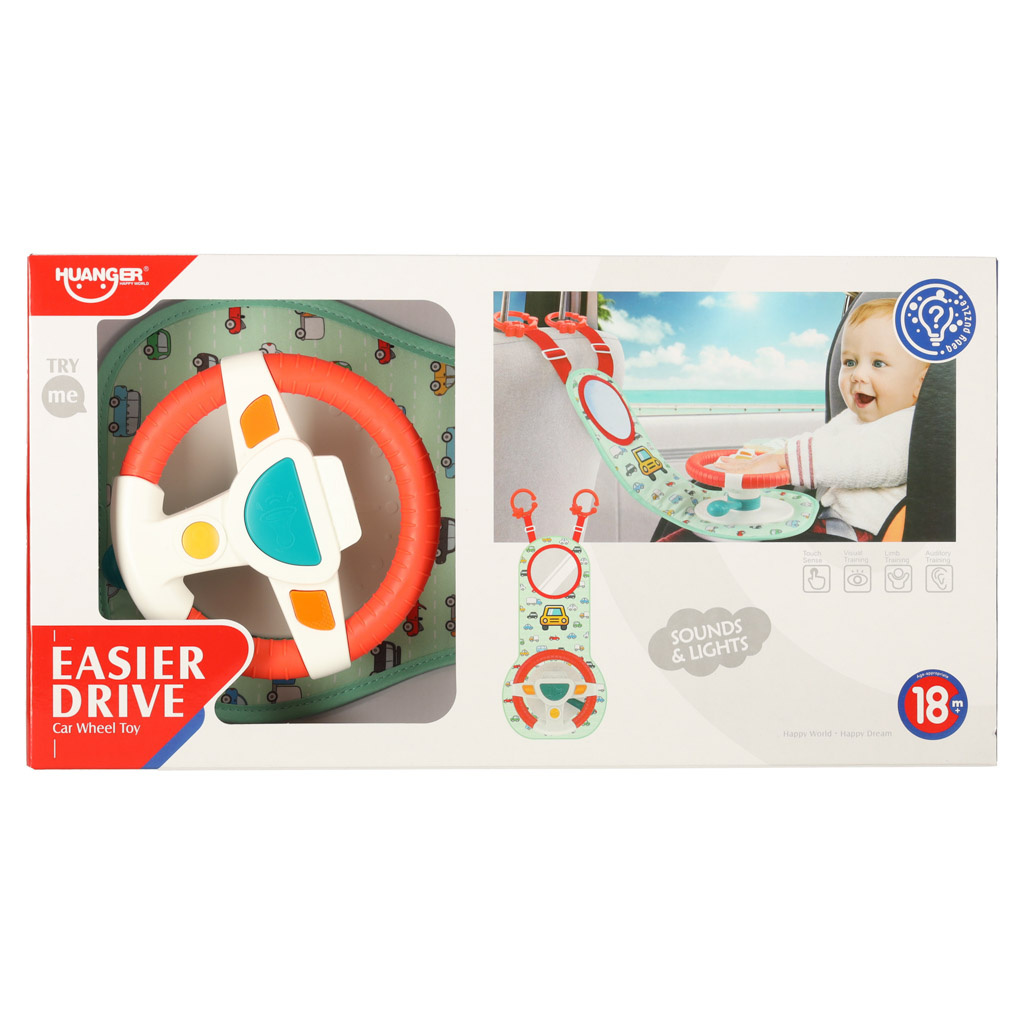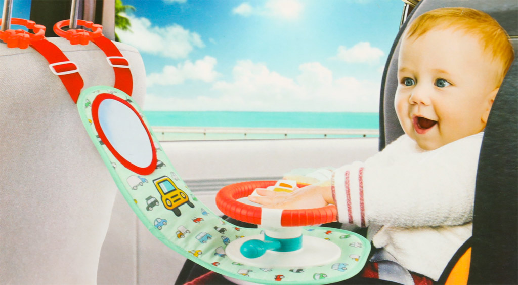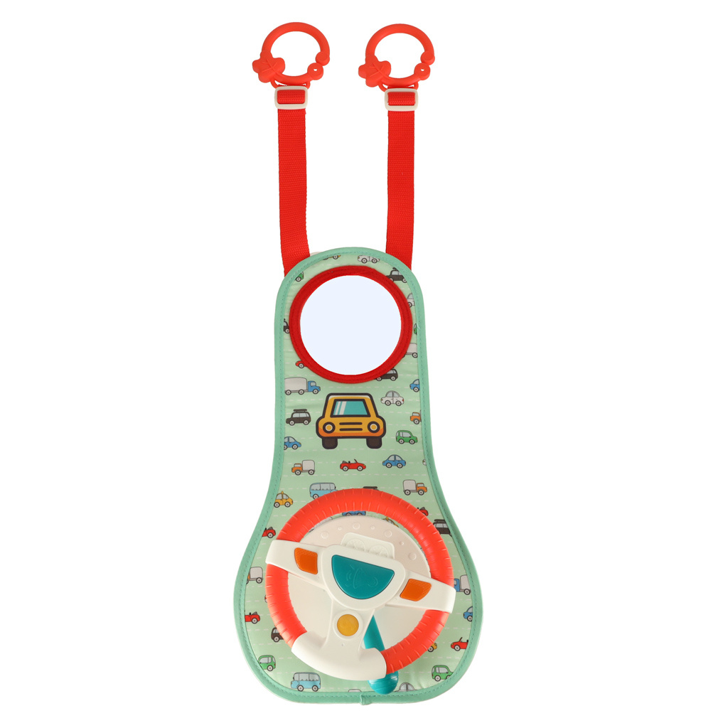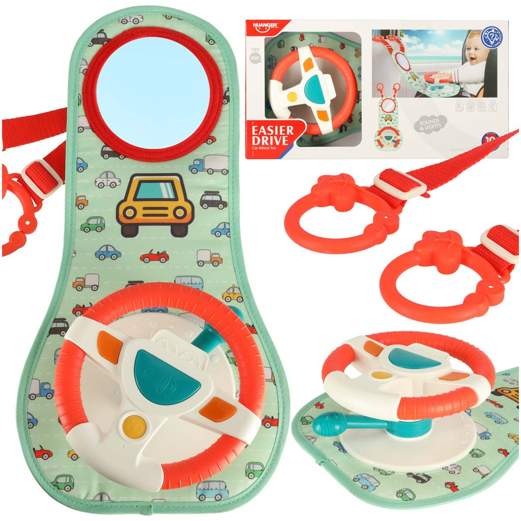 Nemirno ili plačljivo dijete na stražnjem sjedalu veliki je stres za vozača vozila. Imamo rješenje koje će vašem mališanu učiniti putovanje ugodnijim i osigurati glatku vožnju. Interaktivni volan je vrsta upravljačke ploče koja će uspješno zaokupiti male ruke tijekom cijele vožnje. Sastoji se od volana s 4 gumba, senzorske ručke i plastičnog sigurnosnog zrcala. Komadi su postavljeni na čvrstu podlogu prekrivenu ugodnom tkaninom s motivom autića.