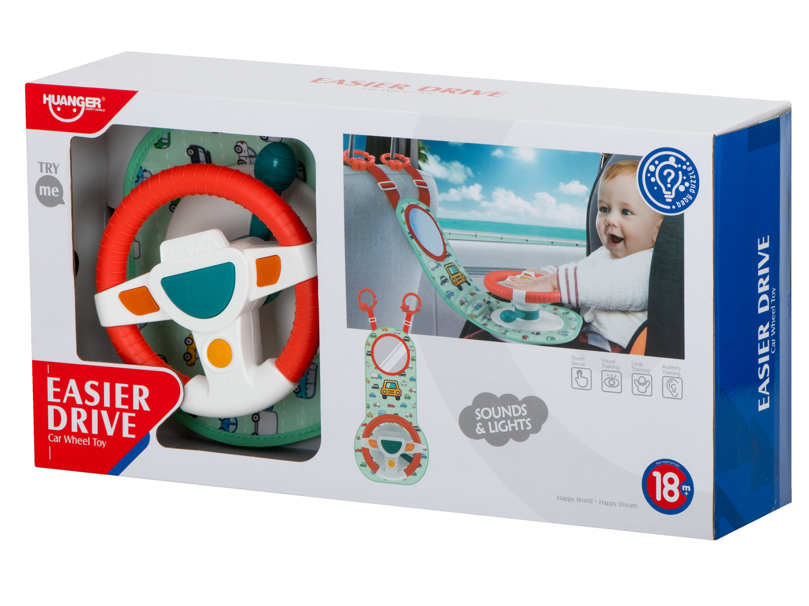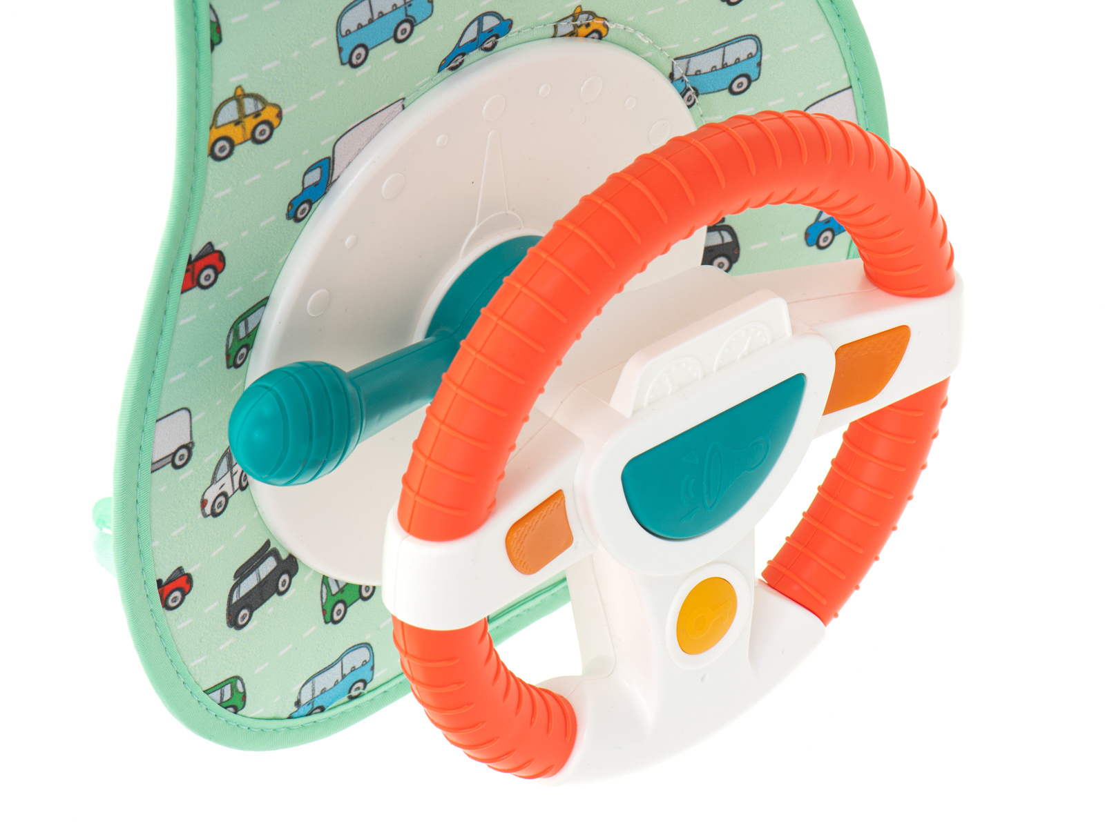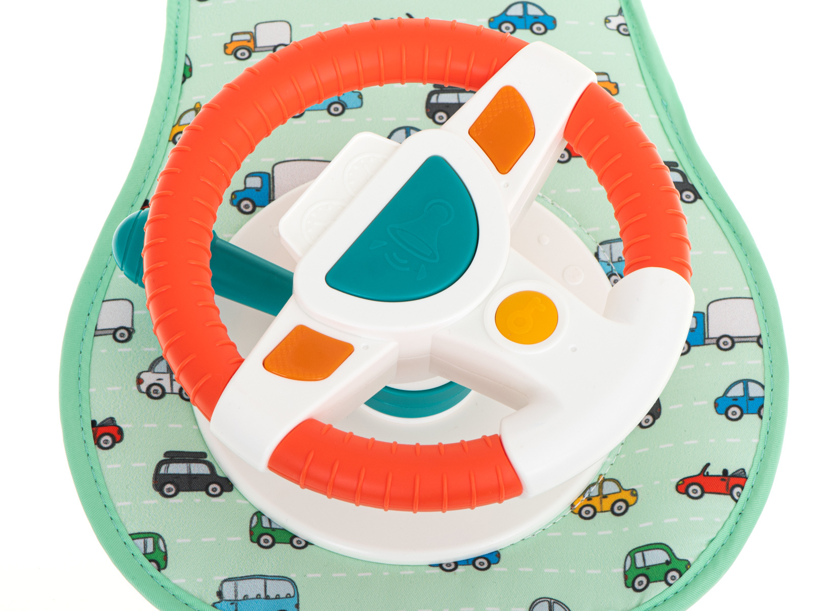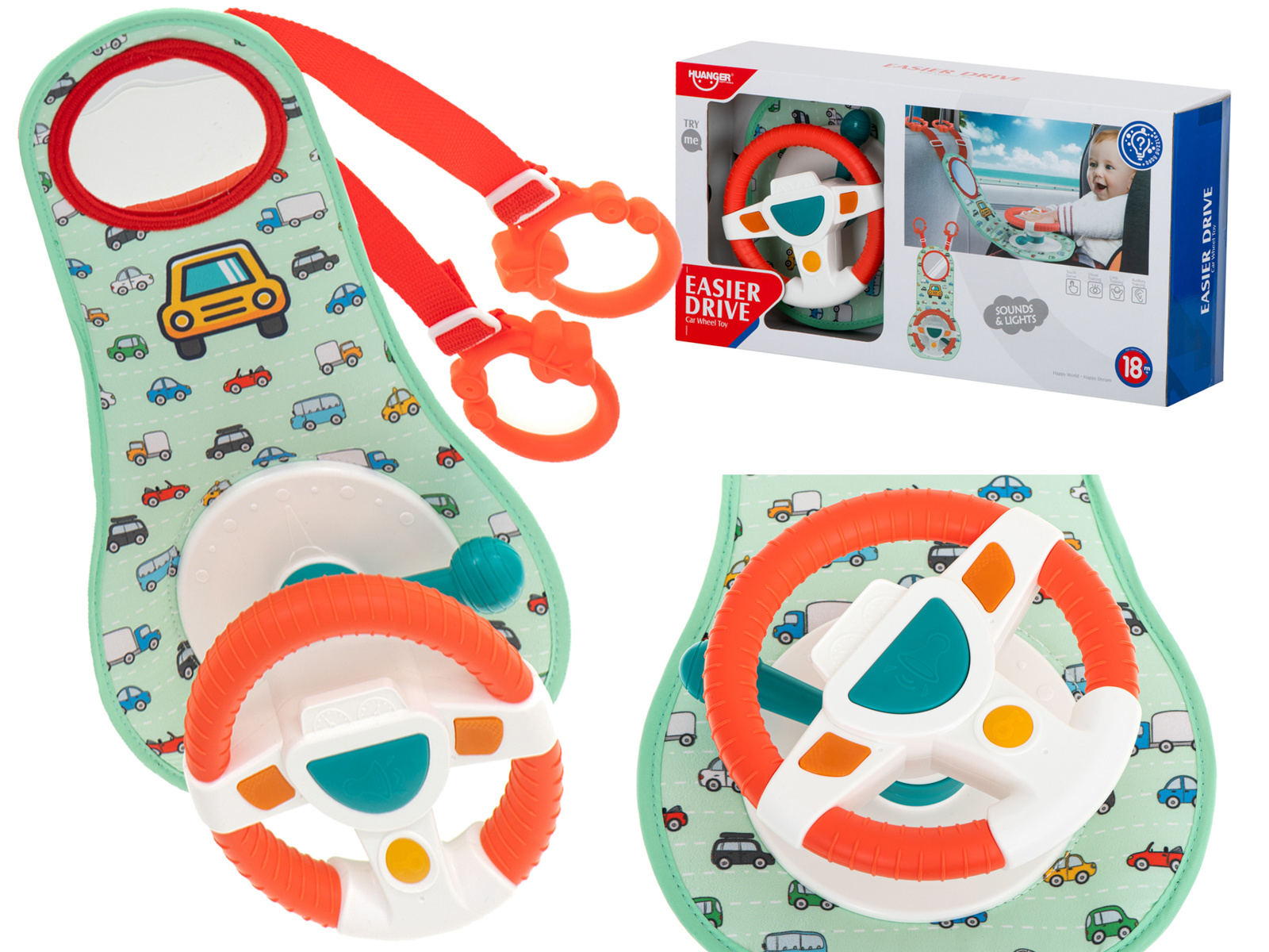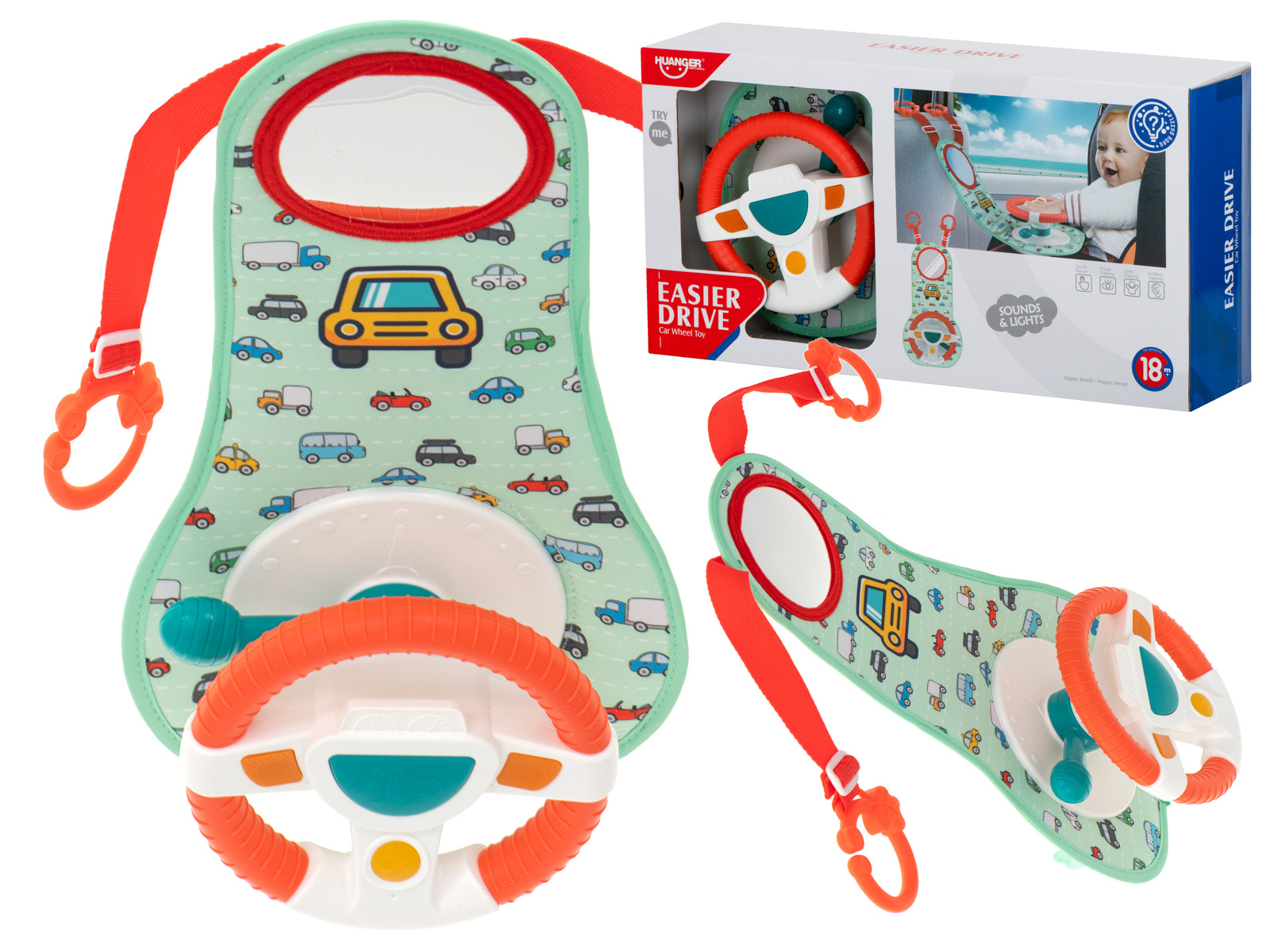 Nemirno ili plačljivo dijete na stražnjem sjedalu veliki je stres za vozača vozila. Imamo rješenje koje će vašem mališanu učiniti putovanje ugodnijim i osigurati glatku vožnju. Interaktivni volan je vrsta upravljačke ploče koja će uspješno zaokupiti male ruke tijekom cijele vožnje. Sastoji se od volana s 4 gumba, senzorske ručke i plastičnog sigurnosnog zrcala. Komadi su postavljeni na čvrstu podlogu prekrivenu ugodnom tkaninom s motivom autića.