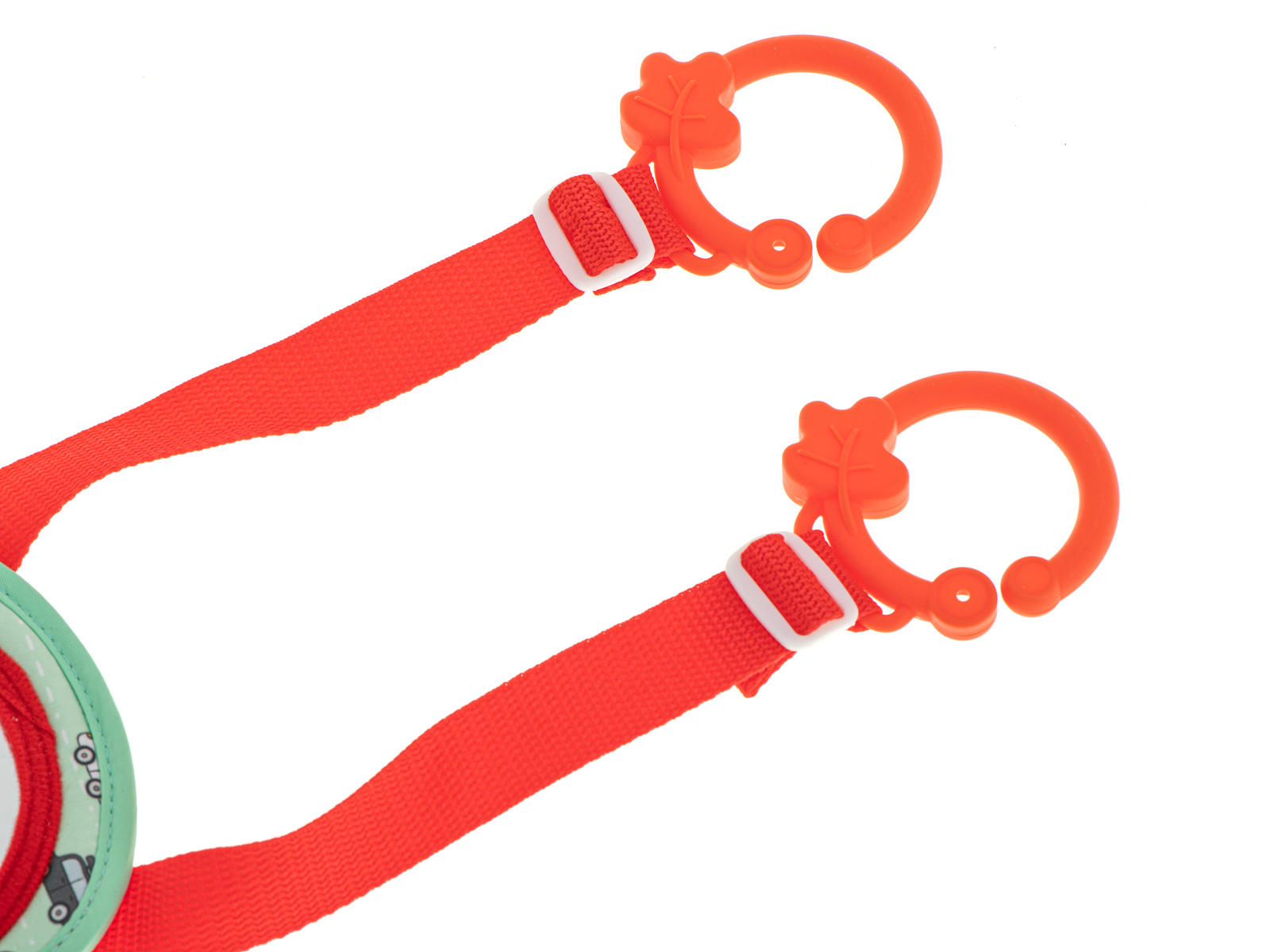 Igračku pričvrstite na naslone za glavu prednjeg sjedala pomoću plastičnih kotačića na podesivim trakama.