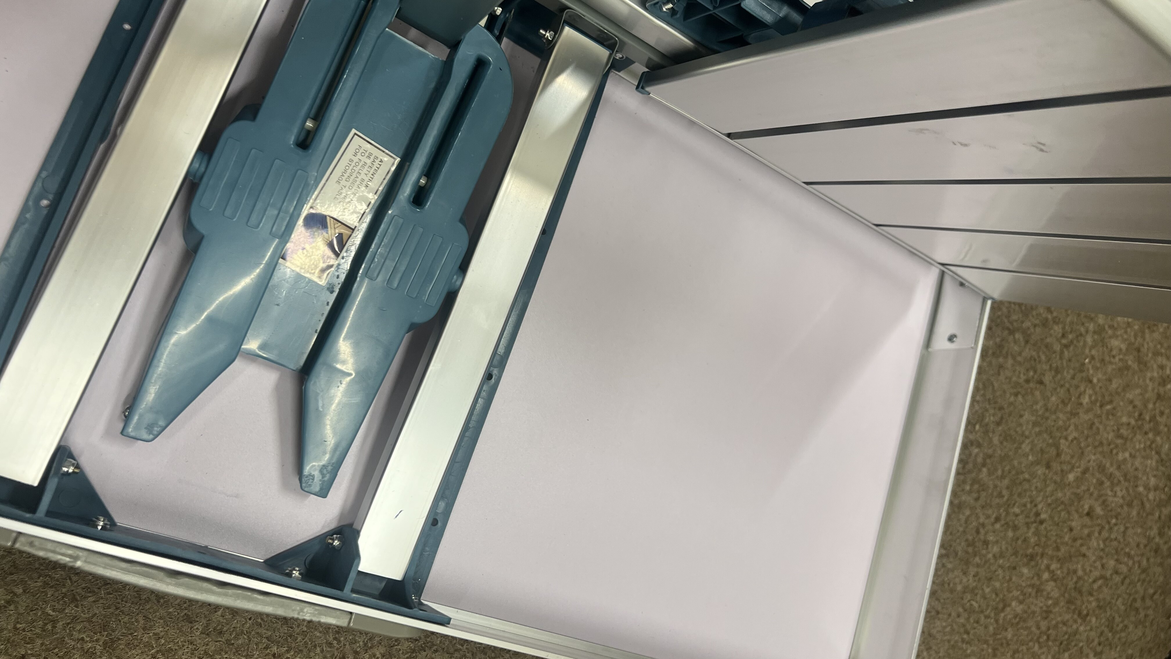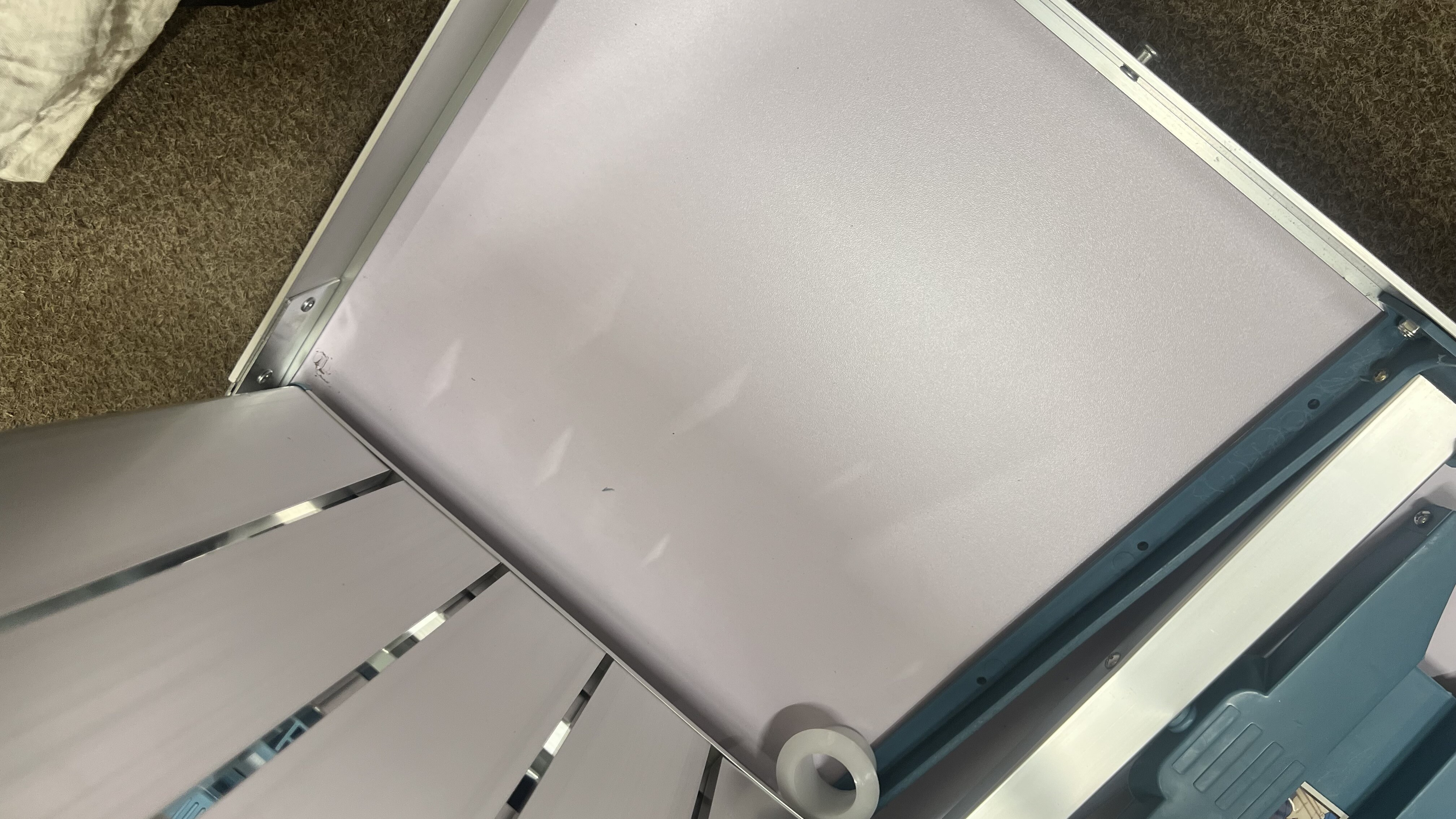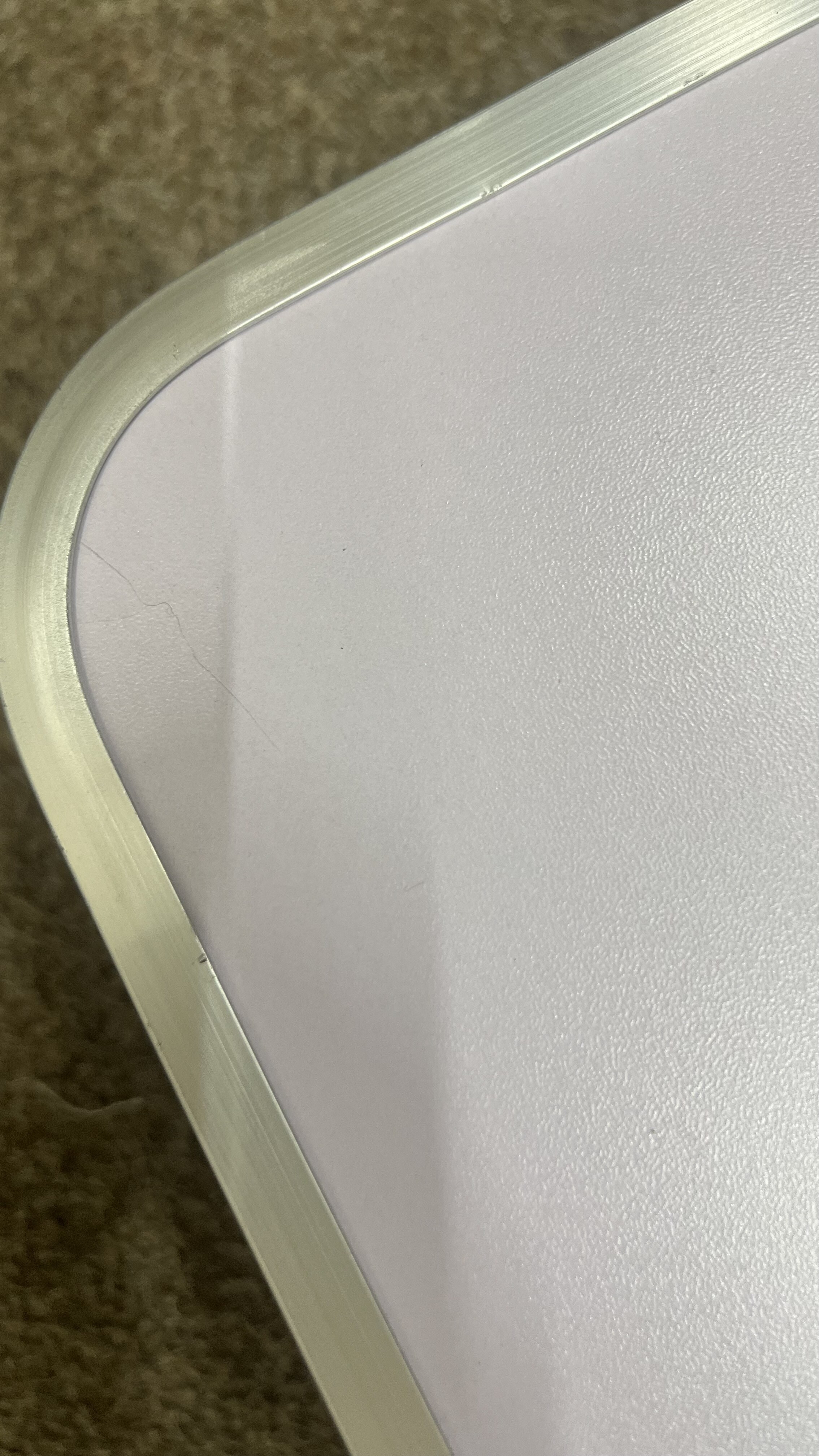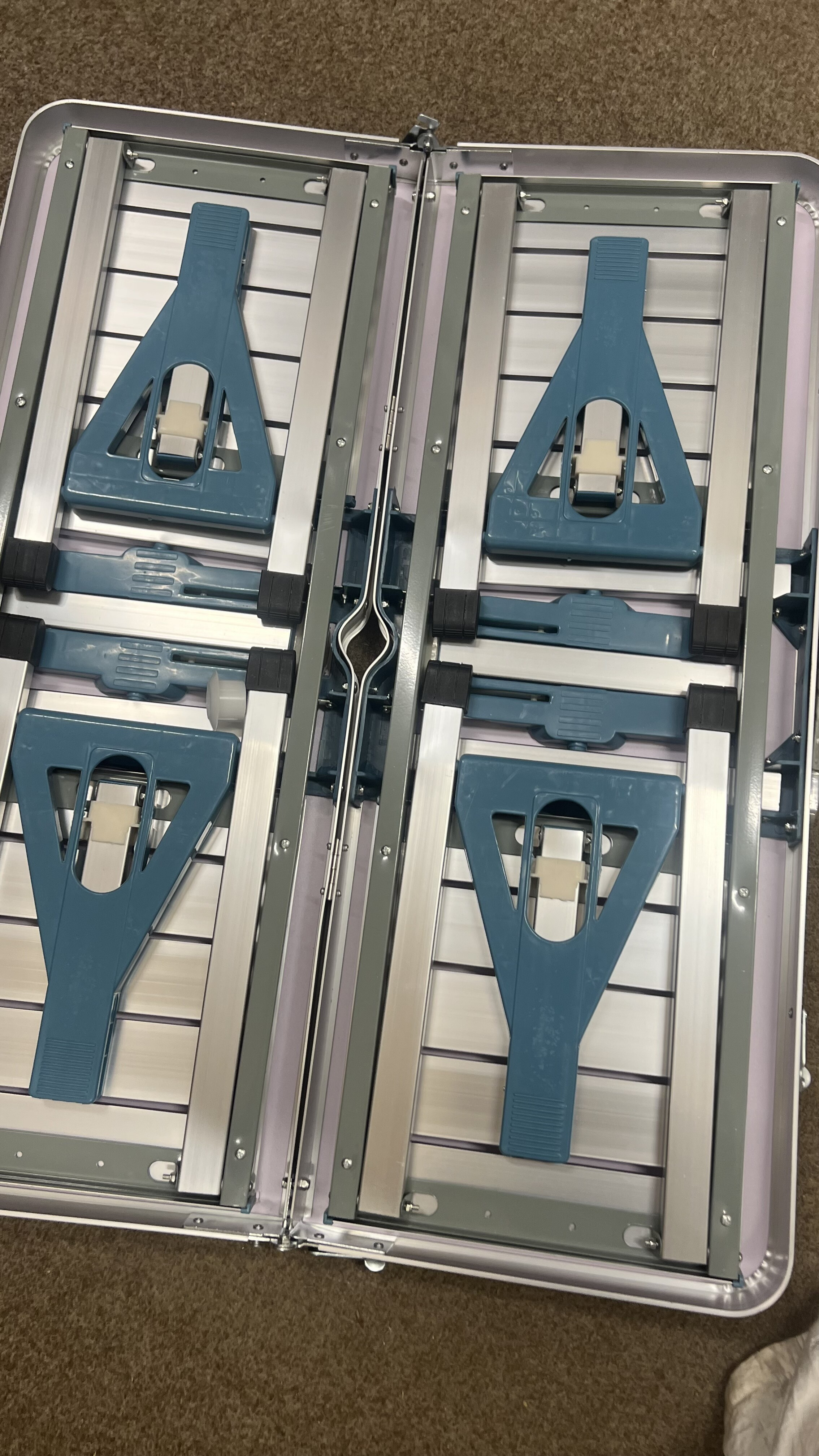 Kamperski sklopivi set je kompletan i potpuno funkcionalan. Nedostatak se sastoji od pukotina na ploči u dva kuta, površina je dodatno mjestimično lagano izgrebana i prašnjava.