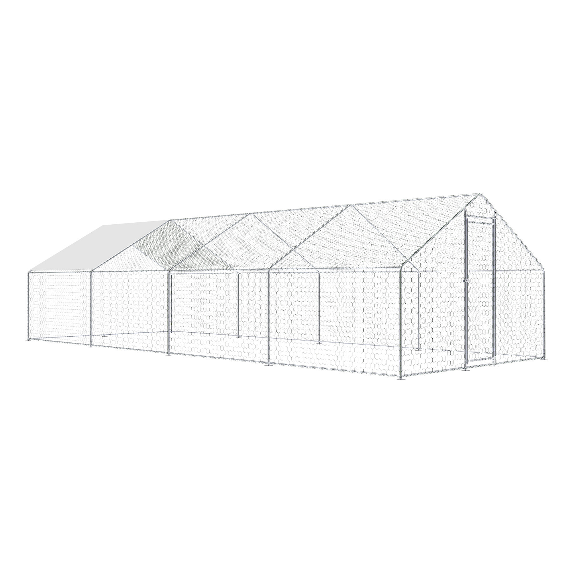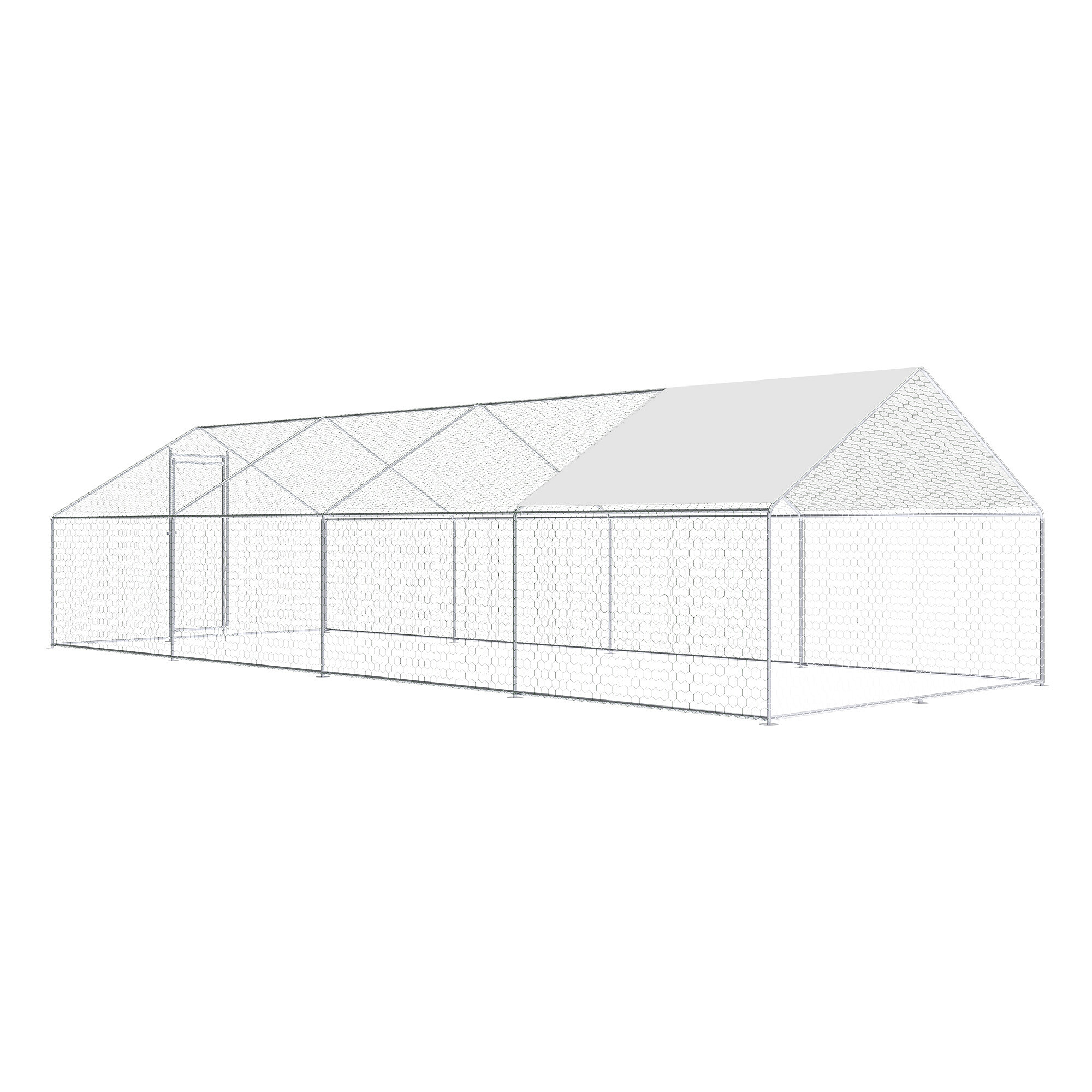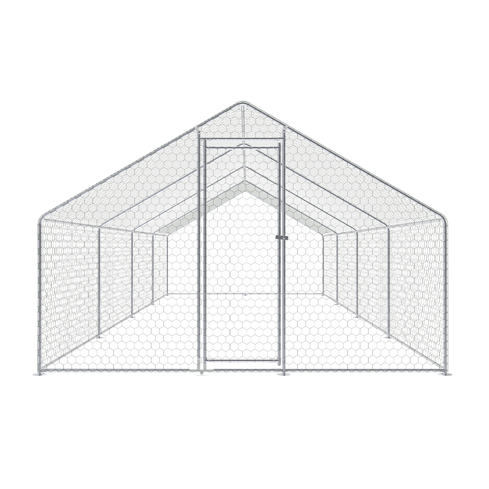 Ogradak za perad izrađen je od čvrste konstrukcije od pocinčanog čelika, koja je otporna na koroziju i pogodna za dugotrajnu vanjsku upotrebu. Zahvaljujući tome, konstrukcija zadržava svoju funkcionalnost čak i pri redovitom izlaganju vremenskim uvjetima. Cijeli ograđeni prostor dopunjen je pocinčanom mrežom koja služi kao zaštitna mreža za kokoši, patke i druge male životinje te istovremeno pomaže u zaštiti životinja od predatora.