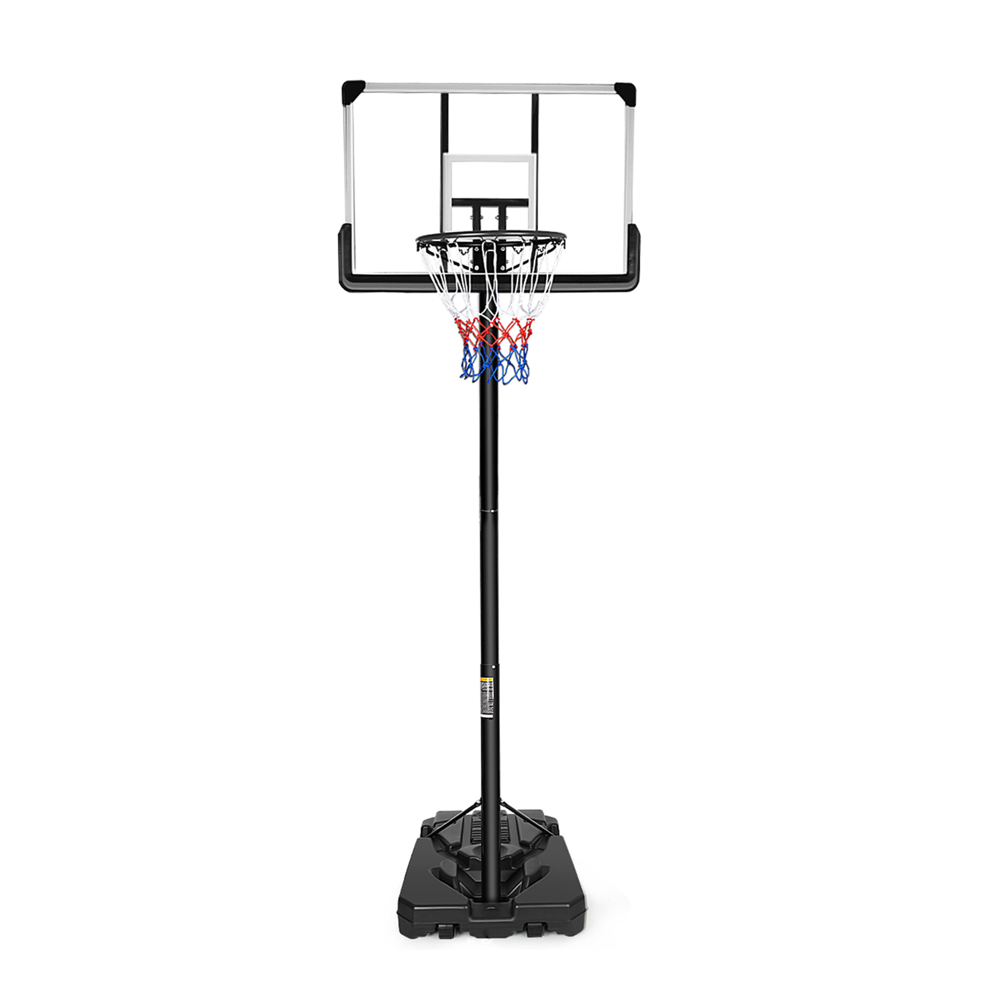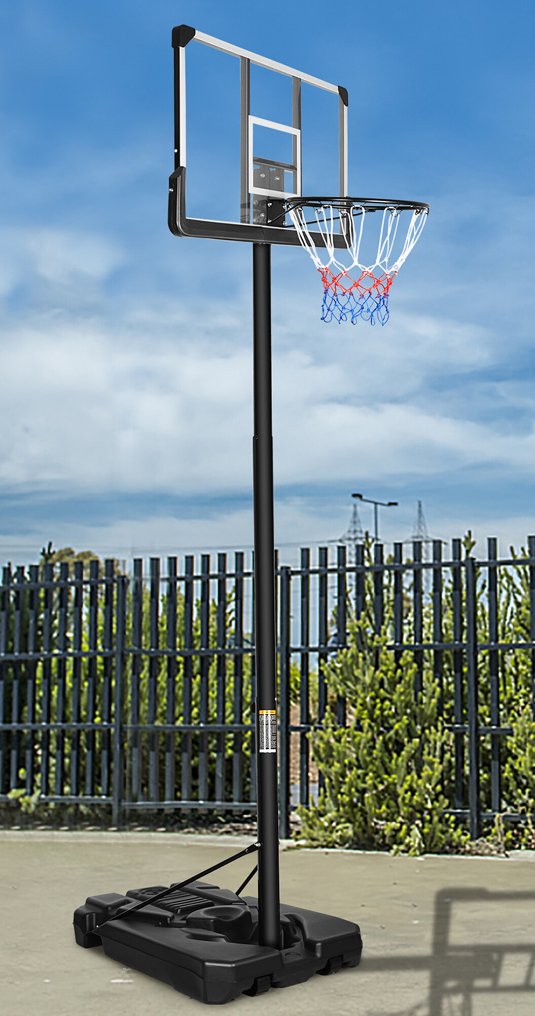 Mobilni koš za košarku s podesivom visinom, čvrstom plastičnom pločom i obručem s mrežom.