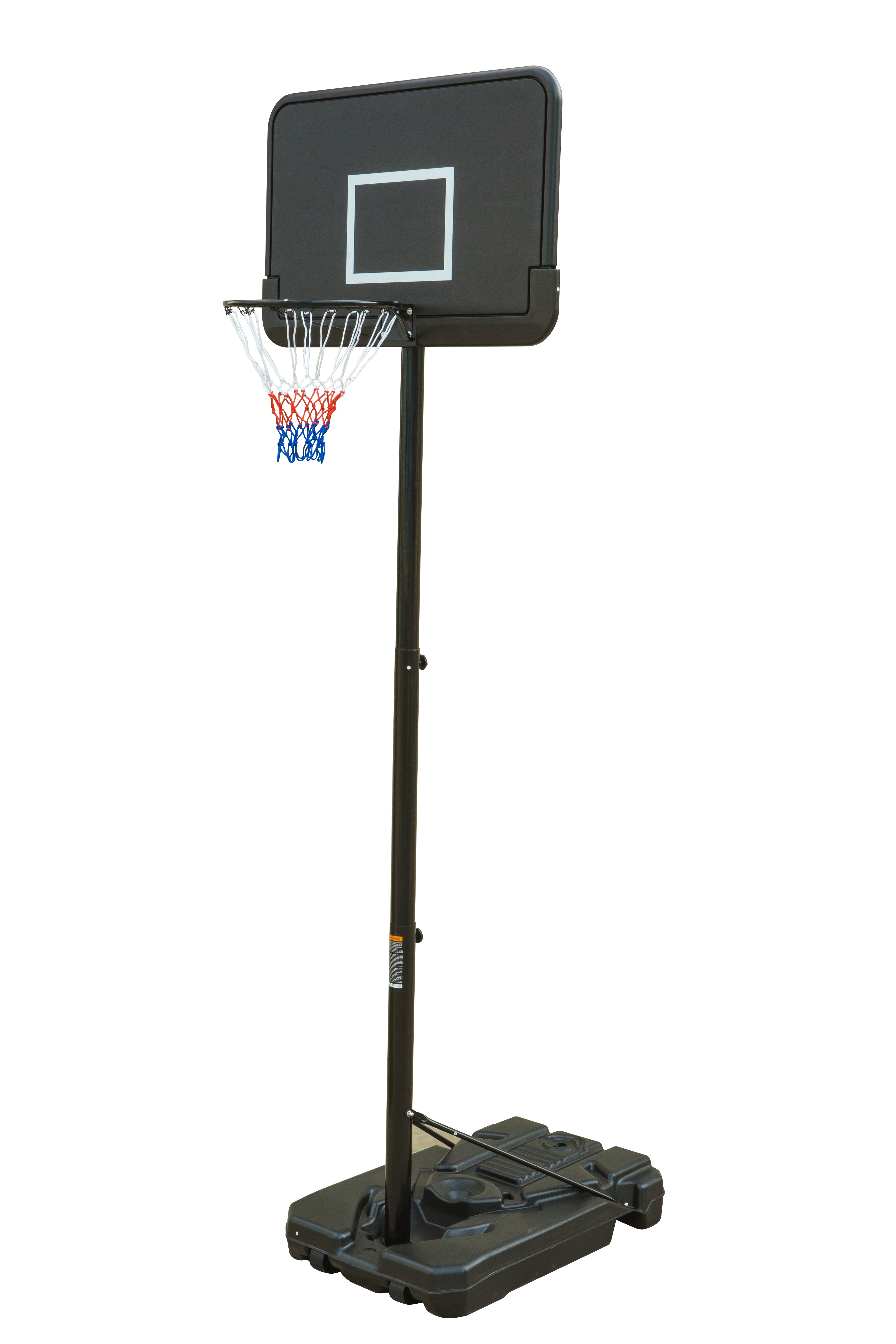 Koš ima stabilnu i izdržljivu čeličnu konstrukciju s praškastim premazom i bazu od očvrsnute plastike, koju je moguće napuniti vodom ili pijeskom. Zahvaljujući jednostavnom mehanizmu, možete lako mijenjati visinu koša od 200 do 305 cm.