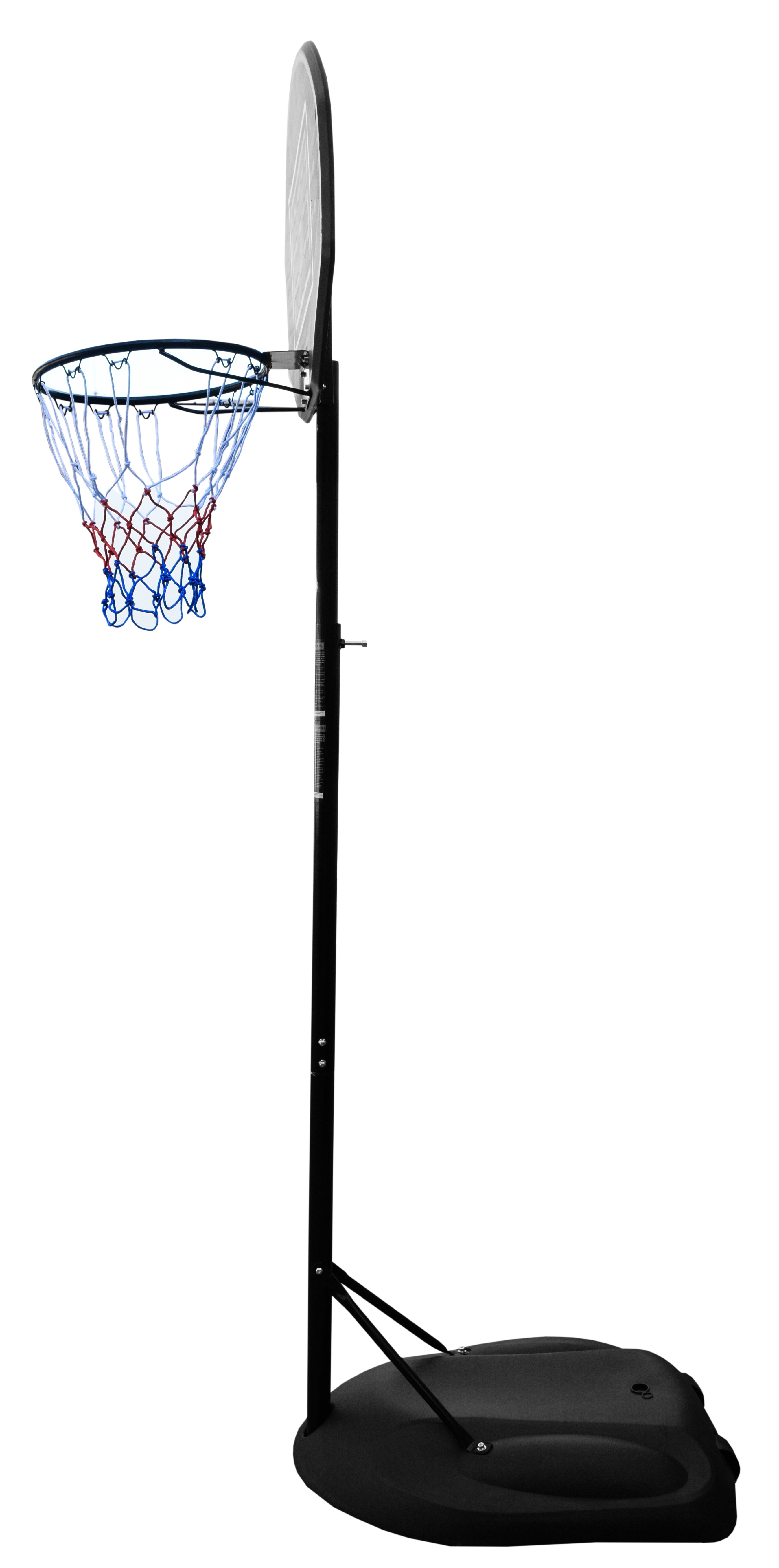 Mobilni koš za košarku s podesivom visinom, čvrstom plastičnom pločom i obručem s mrežom.