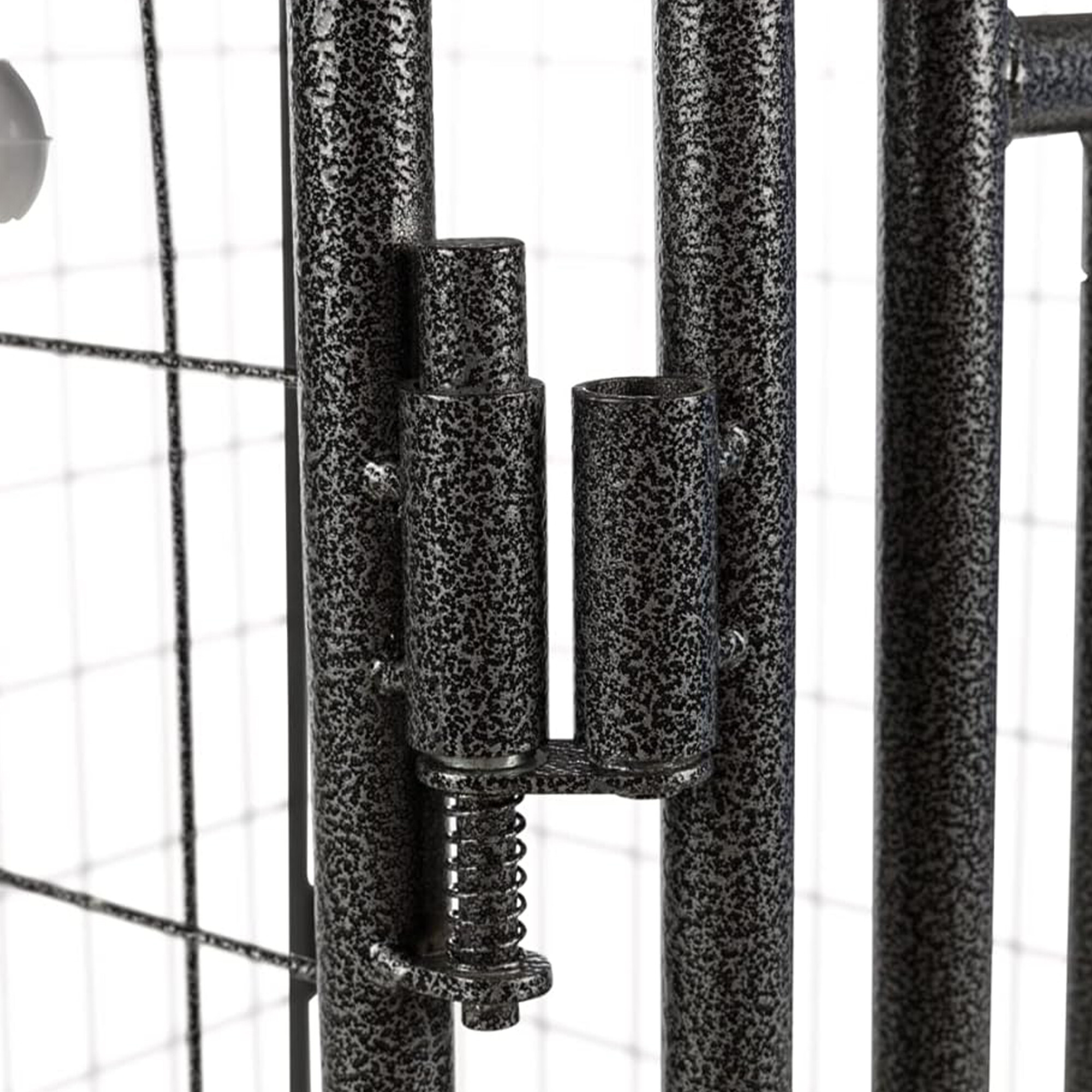 Četiri pojedinačna metalna dijela lako se mogu spojiti pomoću spojnih šarki. Kavez se može kombinirati s drugim kavezima marke Aga u različitim varijantama prema vašim prostornim mogućnostima.Osim toga, opremljen je vratima, što pruža veću fleksibilnost pri ulasku i izlasku.