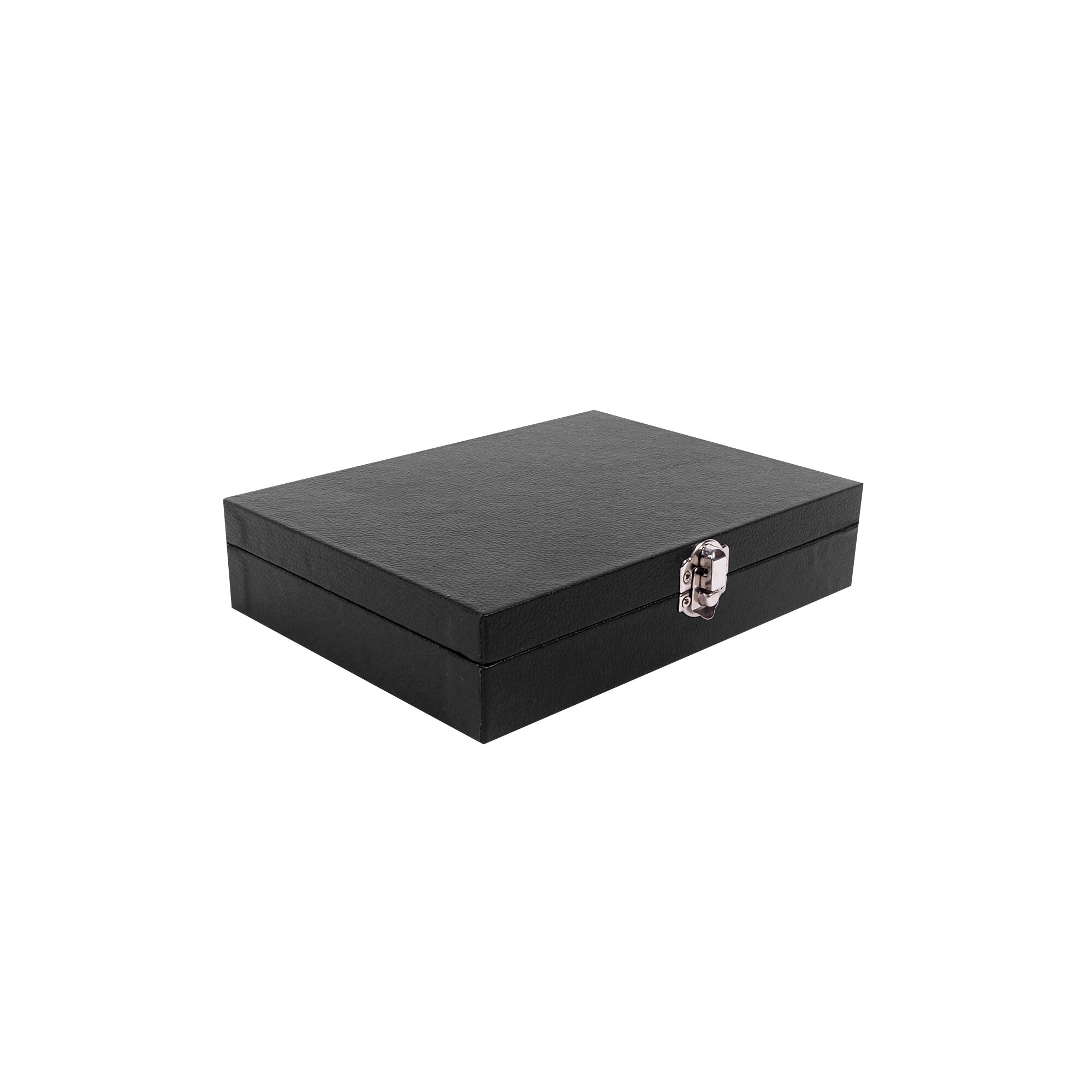 Elegantna crna boja daje kutiji za nakit bezvremenski izgled koji se uklapa u bilo koji interijer. Bilo da je smjestite u spavaću sobu, kupaonicu ili na toaletni stolić, uvijek će djelovati kao stilski dodatak.