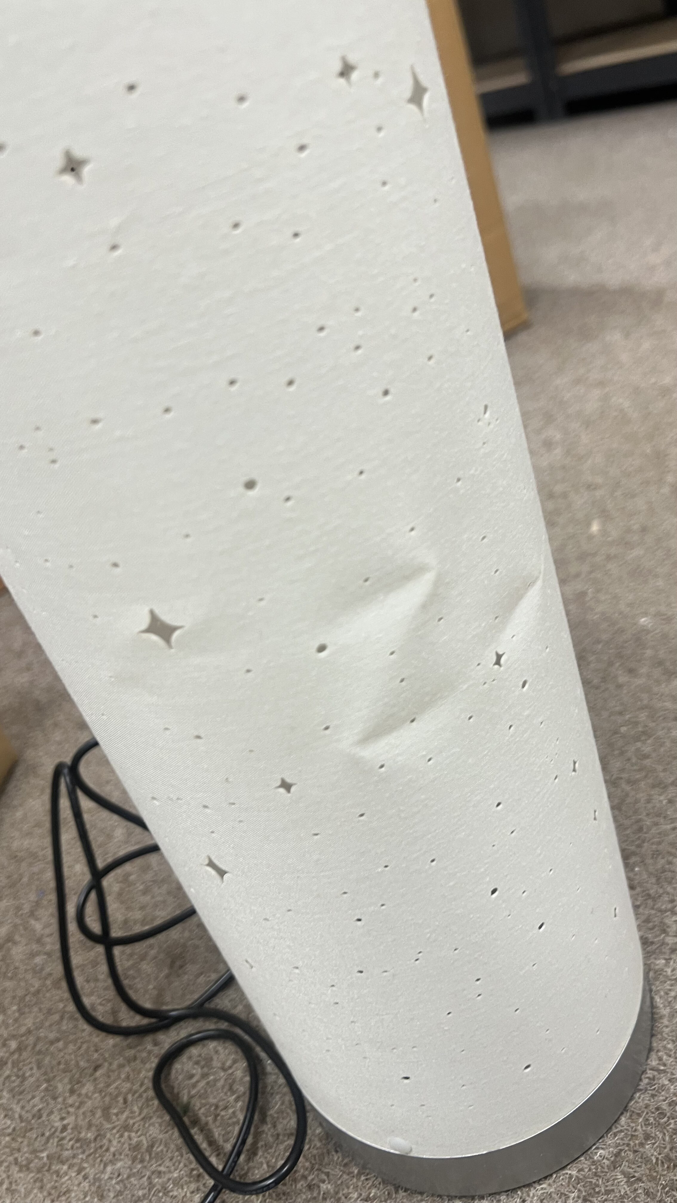 Lampa ima oštećen poklopac i nekoliko udubljenja. Navedeni nedostaci nemaju utjecaj na funkcionalnost niti na sigurno korištenje lampe.