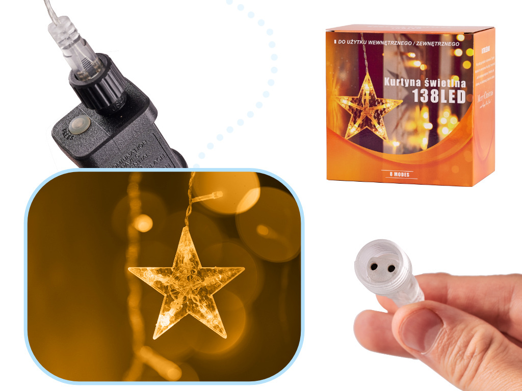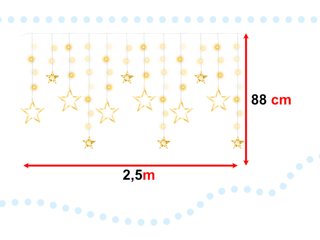 LED Svjetlosna zavjesa ZVIJEZDE 138 LED Topla