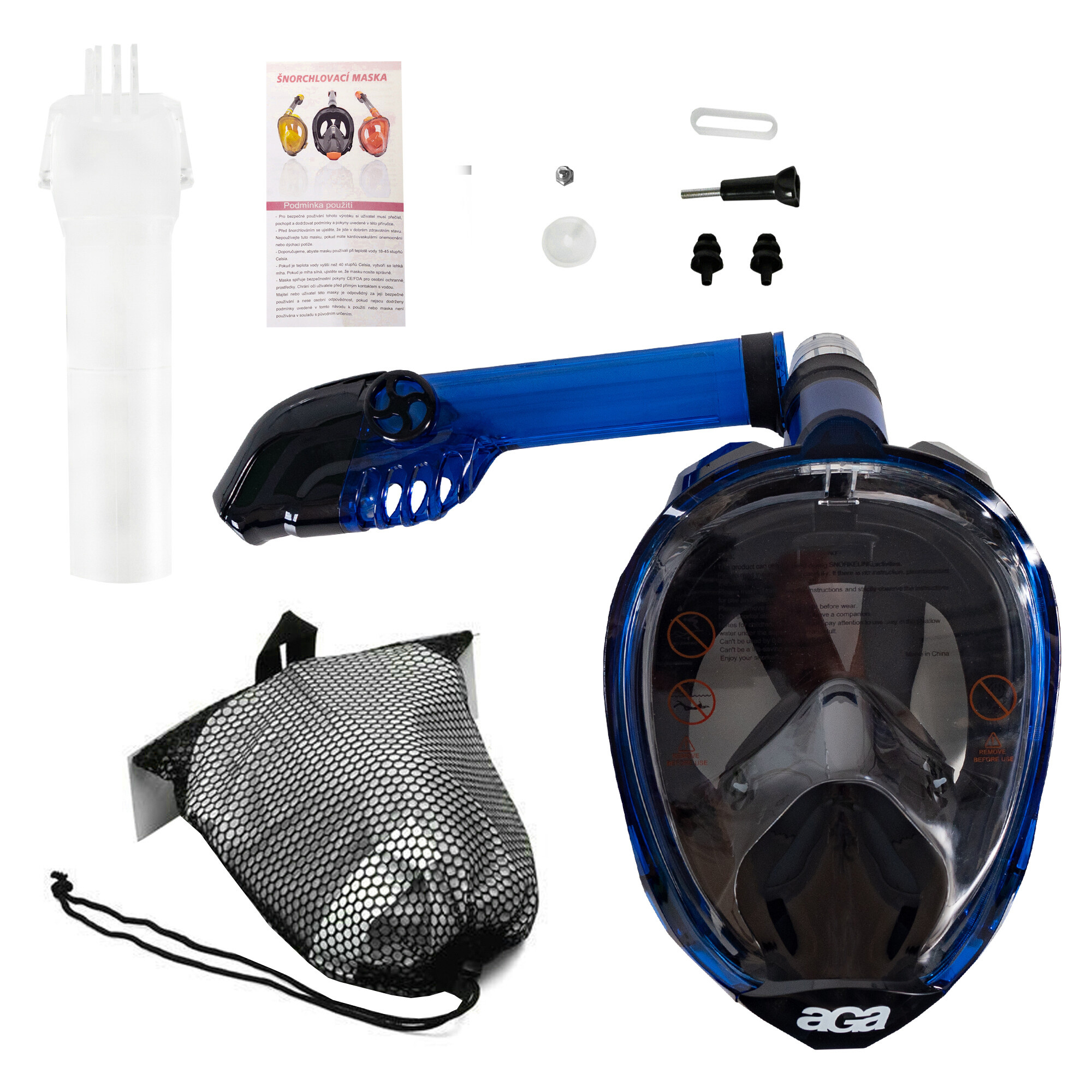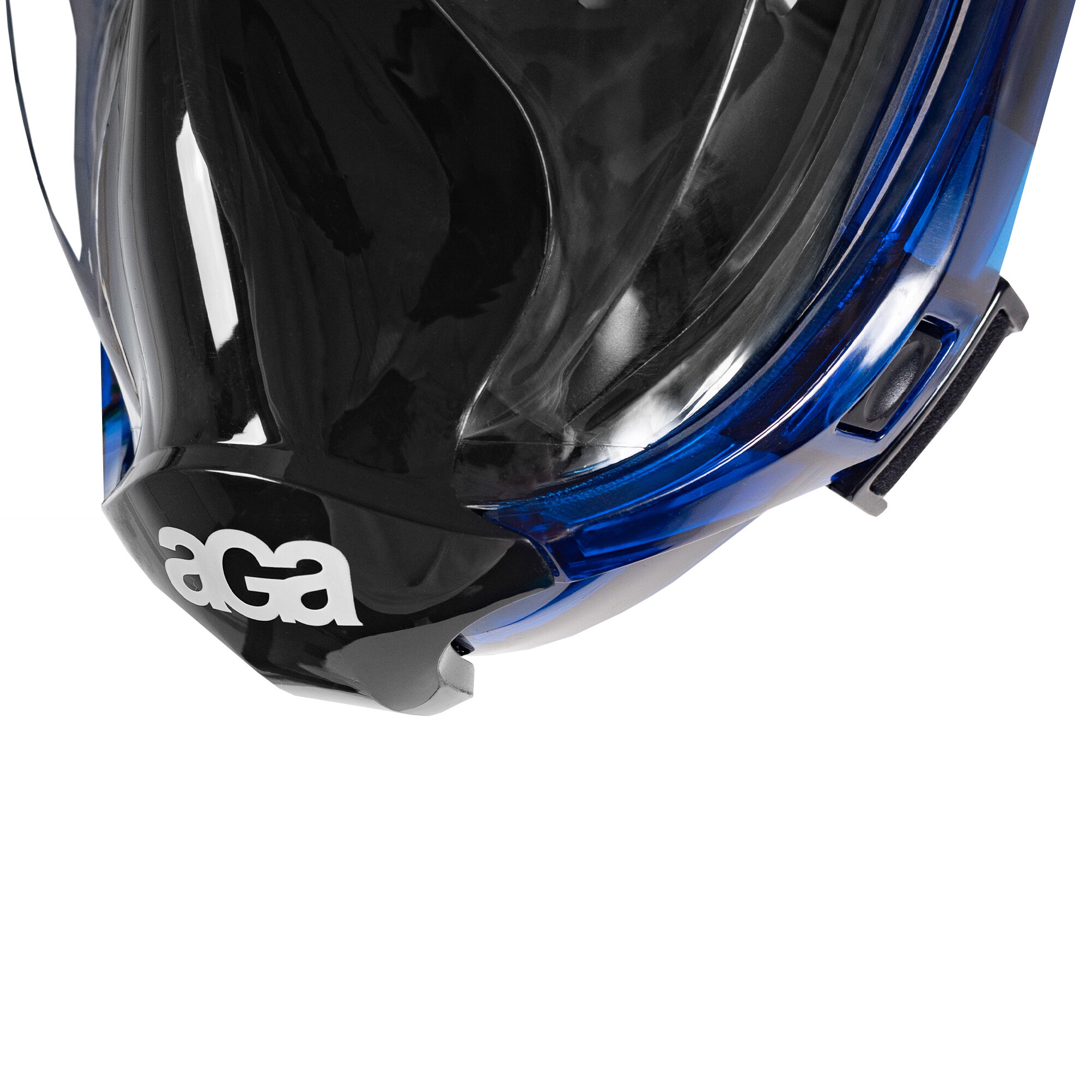 Ronilačka maska Aga izrađena je od polikarbonata i nudi ogromnu zaštitu protiv prodora vode, kao i udobno nošenje. Pruža kut gledanja od 180° s cirkulacijskim dišnim sustavom. Svježi zrak udišete kroz nos i usta, a zatim izlazi kroz jednosmjerne otvore u maski.