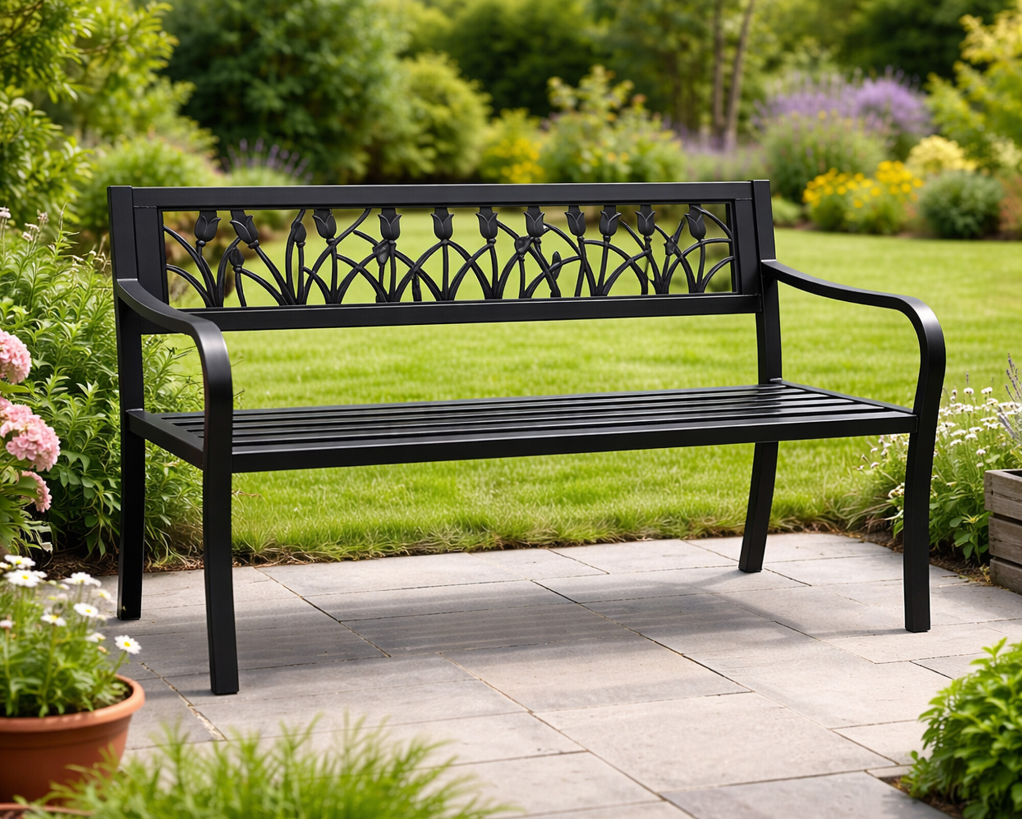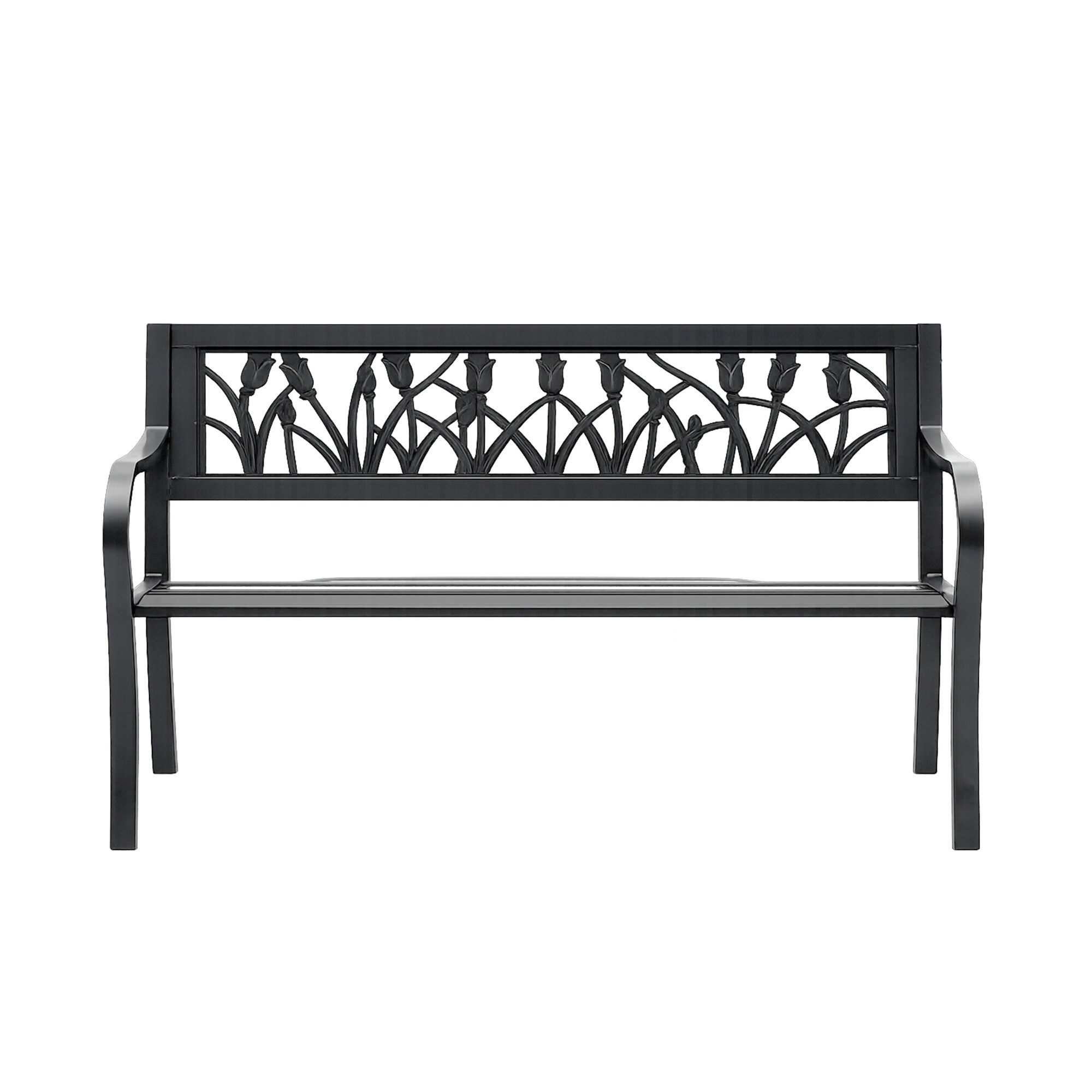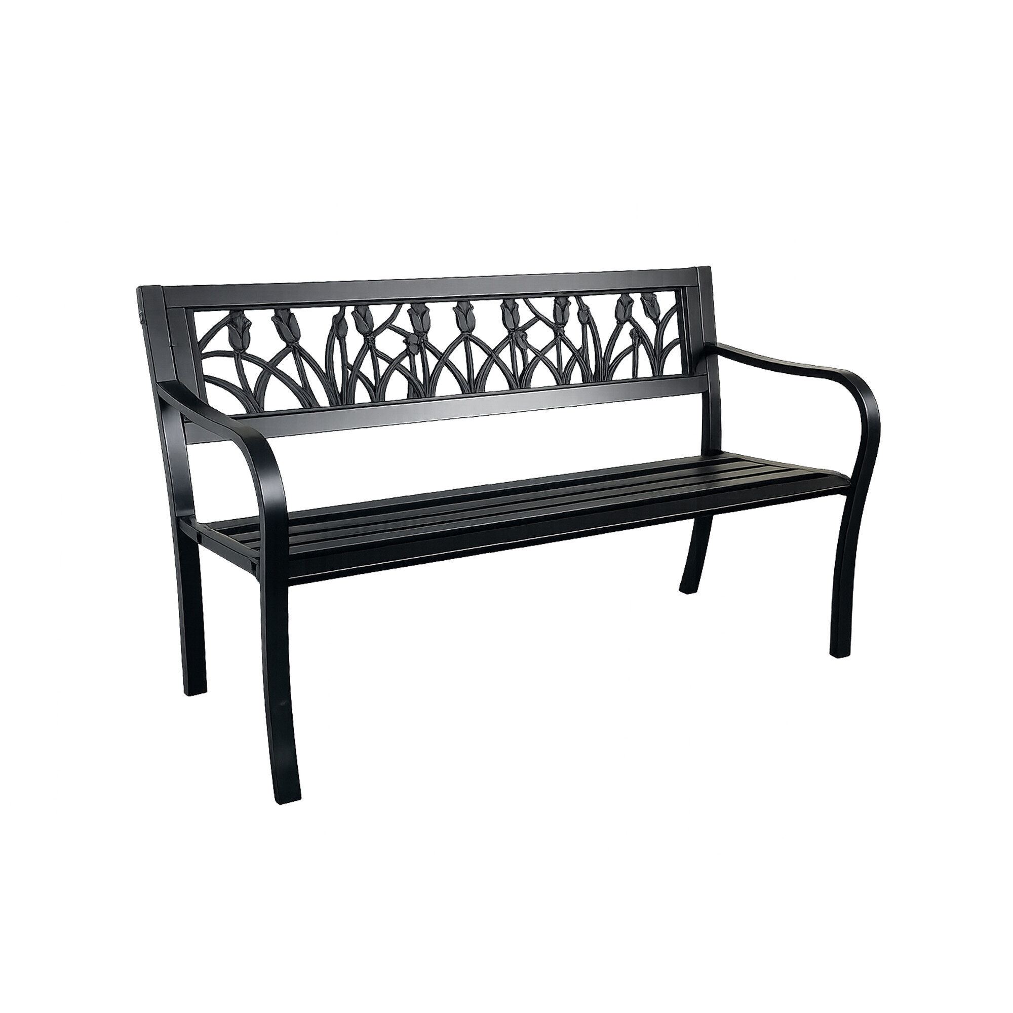 Konstrukcija vrtne klupe izrađena je od čelika i lijevanog željeza, ovi materijali su izdržljivi i istovremeno osiguravaju stabilnost. Konstrukcija klupe je opremljena površinskom obradom praškastim premazom, stoga klupa izvrsno odolijeva vremenskim uvjetima i ima dug vijek trajanja.
