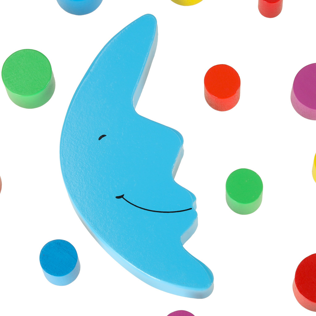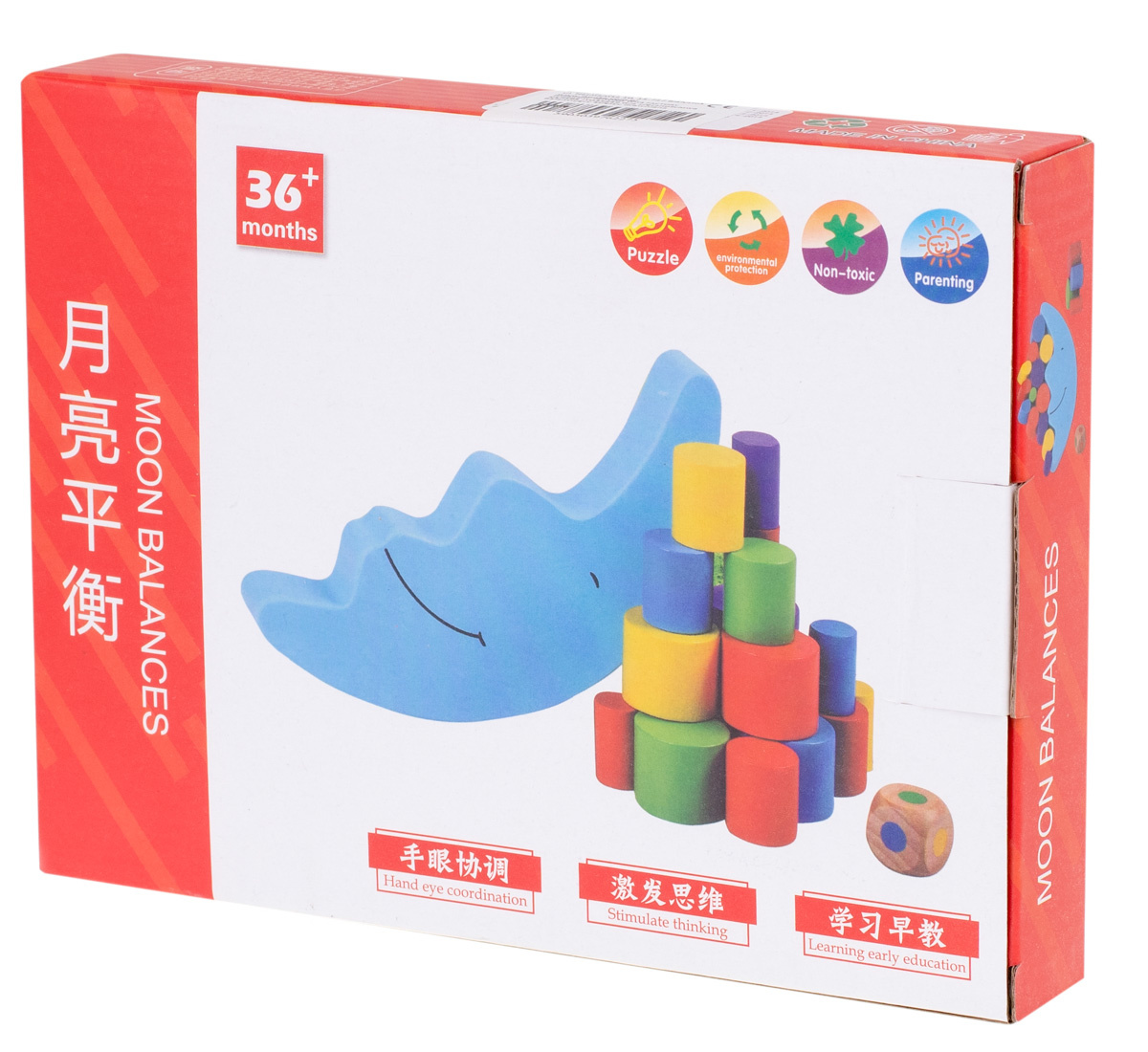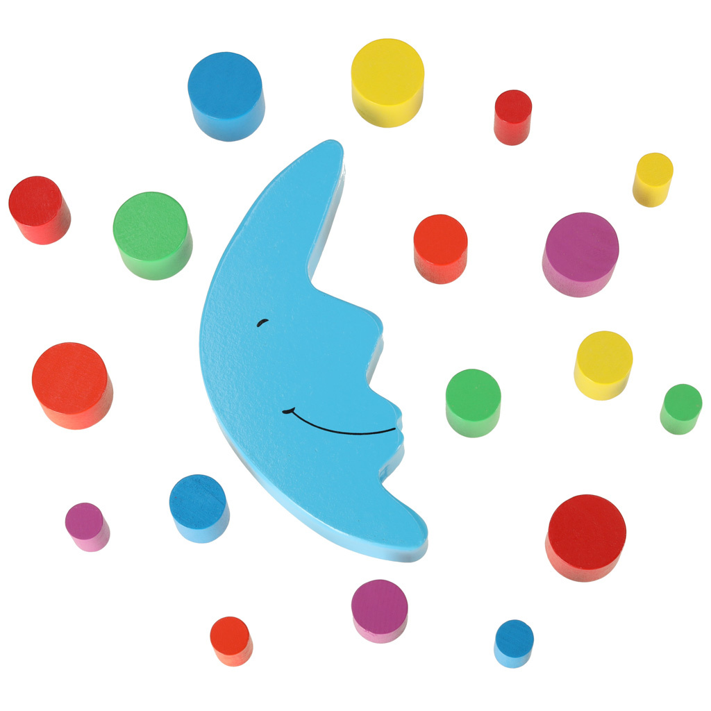 Fina motorika, strpljenje i taktika, to su pravi preduvjeti za pobjedu u igri Balansirajući mjesec. Pojedini elementi izrađeni su od masivnog drva i obojani modernim bojama.