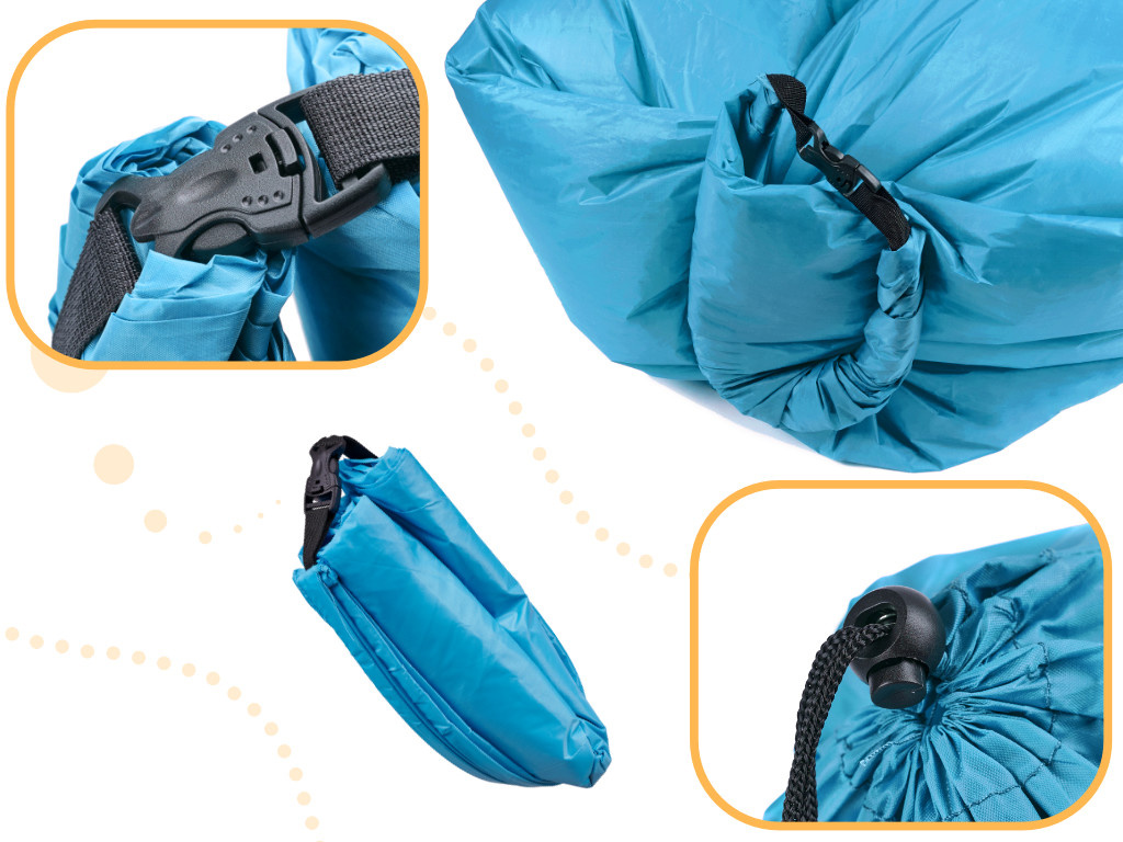 A kada je želite sastaviti, nema ništa jednostavnije. Samo otkopčajte kopče i otvorite zatvarač. Zrak s kauča oslobađa se u nekoliko sekundi. Složite je i spremite u priloženu futrolu.