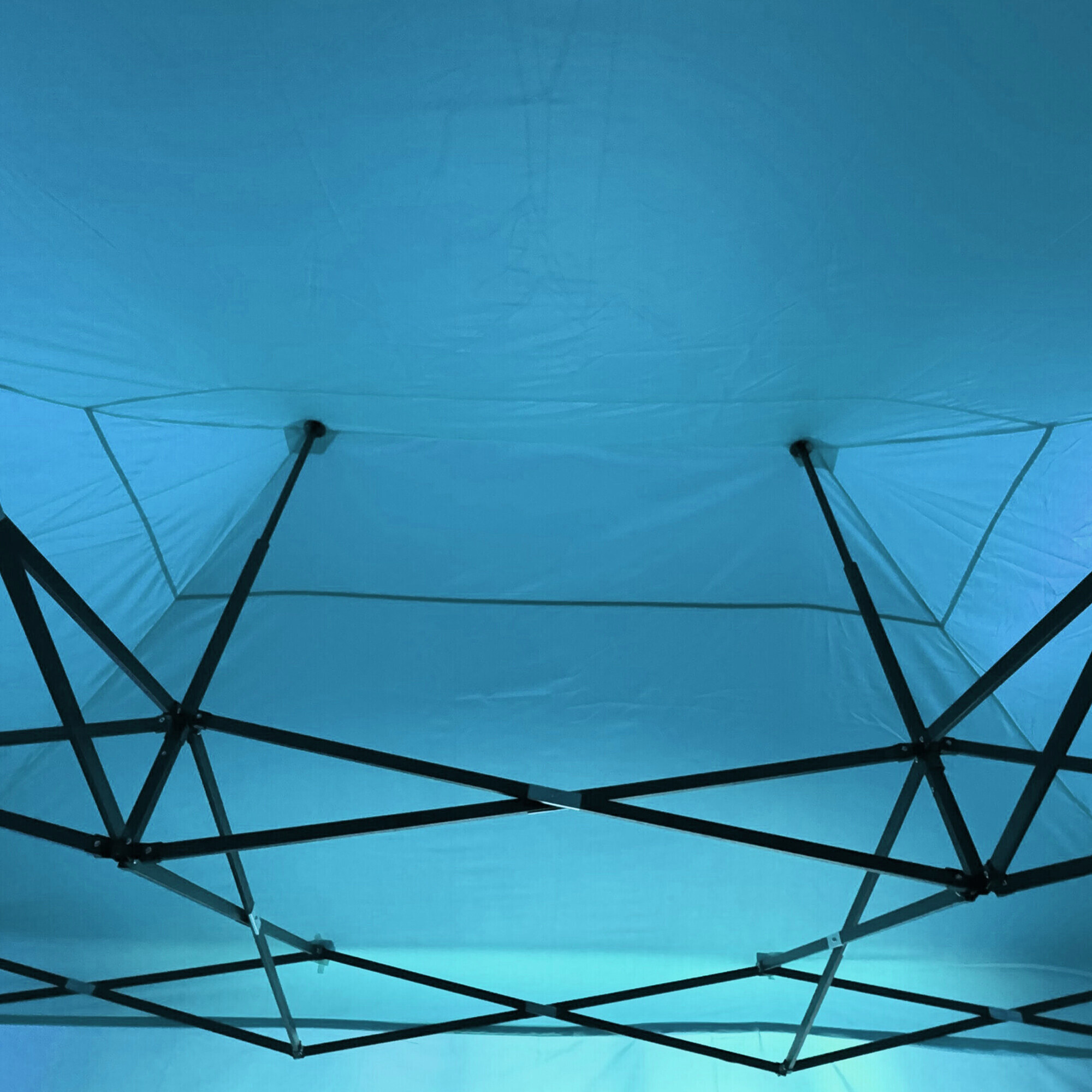 Krov od izdržljivog 420D PU Oxforda i bočne stranice od PVC Oxforda 210D pružaju zaštitu od vjetra i sunca te stvaraju ugodnu pozadinu za trgovce i posjetitelje. Bočne stranice se mogu brzo skinuti ili pričvrstiti u bilo kojem trenutku zahvaljujući čičak trakama, tako da štand lako prilagodite situaciji.