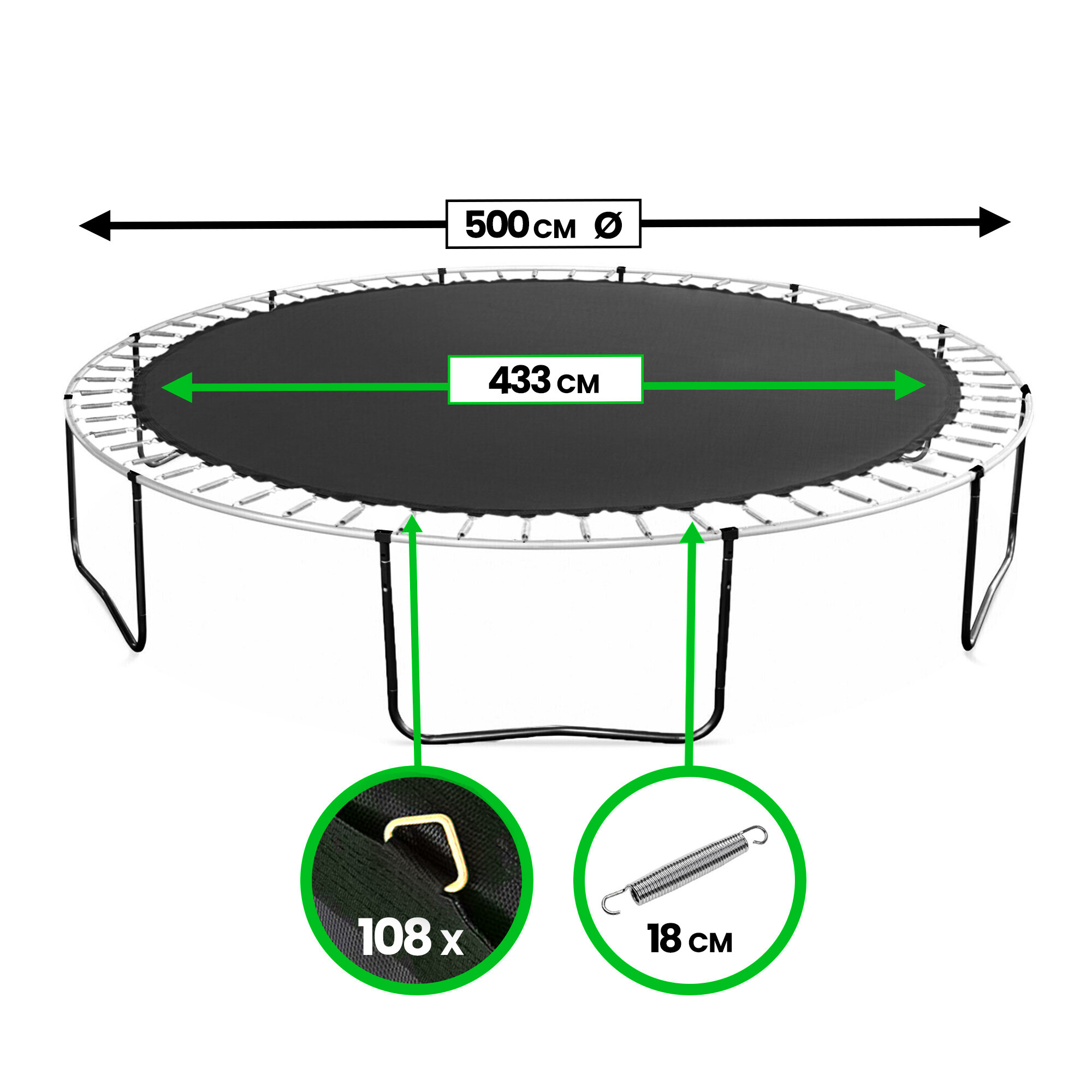 Kod odbojnih površina uvijek navodimo ukupni promjer trampolina, a ne promjer same odbojne površine!
