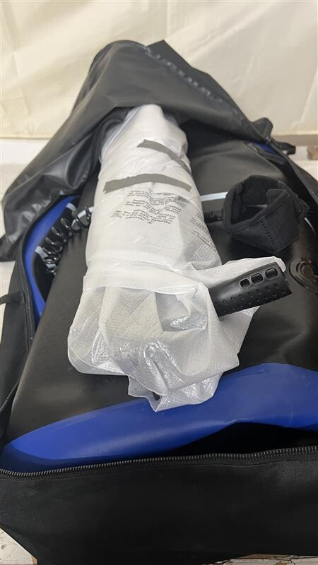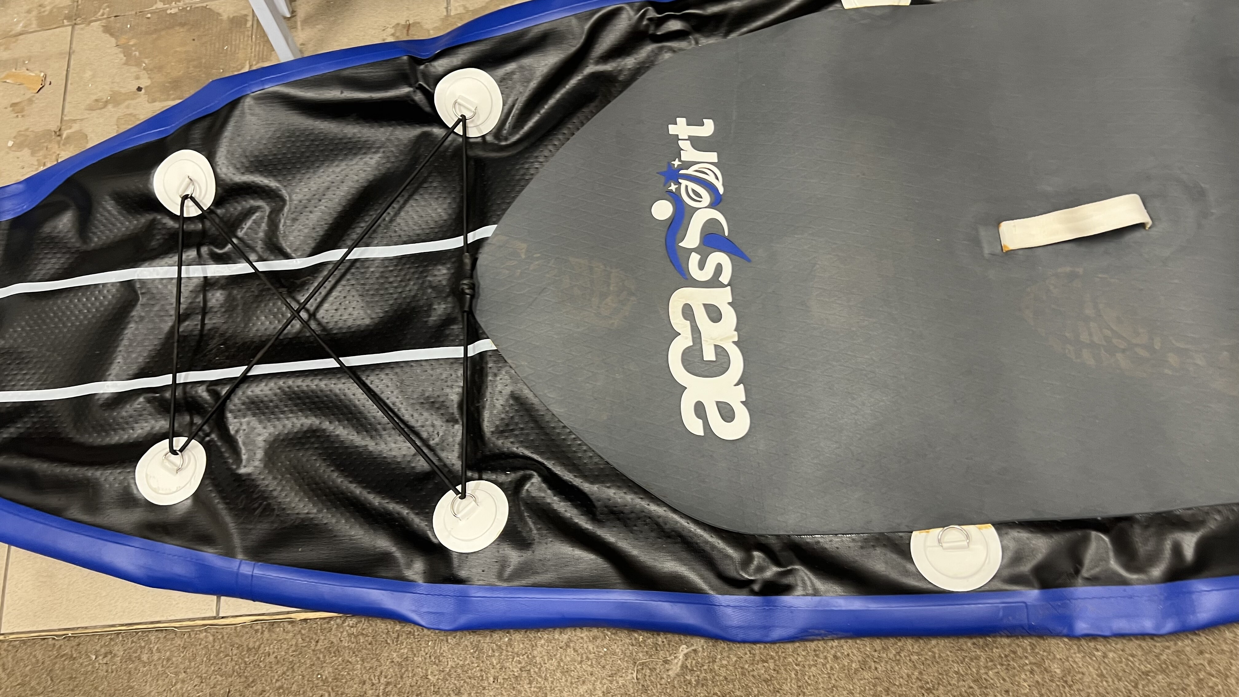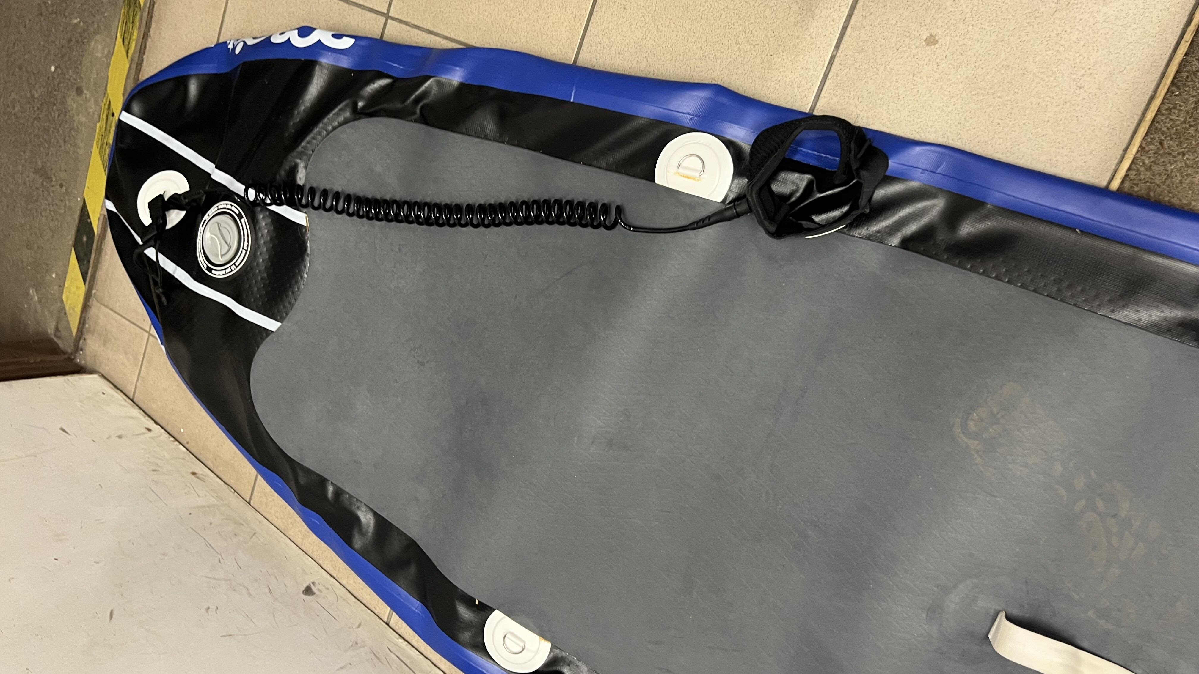 Paddleboard je korišten, potpuno funkcionalan, s tragovima uobičajene uporabe. Površina je onečišćena, što ne utječe na njegovu funkcionalnost niti na sigurno korištenje.