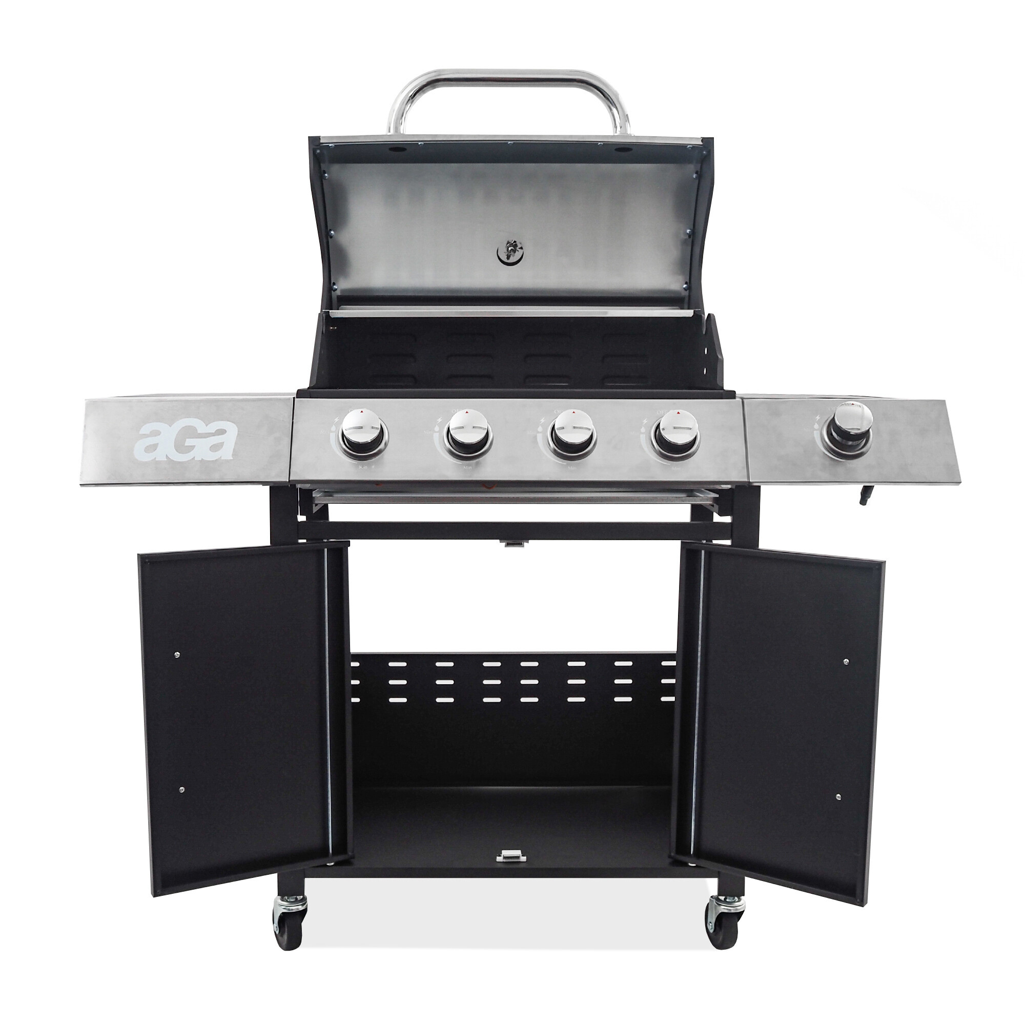 Cijevni plamenici imaju snagu od 14 kW, što je potpuno dovoljno za roštiljanje bilo kojeg jela po bilo kojem vremenu. Roštilj od emajliranog čelika osigurava ravnomjerniju raspodjelu topline. Glavni prostor za roštiljanje opremljen je s 4 x plamenicima s zasebnim reguliranjem.