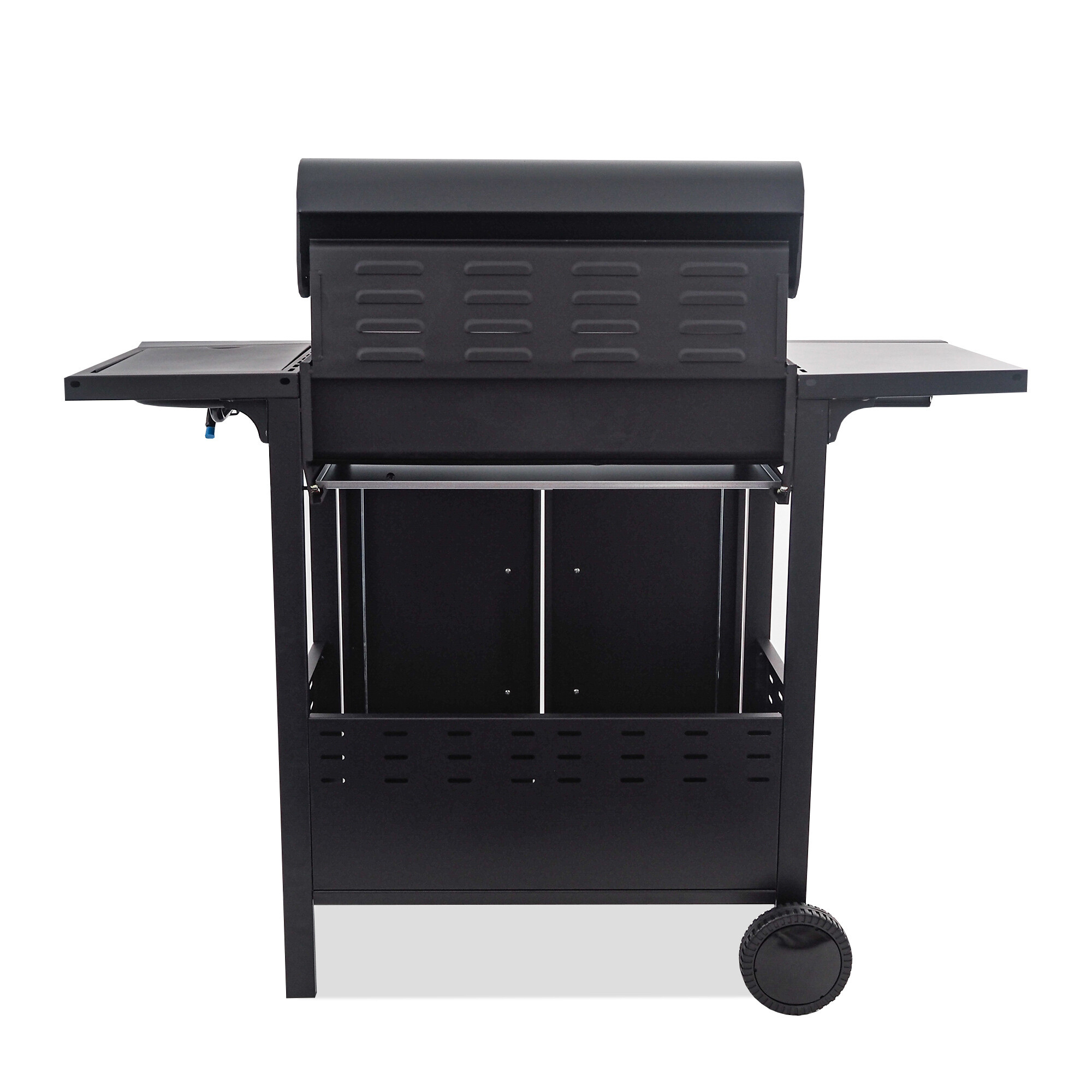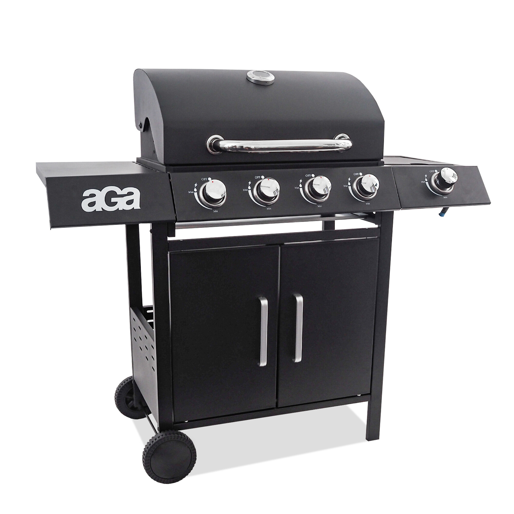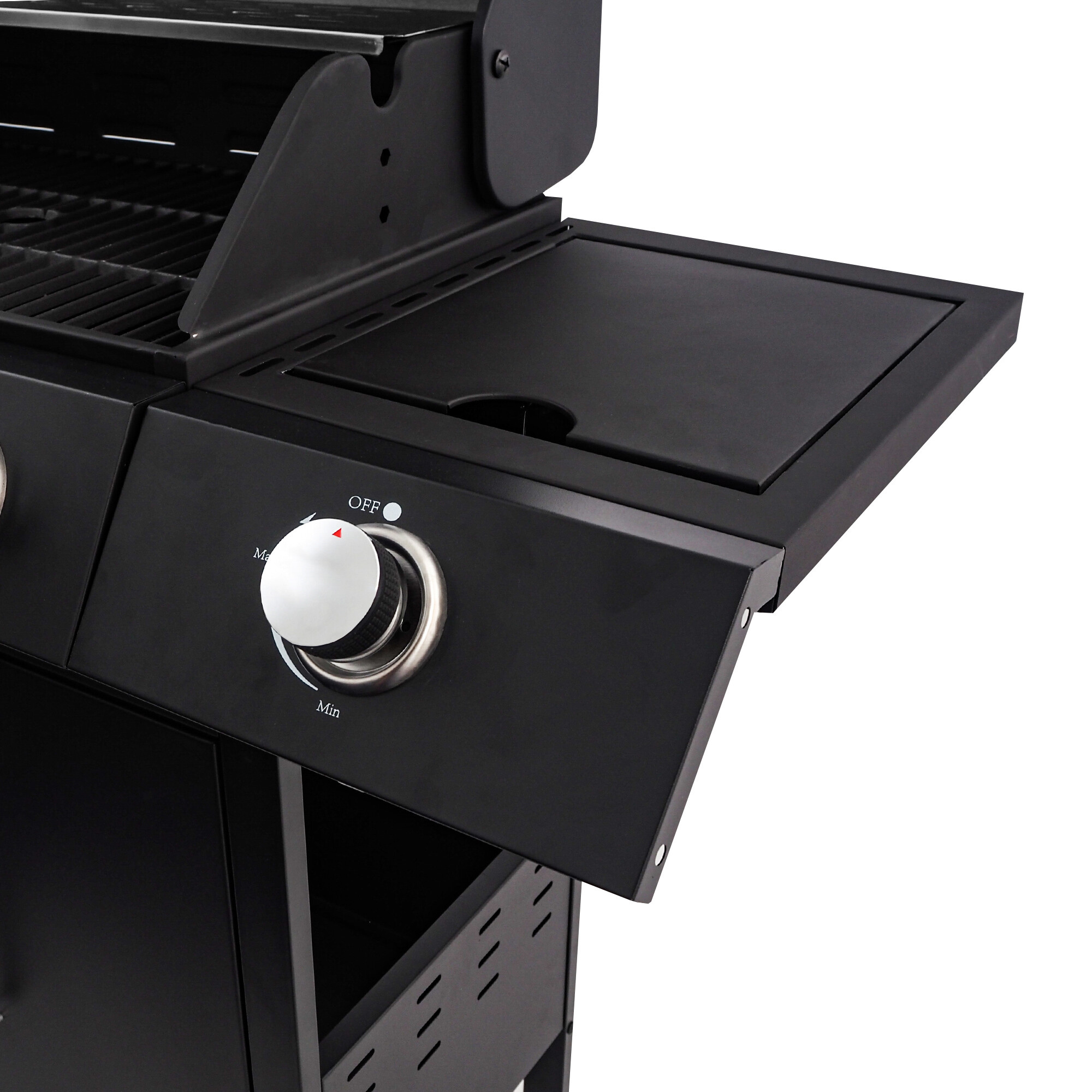 Roštilj je dodatno opremljen ugrađenim bočnim plamenikom, koji je integriran u radnu ploču - tako da možete istovremeno s roštiljanjem udobno pripremiti omiljene umake ili priloge. Praktični poklopac bočnog plamenika omogućuje korištenje kao radnu ili odlagališnu površinu kada je zatvoren.