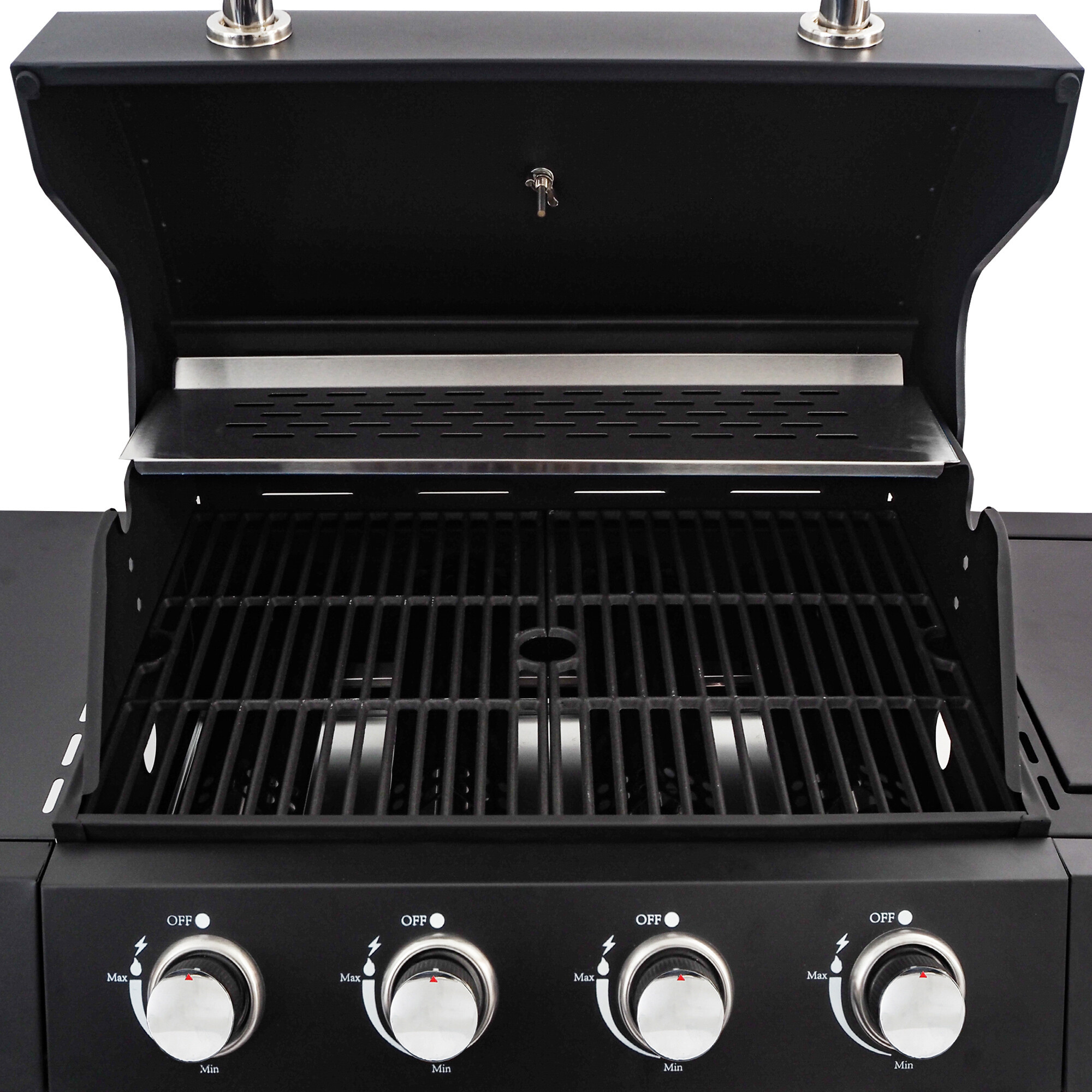 Cijevni plamenici imaju snagu od 14 kW, što je potpuno dovoljno za roštiljanje bilo kojeg jela po bilo kojem vremenu. Roštilj od emajliranog čelika osigurava ravnomjerniju raspodjelu topline. Glavni prostor za roštiljanje opremljen je s 4 x plamenicima s zasebnim reguliranjem.