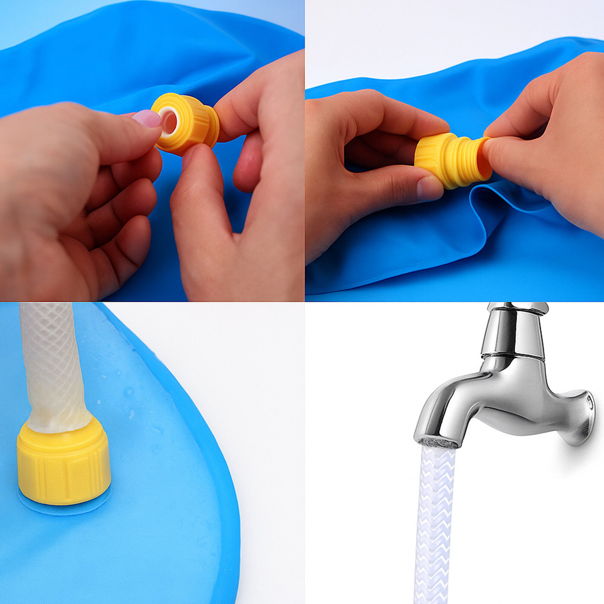 Instalacija je vrlo jednostavna – samo priključite vrtnu cijev i možete uživati u osvježenju vodom. Zahvaljujući posebnoj protukliznoj površini, podloga je sigurna čak i na skliskom terenu.