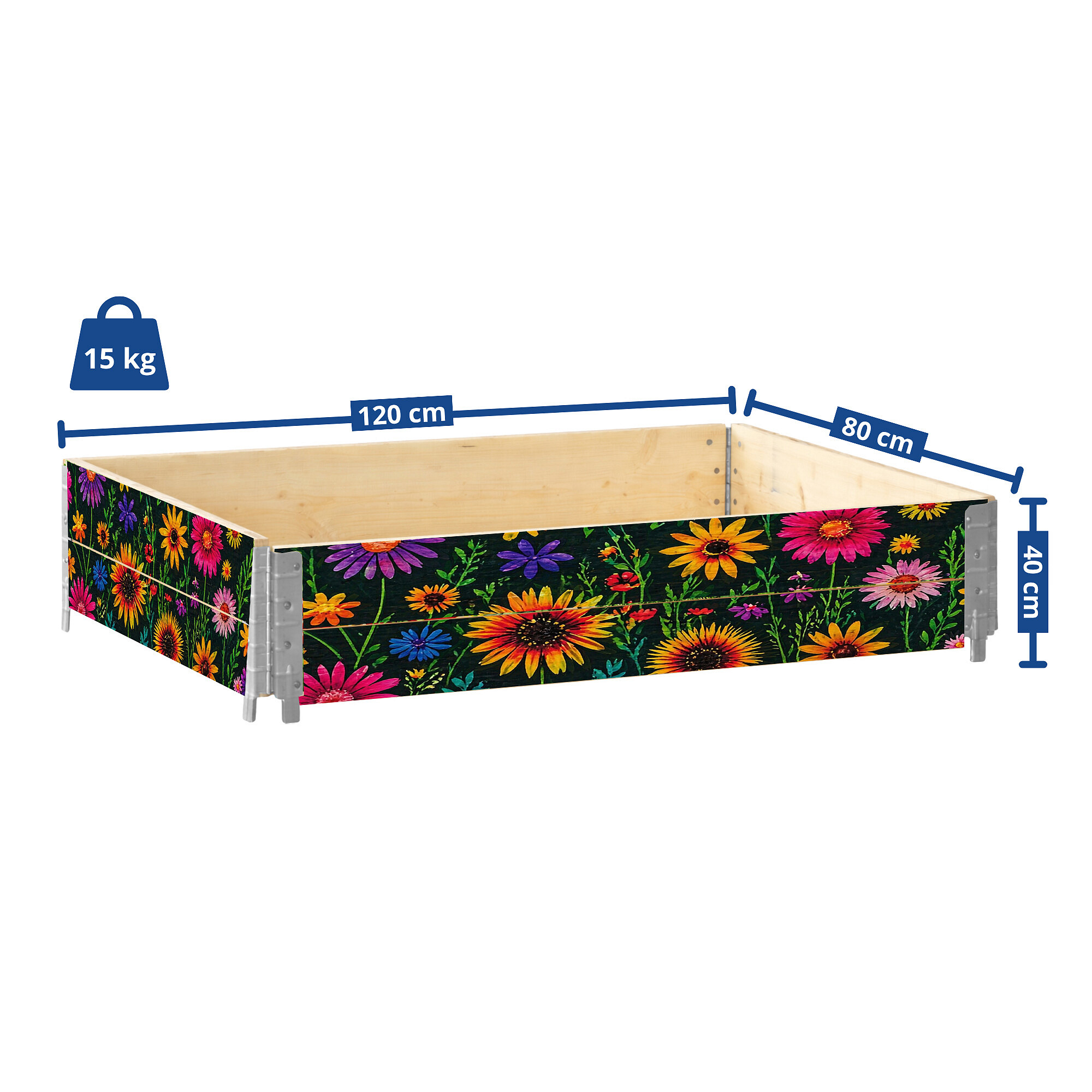 Gredica je izrađena od borovog drva s IPPC certifikatom. Vanjska strana je dopunjena grafikama cvijeća, koje ističu njegov vrtni izgled i dobro se uklapaju u vanjsko okruženje. Dimenzija 120 × 80 cm nudi dovoljno prostora za kućni uzgoj uobičajenih vrsta povrća, začinskog bilja, jagoda i cvijeća. Visina od 40 cm omogućuje stvaranje sloja zemlje pogodnog za različite vrste sadnje.