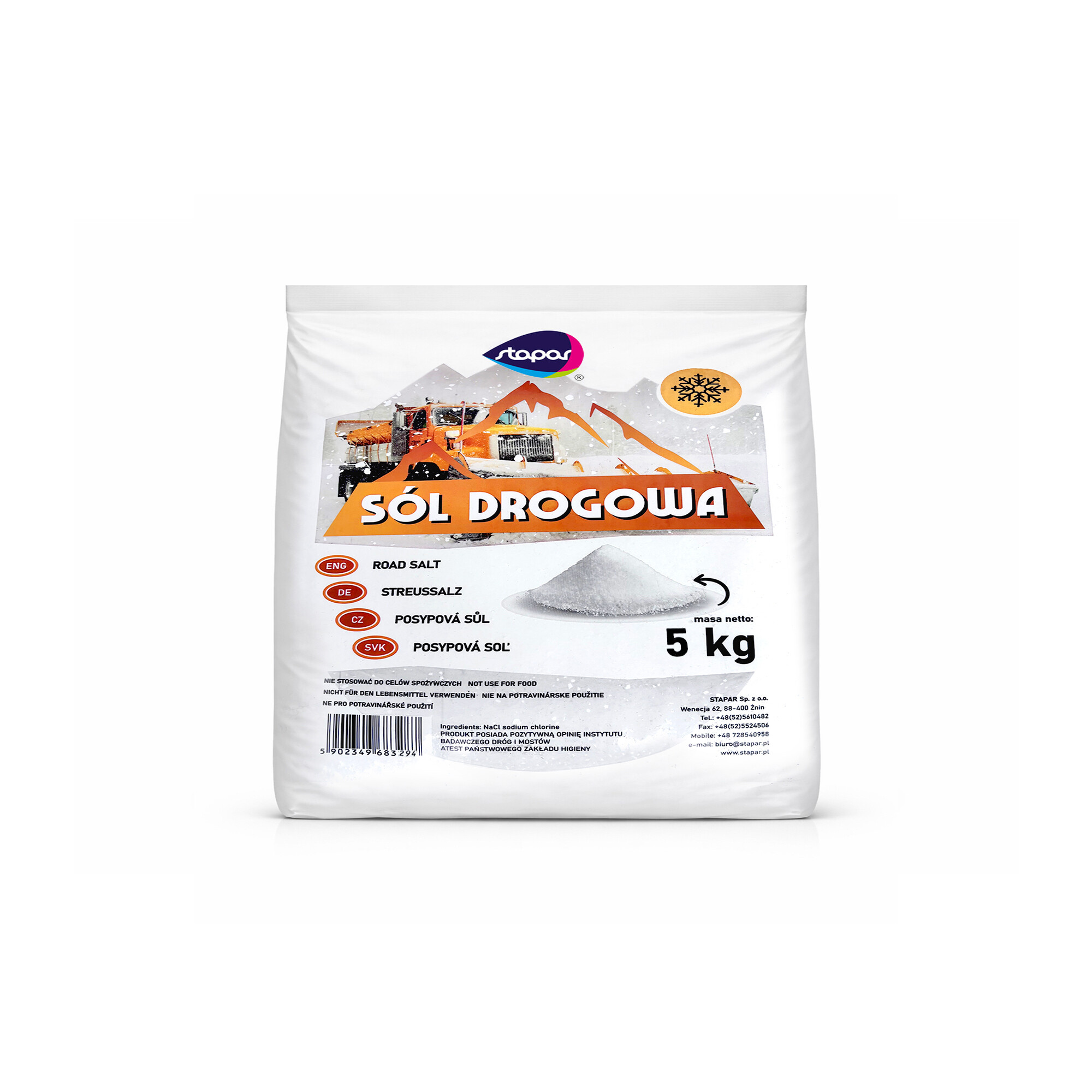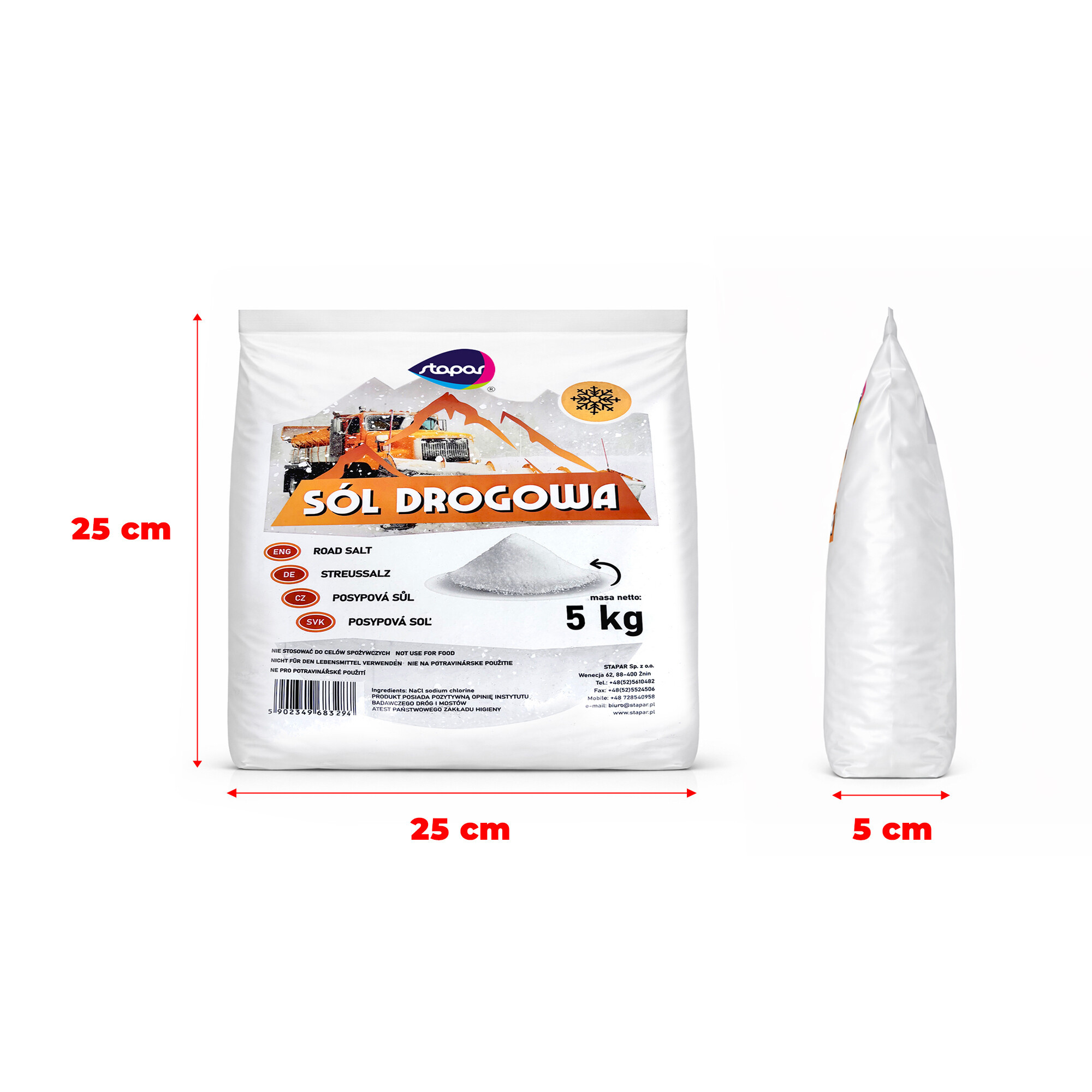 Tato zimní posypová sůl 25 kg je určena výhradně k technickému použití. Není vhodná pro potravinářské ani krmné účely.
