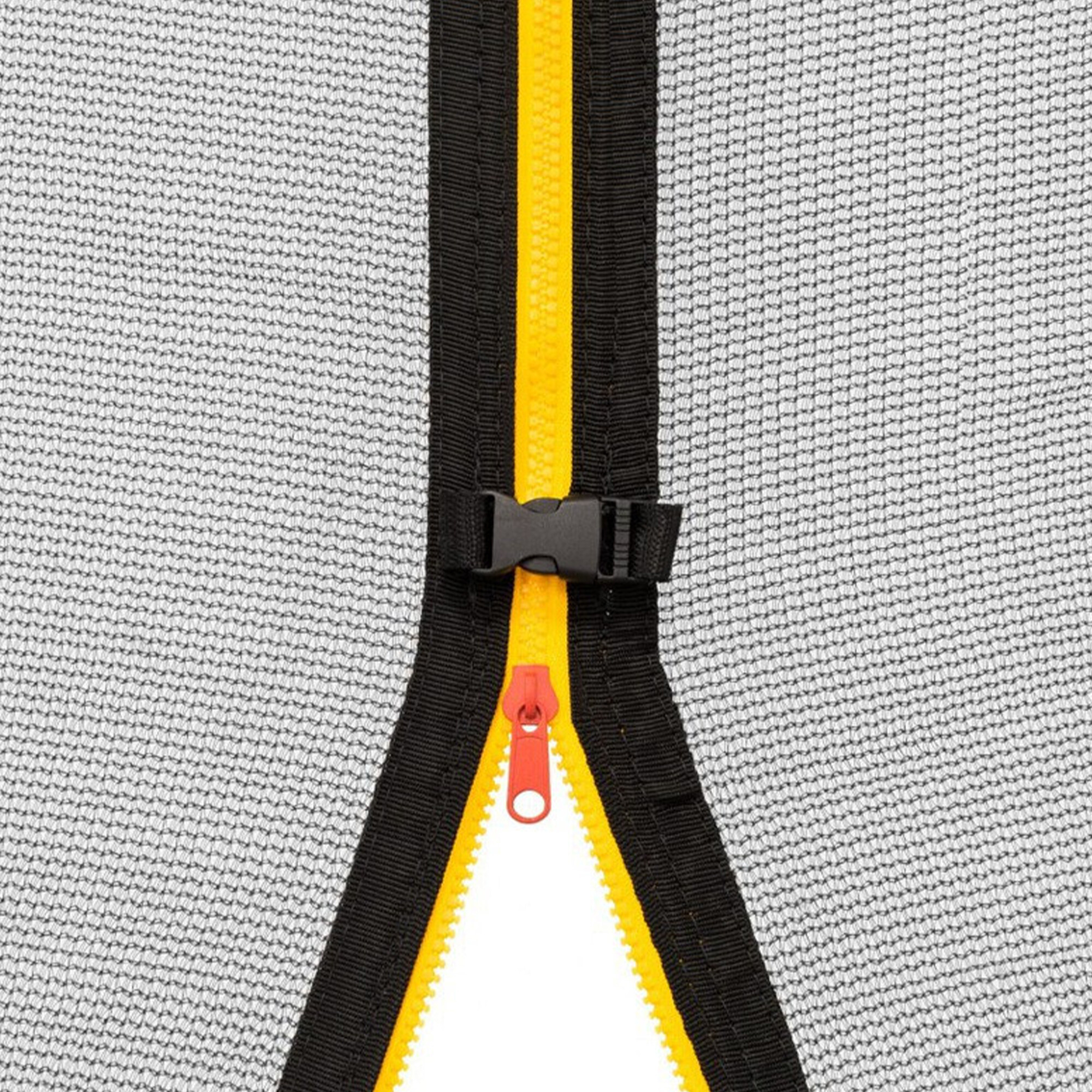 Ulazni otvor je opremljen patentnim zatvaračem u obliku slova L, čime se osigurava potpuno zatvaranje trampolina.