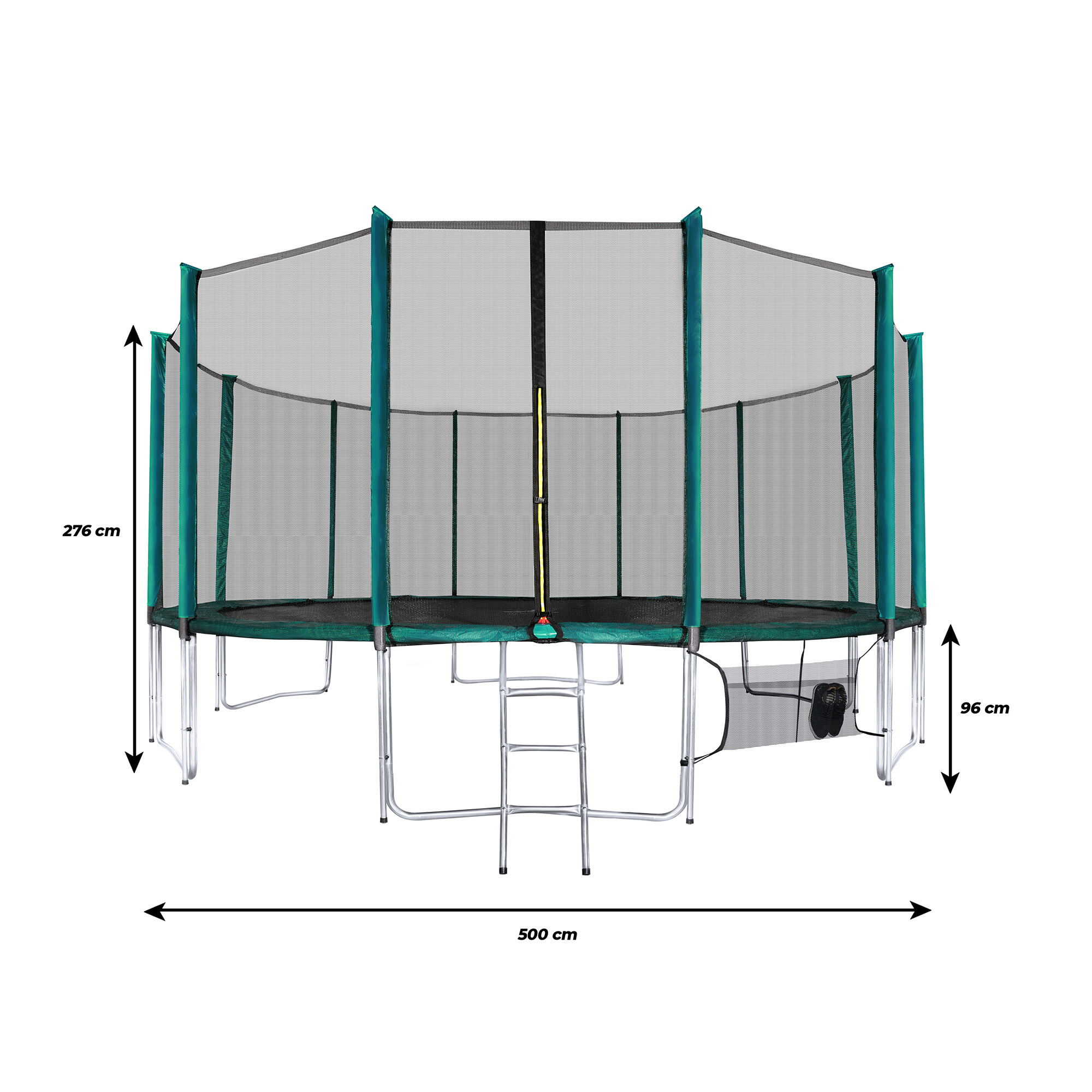 - Trampolin 500 cm (16 ft) - (konstrukcija + stupovi + pjenaste zaštite stupova + vijci)