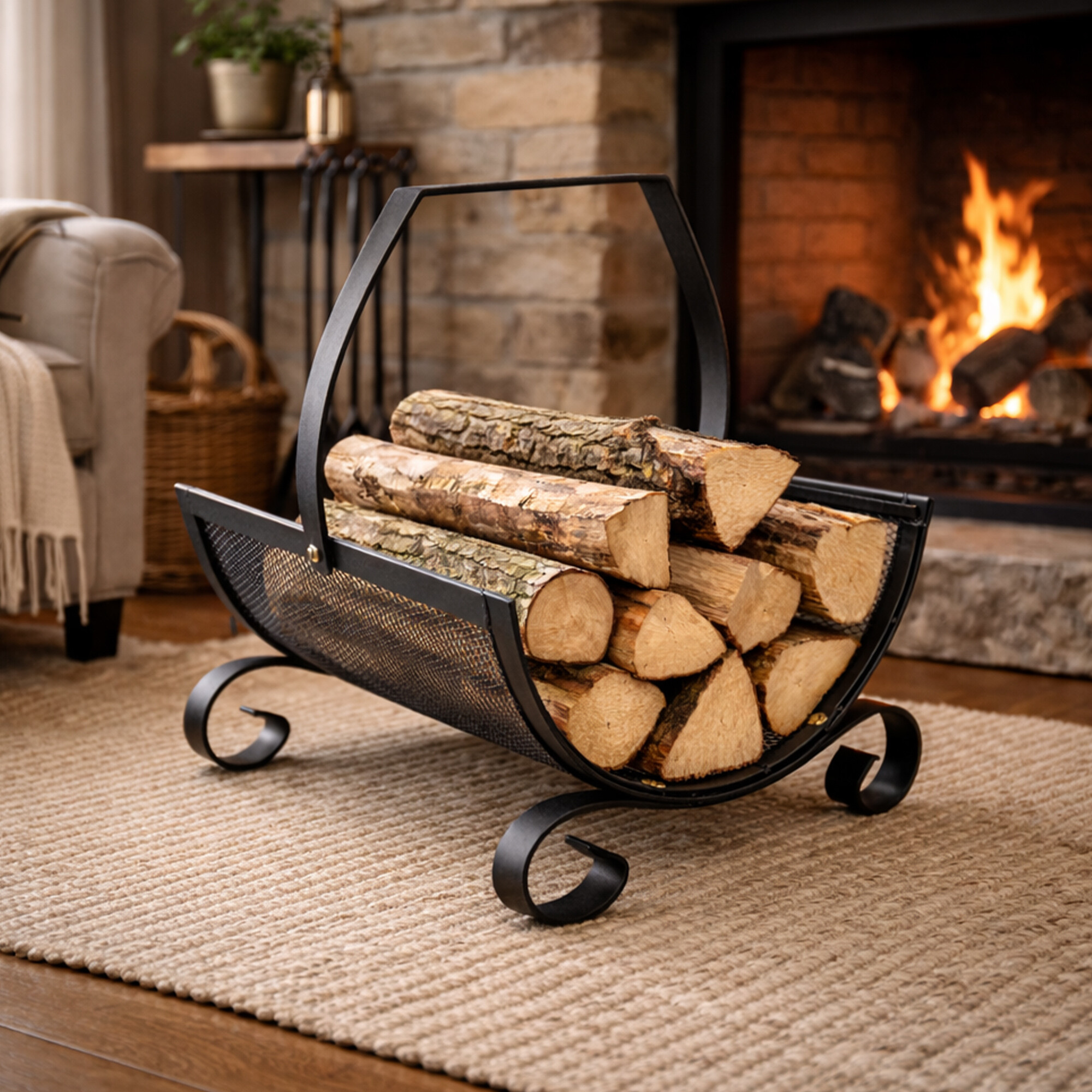 Stalak za drva odgovara svakom interijeru, zahvaljujući cjelokupnoj metalnoj izvedbi u crnoj boji.
