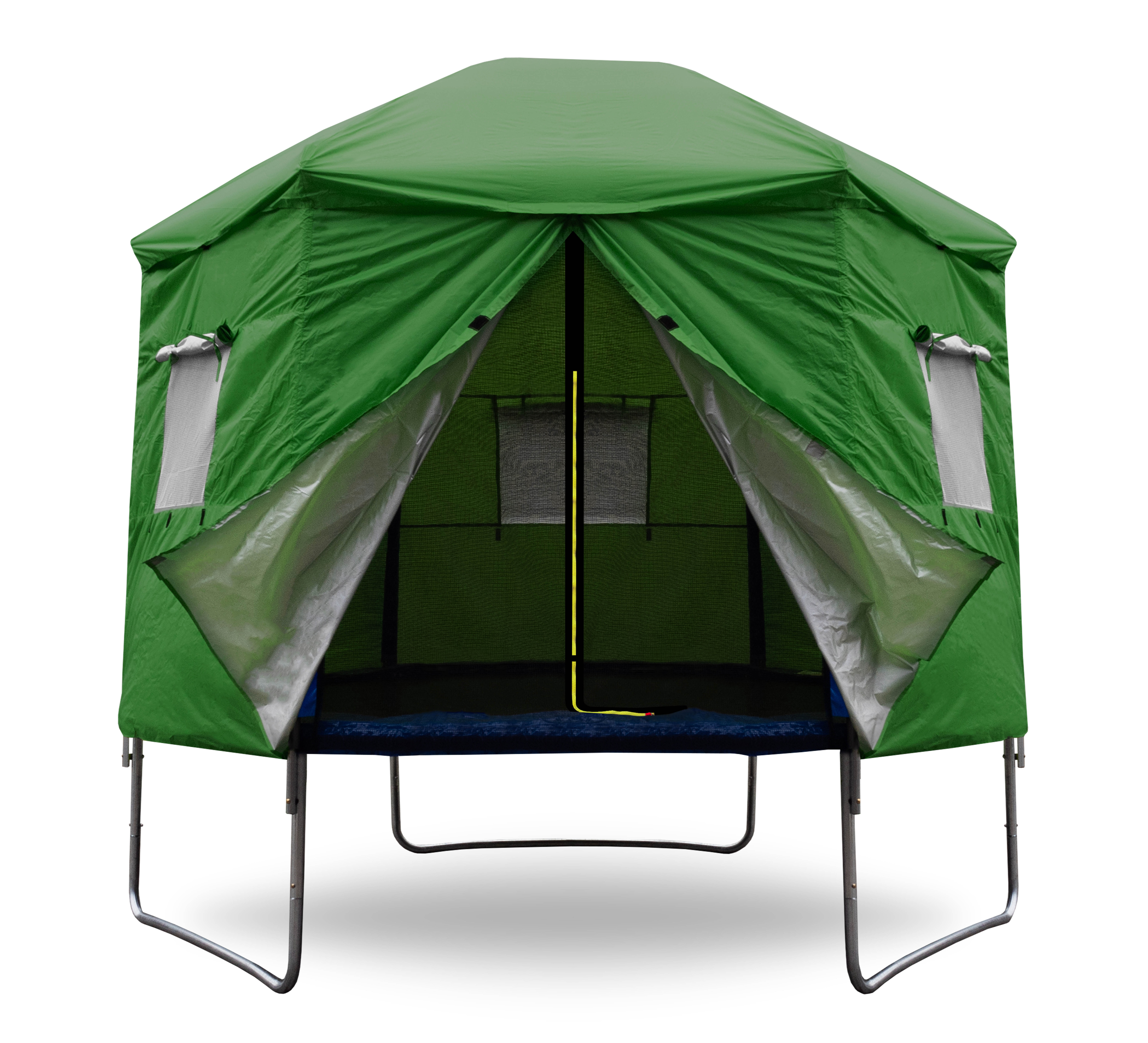 A u vrijeme kada se trampolin ne koristi aktivno, šator pomaže zaštititi odbojnu površinu od onečišćenja i UV zračenja.