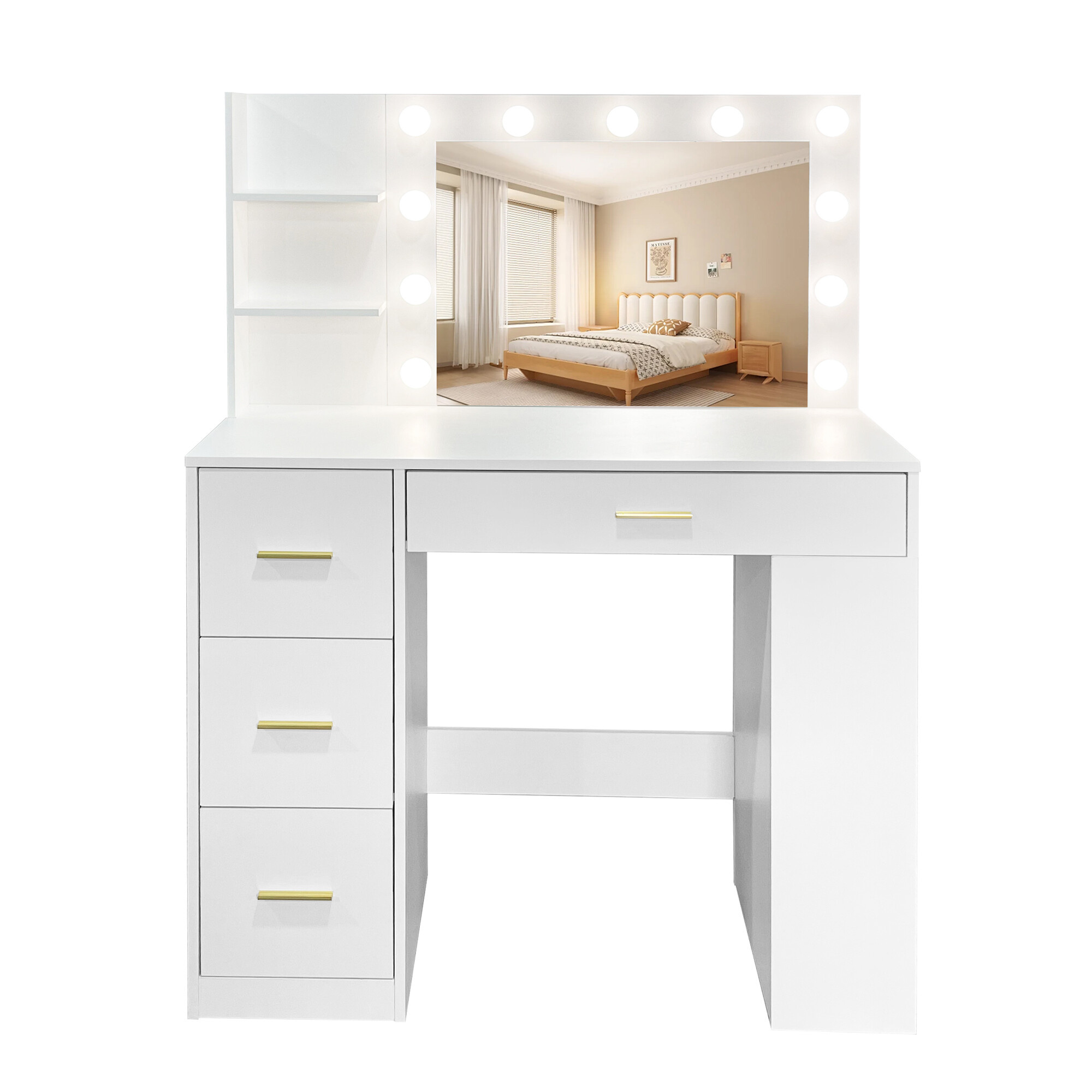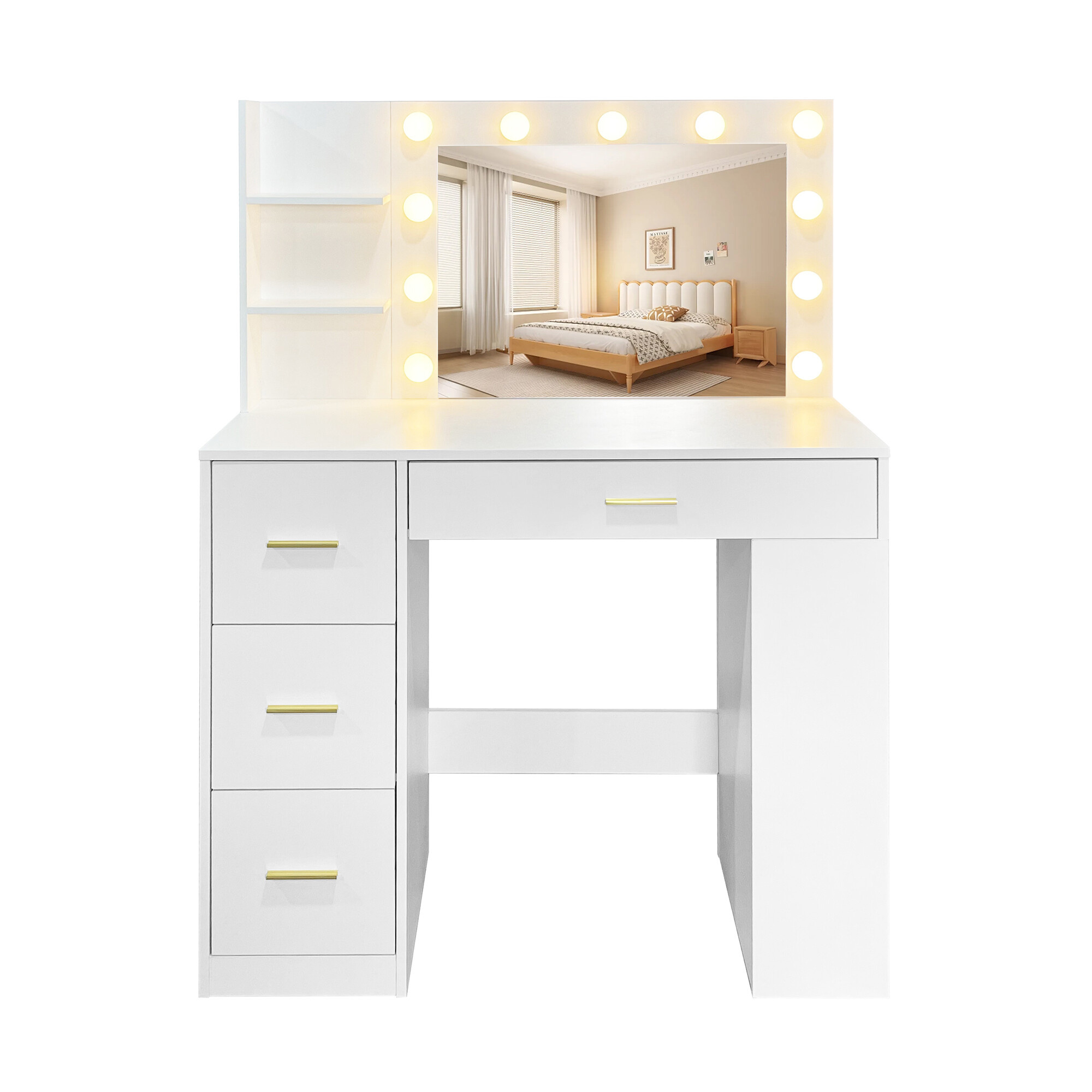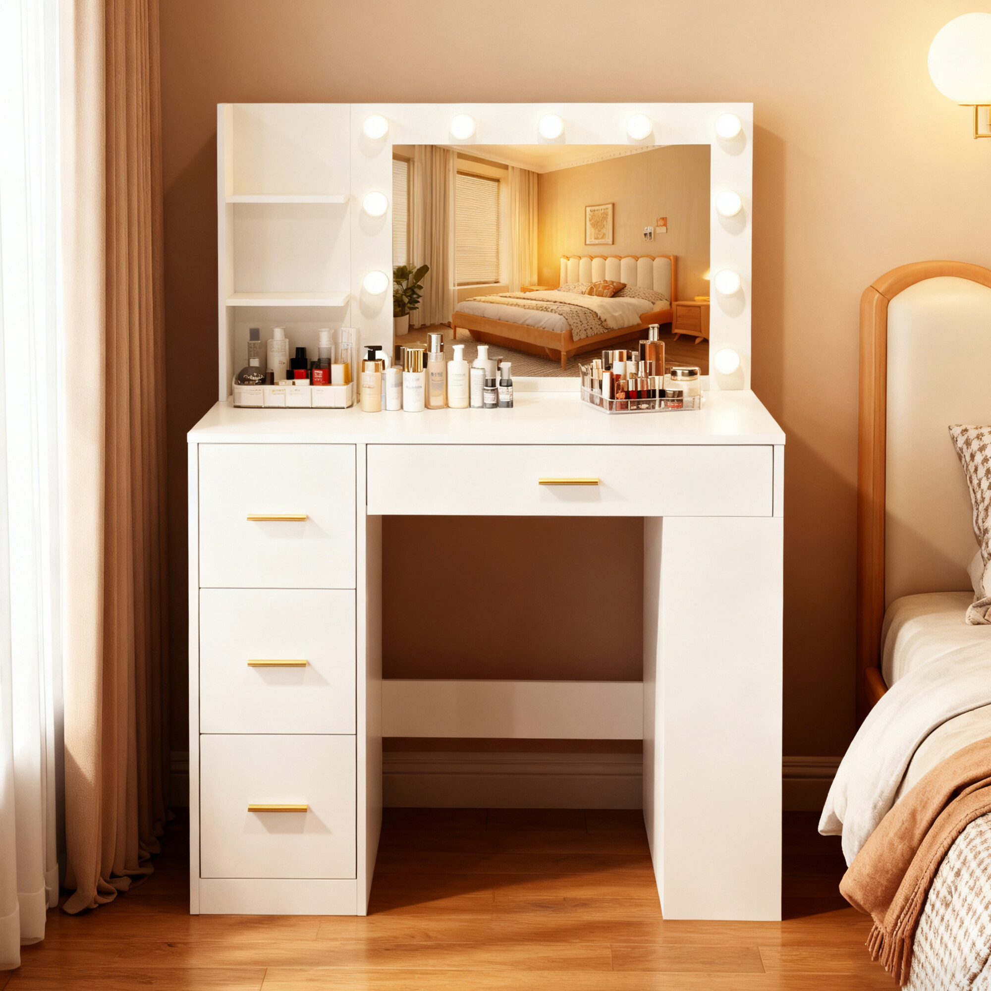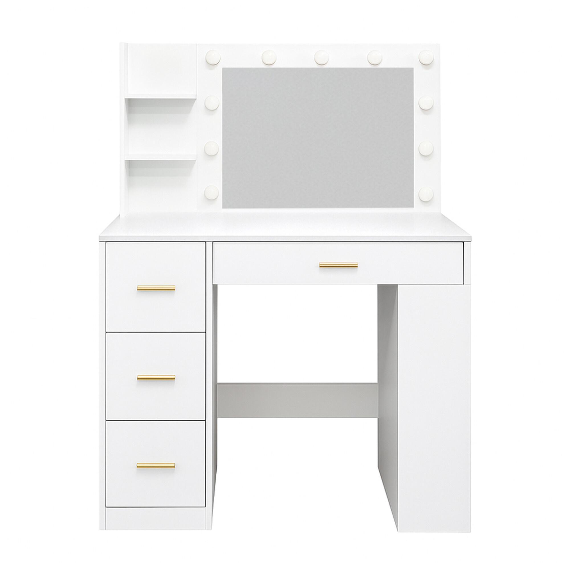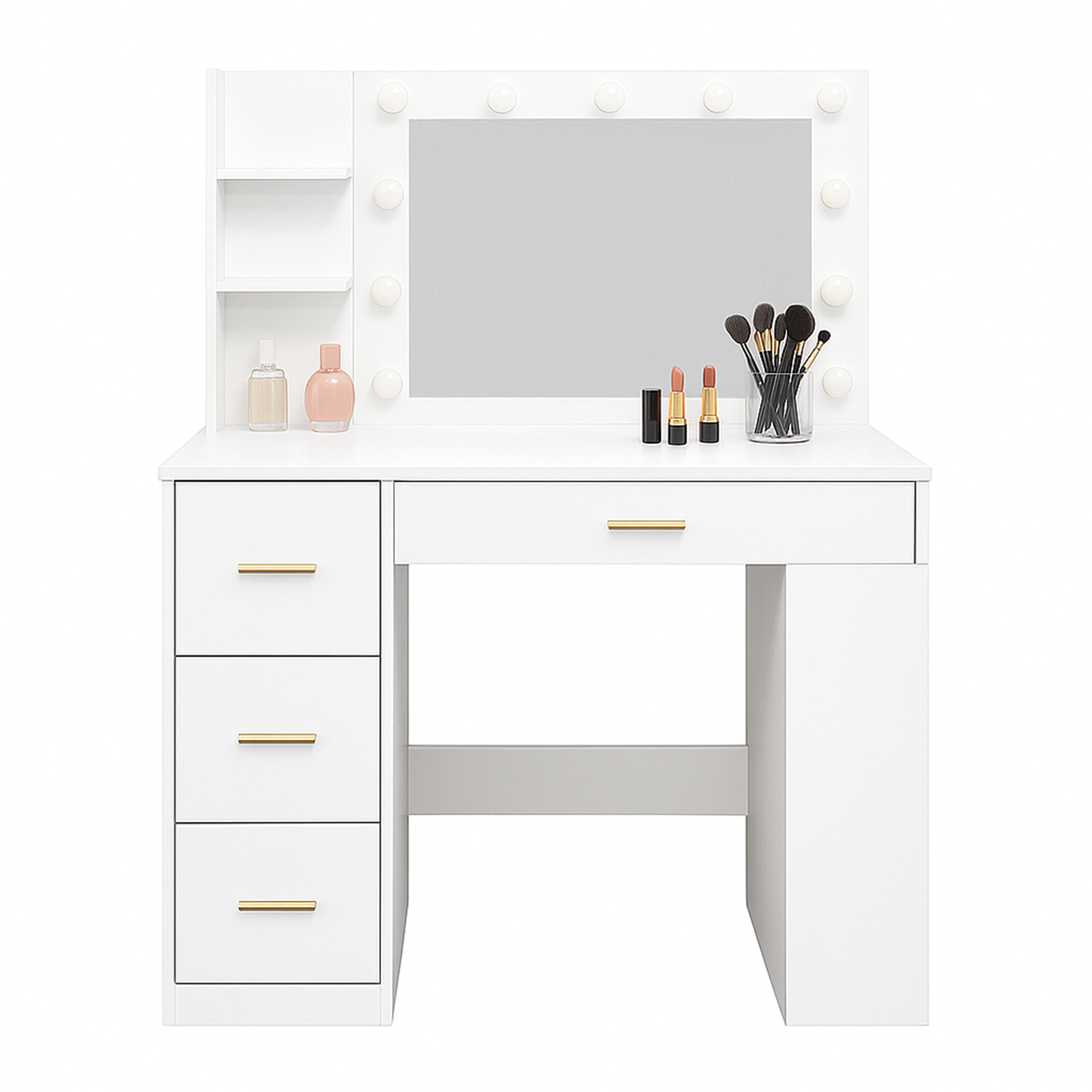 Priuštite si svakodnevnu dozu luksuza s ovim modernim toaletnim stolićem s ogledalom i LED rasvjetom. Stilski bijeli stolić u mat izvedbi postat će ne samo praktičan, već i estetski dodatak svakoj spavaćoj sobi ili garderobi.