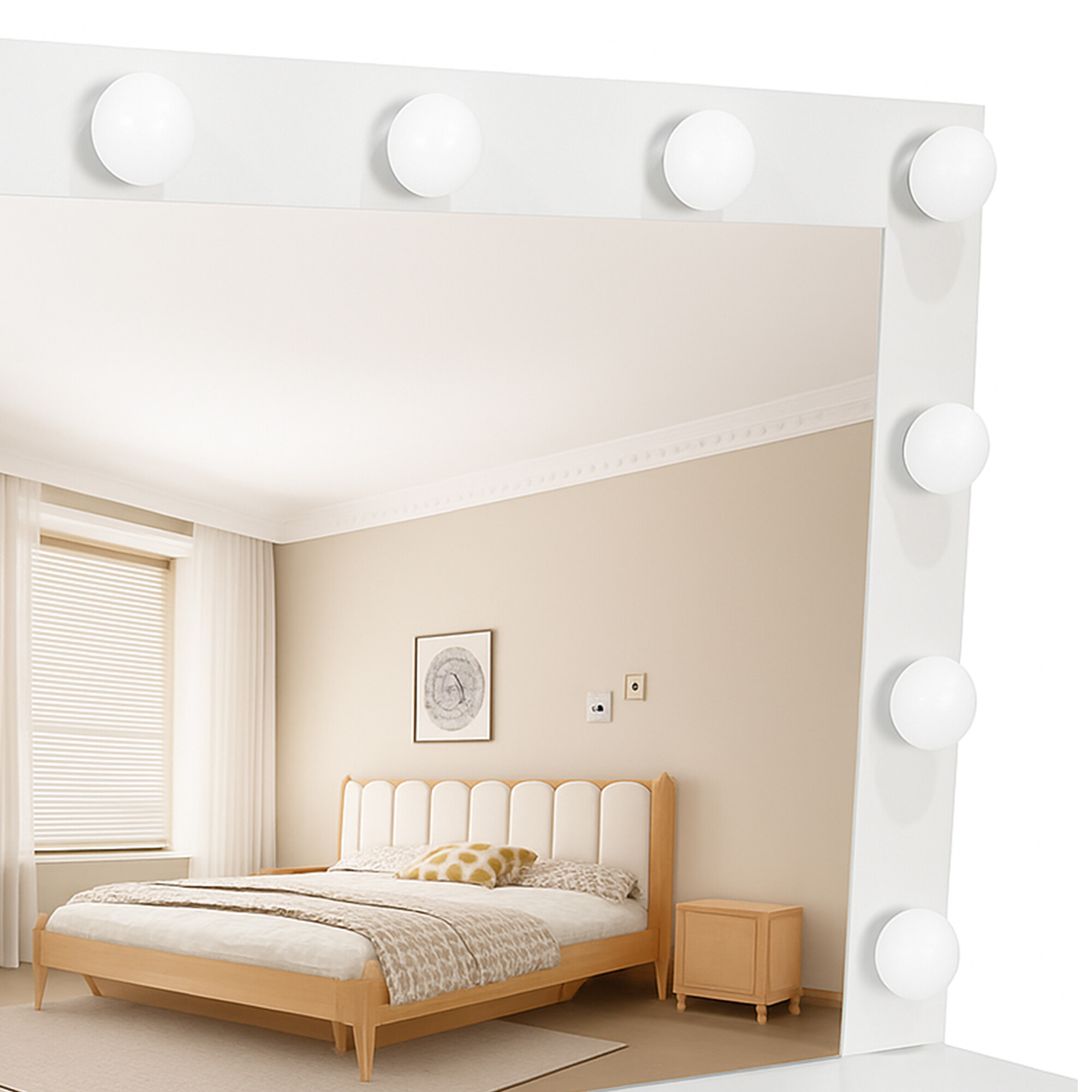 Dominantni dio stola je veliko ogledalo s 11 LED žarulja, kod kojih možete jednostavno mijenjati temperaturu svjetla od hladne preko neutralne do tople. Zahvaljujući tome uvijek ćete imati idealno osvjetljenje za šminkanje, uređivanje kose ili večernju njegu kože.