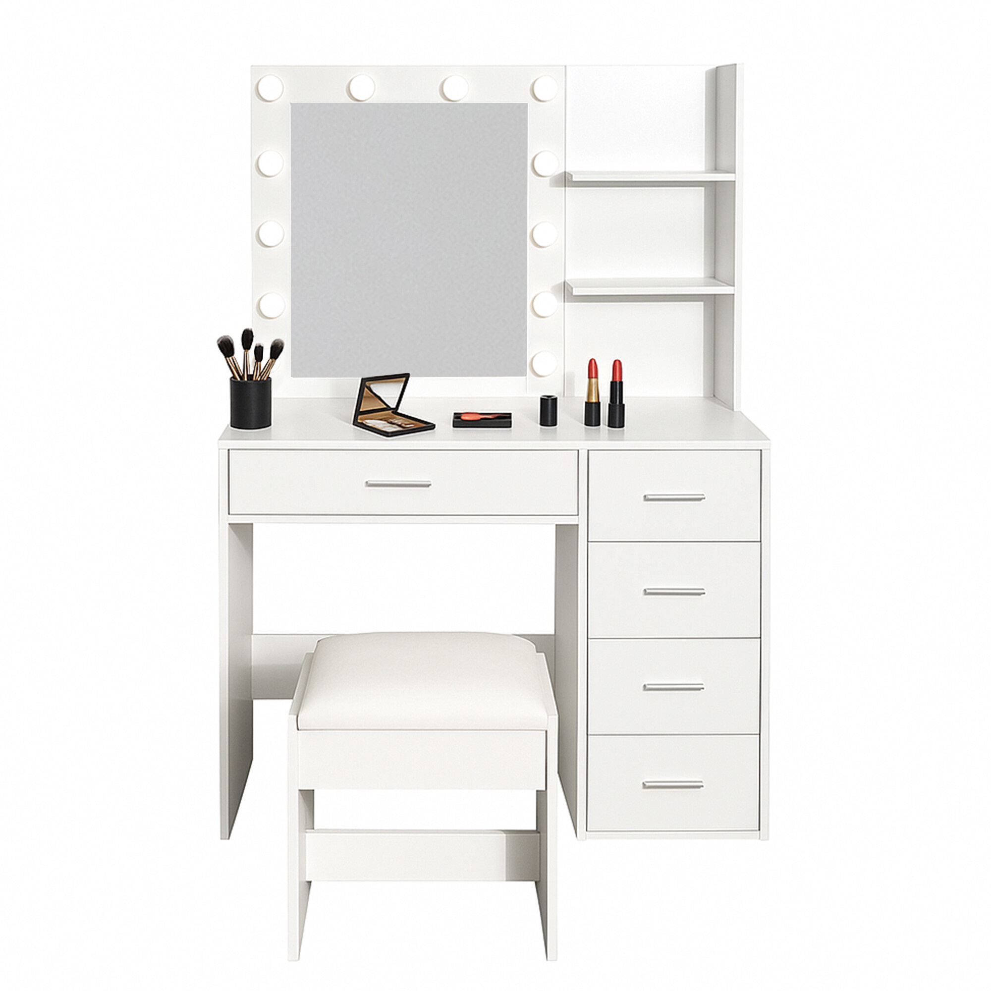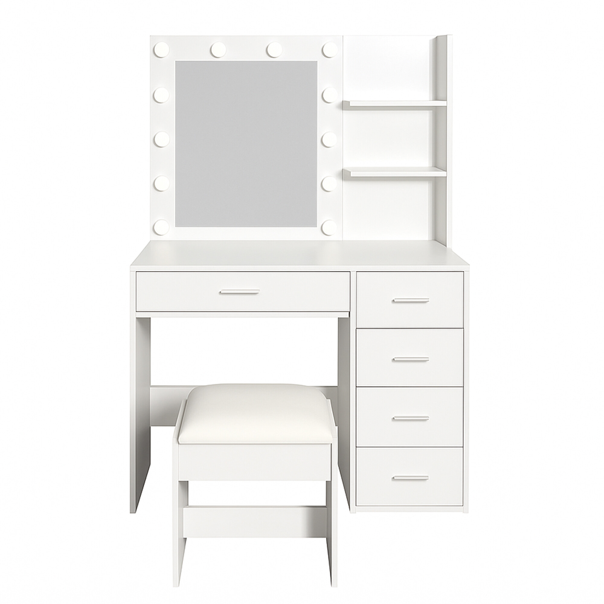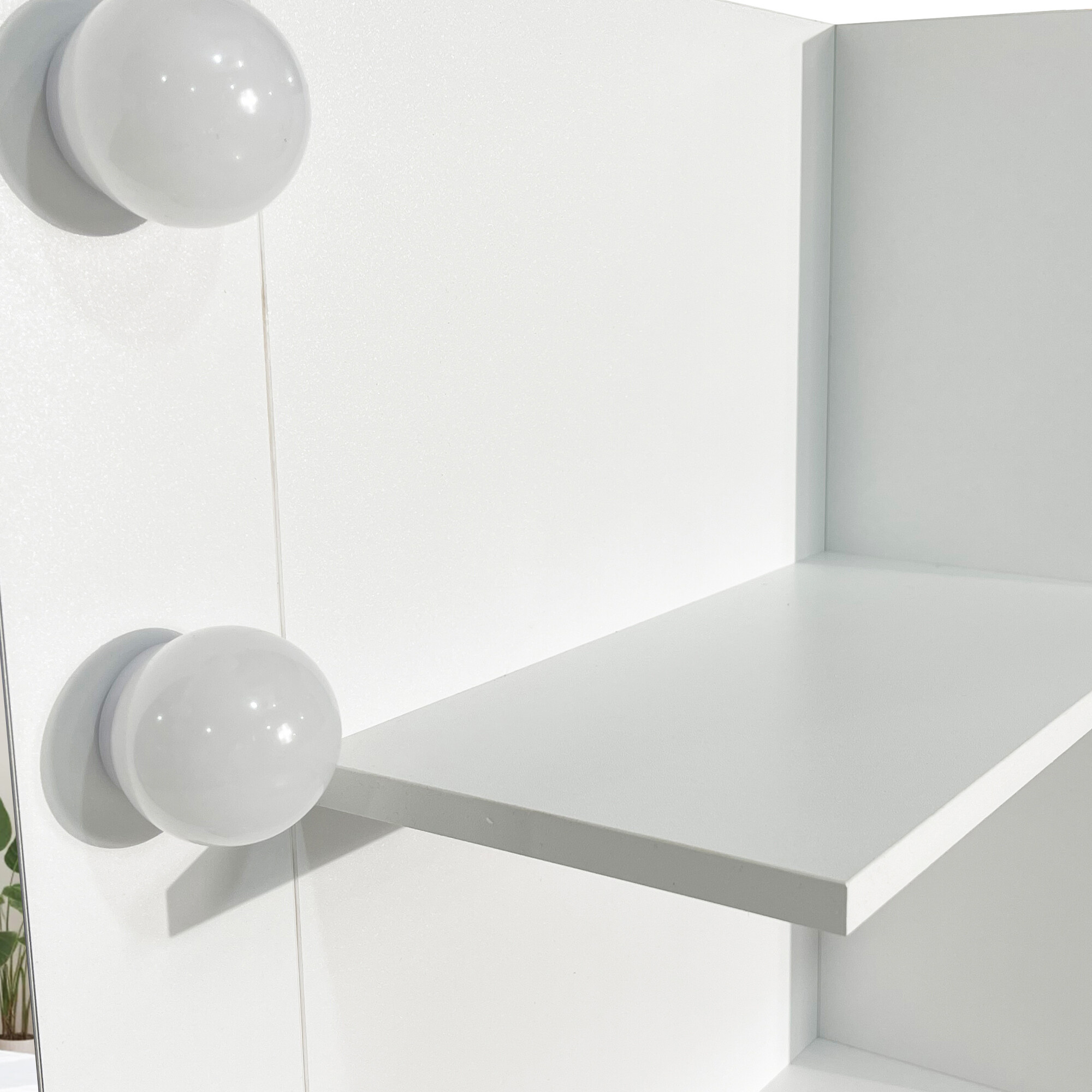 Priuštite si svakodnevnu dozu luksuza s ovim modernim toaletnim stolićem s ogledalom i LED rasvjetom. Stilski bijeli stolić u mat izvedbi postat će ne samo praktičan, već i estetski dodatak svakoj spavaćoj sobi ili garderobi.