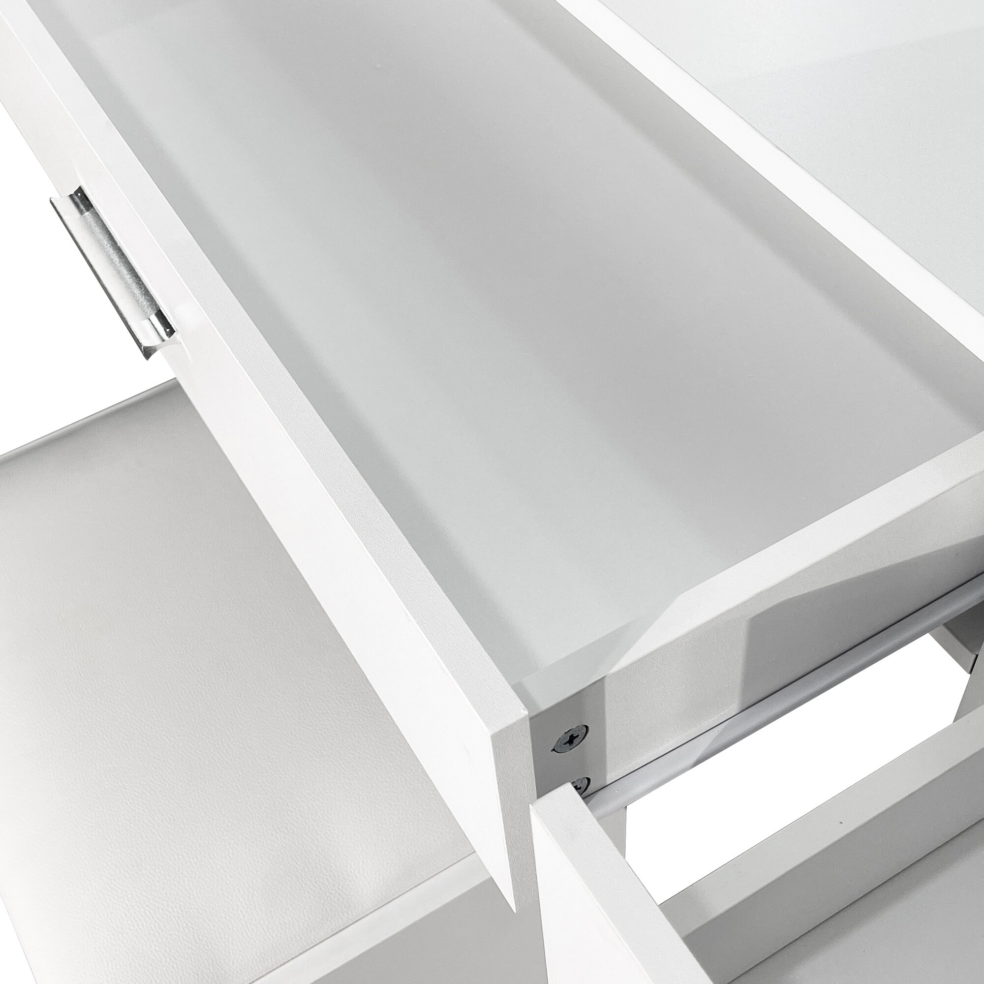 Dimenzije stola 94 × 40 × 140 cm osiguravaju da će savršeno pristajati čak i u manje spavaće sobe ili stanove. Bijela mat površina djeluje elegantno i bezvremenski, što omogućuje lako usklađivanje stola s bilo kojim interijerom – od modernog do klasičnog.