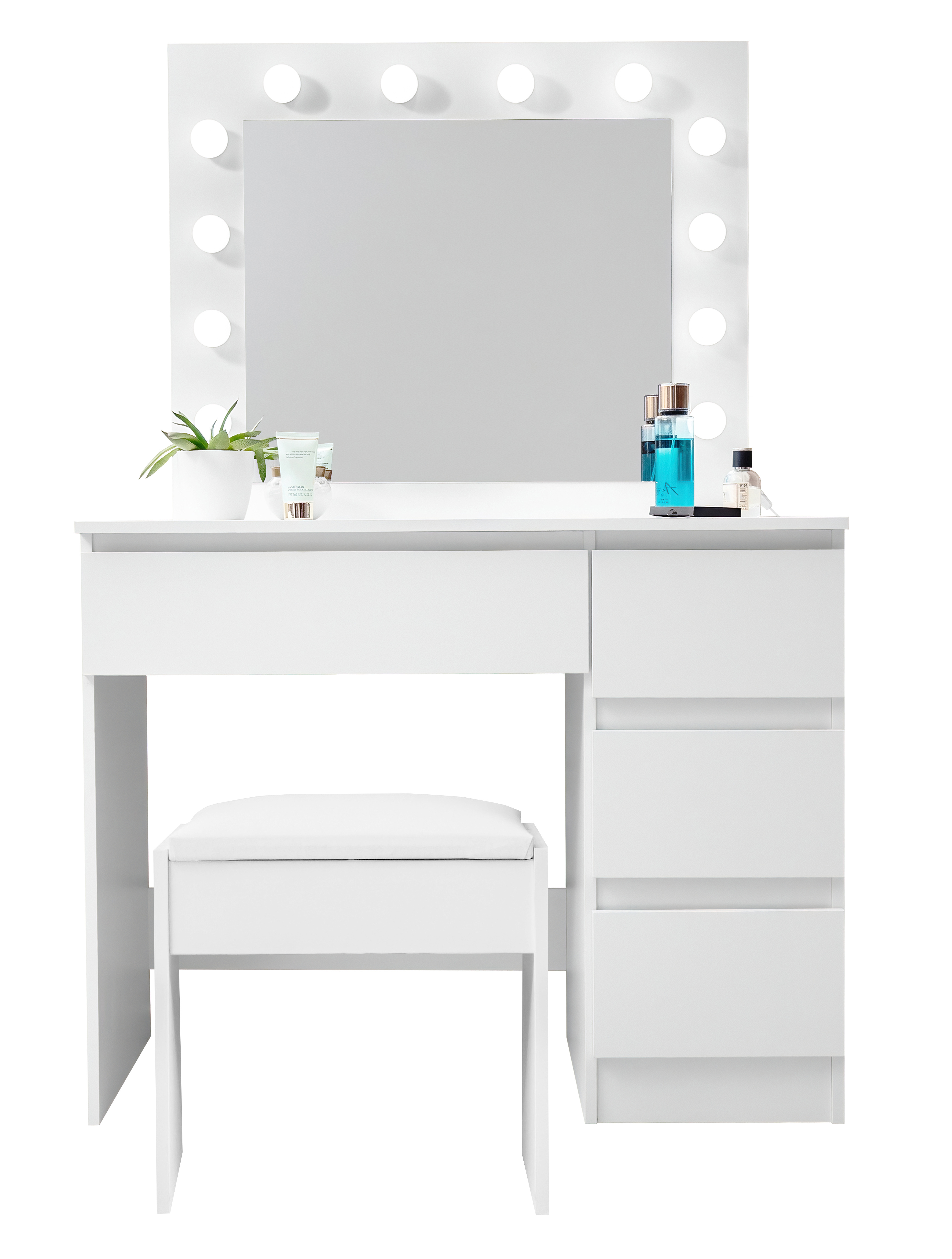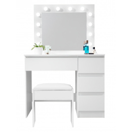 Aga Toaletni stolić s ogledalom i osvjetljenjem + tabure Mat bijeli 2DAZ706 - II. Kvaliteta