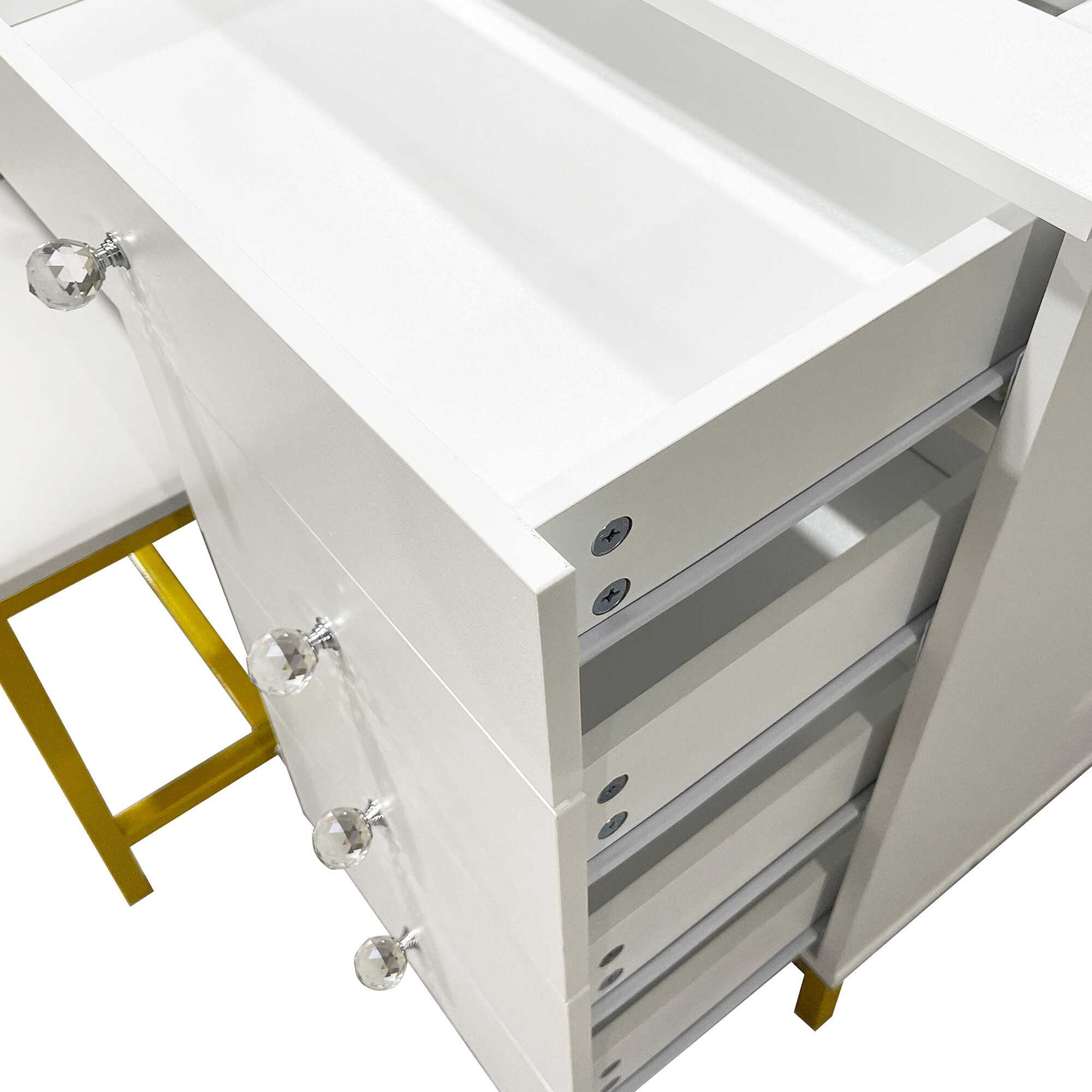 Dimenzije stola 115 × 40,6 × 140 cm osiguravaju da će savršeno pristajati čak i u manje spavaće sobe ili stanove. Bijela mat površina djeluje elegantno i bezvremenski, što omogućuje lako usklađivanje stola s bilo kojim interijerom – od modernog do klasičnog.
