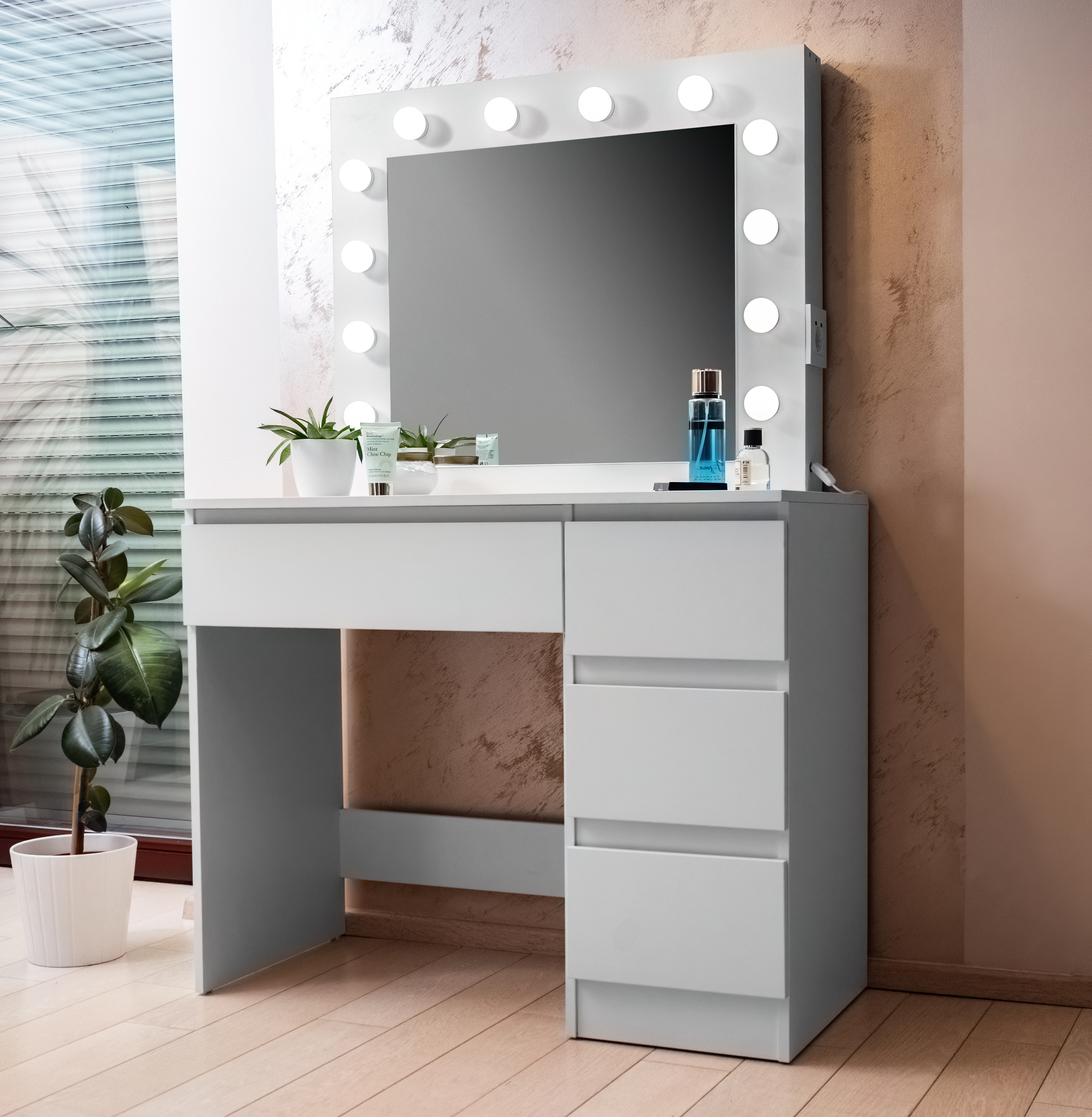 Na ogledalu je 12 LED žarulja, tako da se možete udobno našminkati čak i pri lošem prirodnom svjetlu.Na strani ogledala nalazi se električna utičnica, na primjer za sušilo za kosu, peglu za kosu i USB priključci za punjenje mobilnih uređaja.