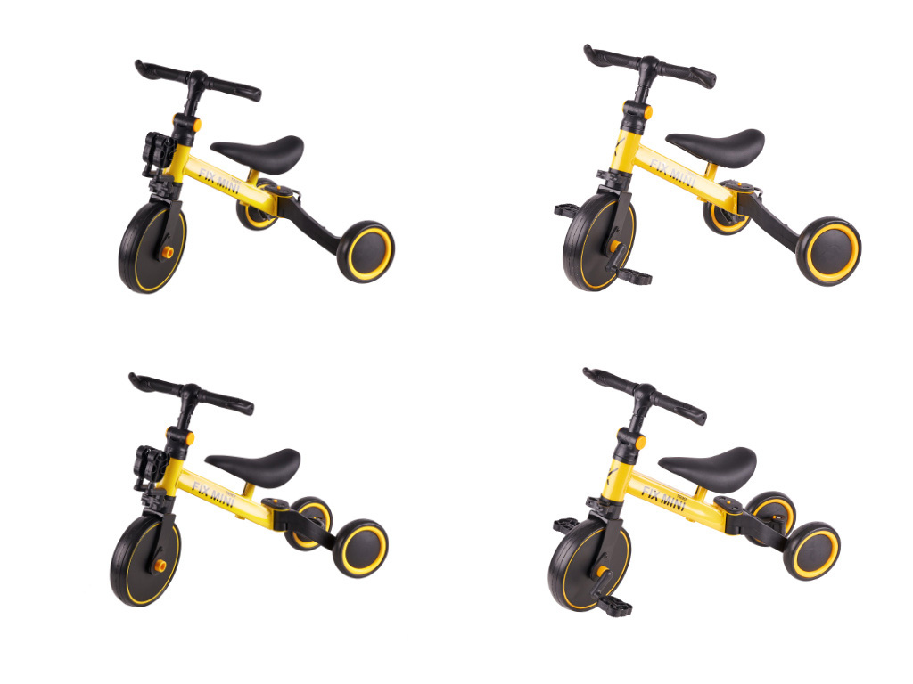 - Prvi od njih je tricikl! Kada pedale postavite u posebne držače i kotače raširite u stranu, nastaje udobno i stabilno vozilo koje je savršeno za prvu avanturu na kotačima!