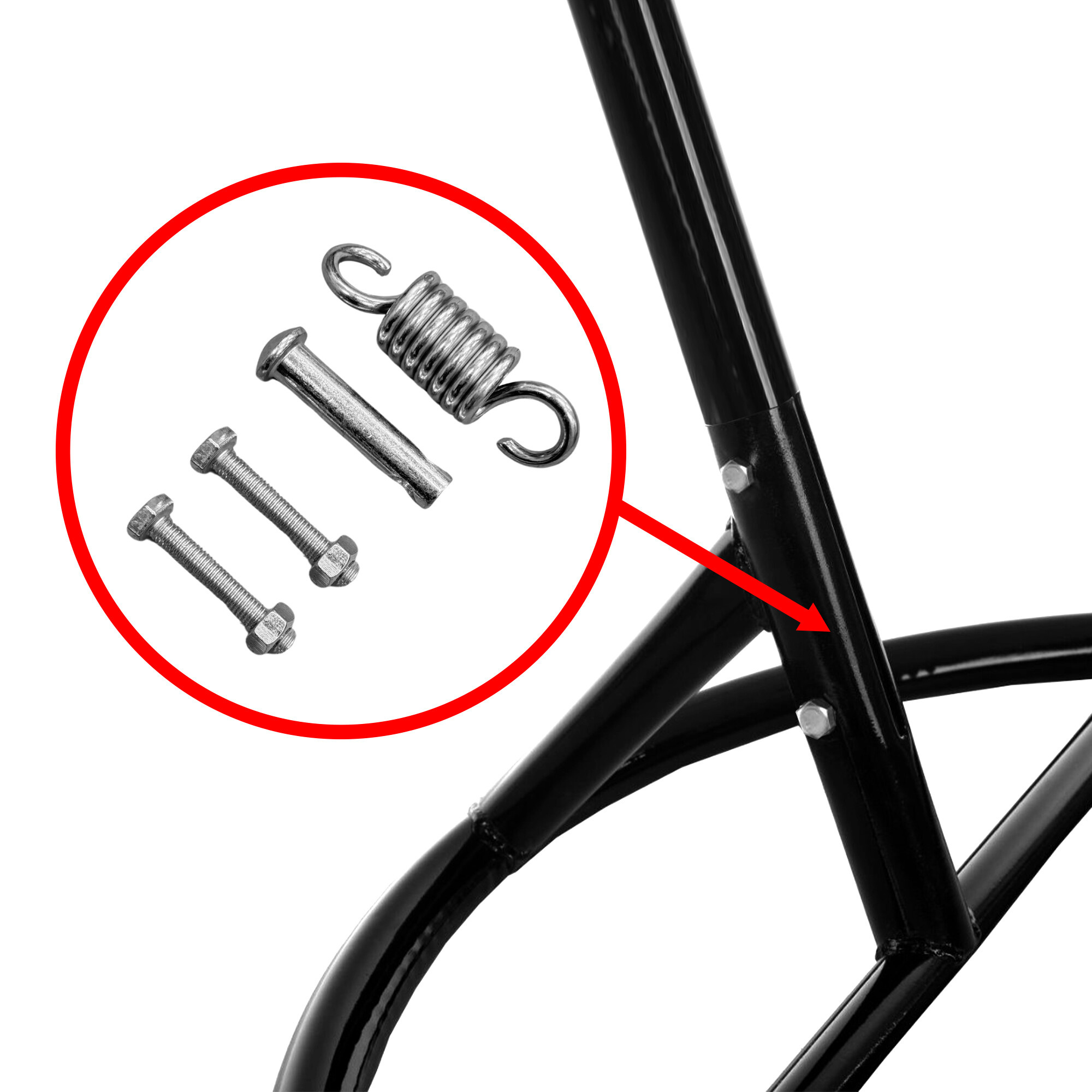 - Opruga viseće stolice je zapakirana unutar stalka.